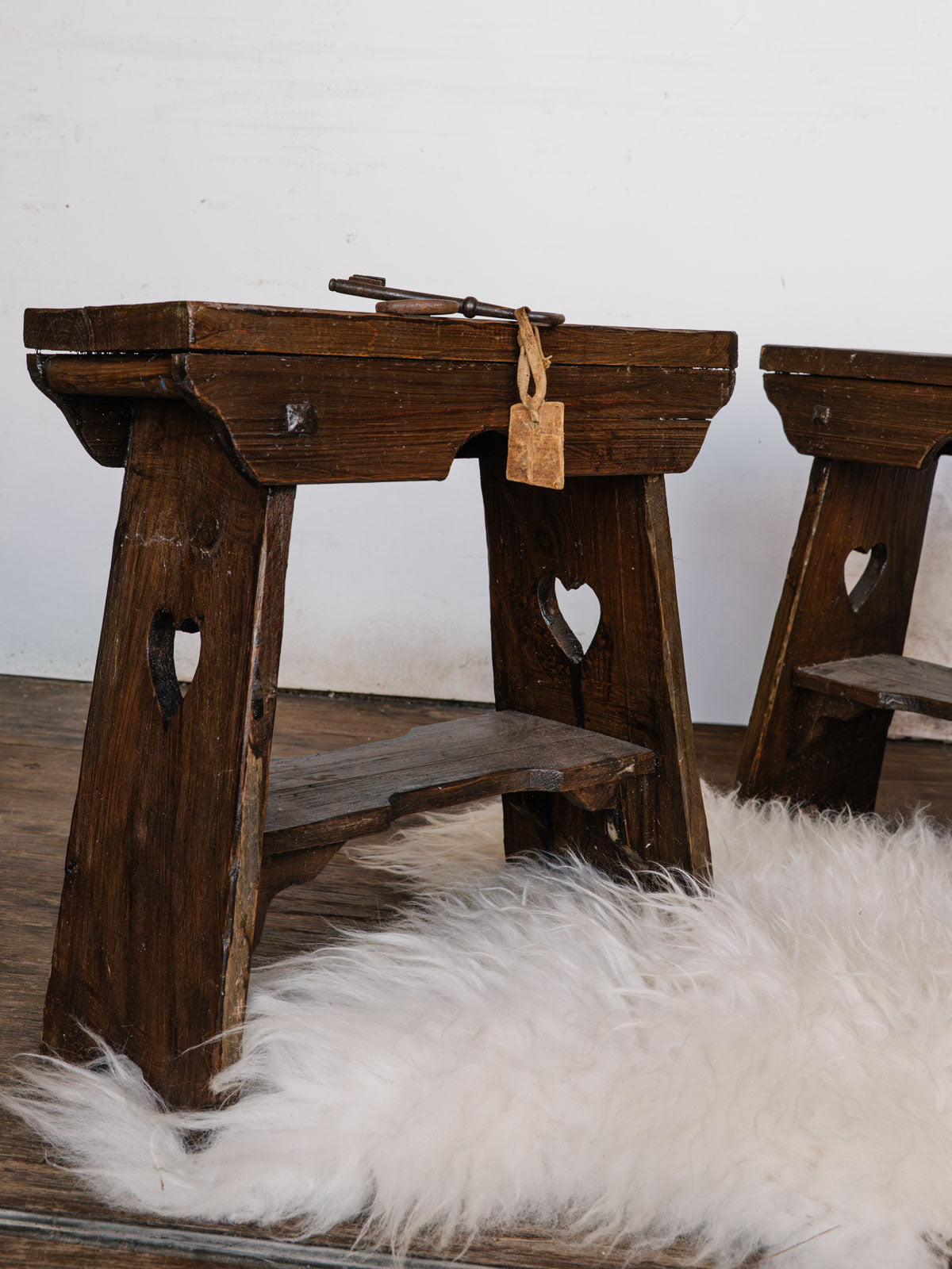 Discover this Savoyard wooden stool, emblematic of the turn of the century, which combines charm and rusticity. It fits perfectly into an authentic interior. Its warm patina and sleek design bring a touch of elegance to your decor while providing practical and comfortable seating. Ideal for decorating a kitchen, bar, or dining room, this stool is a real favorite for vintage furniture lovers. Two pieces available, sold individually.
