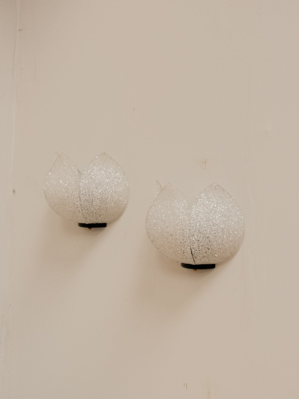 Bring a vintage touch to your home with this pair of tulip wall lights, typical of the 50s and 70s. Made from high-quality acrylic, they feature an elegant tulip shape, while their plastic and brass base ensures durability and style. These wall lights will brighten up your space while adding unparalleled retro charm. A perfect choice for those who appreciate authentic and warm design.