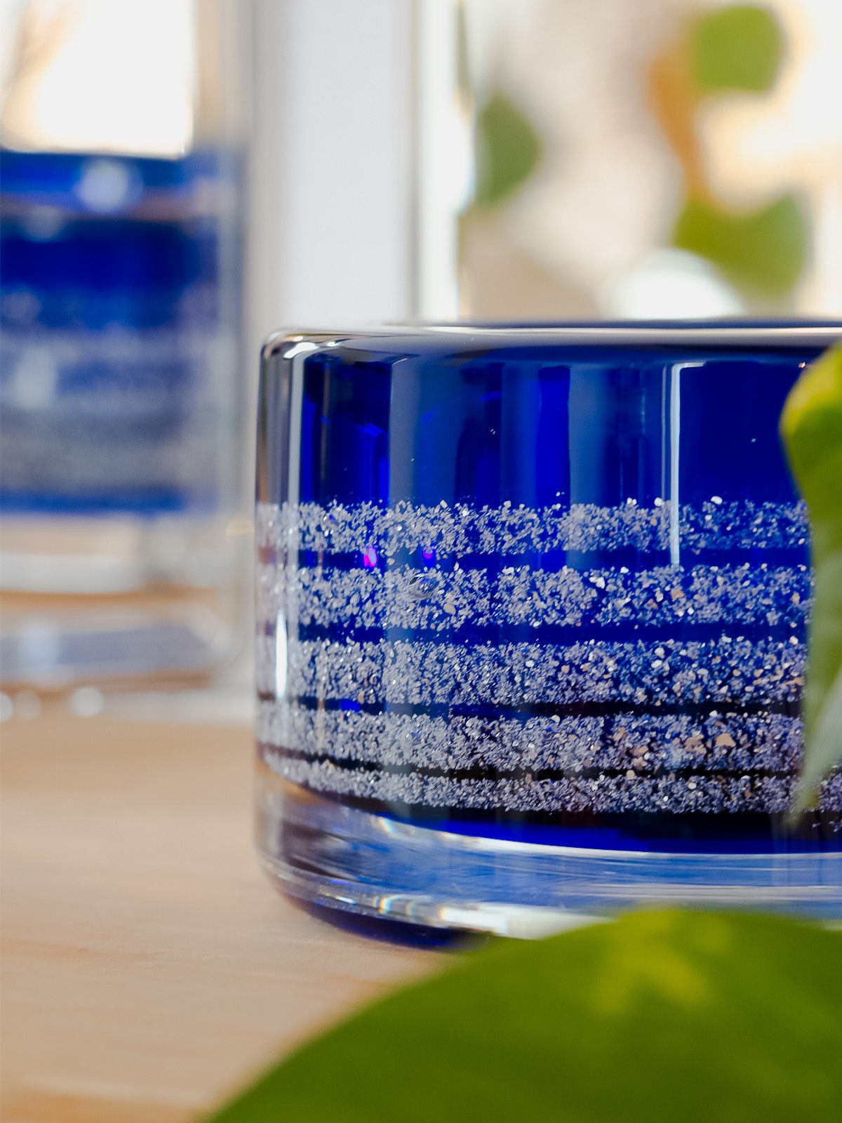 Add this Italian Murano glass valet tray in blue and silver, its rounded shape and thick glass giving it a stable and tactile presence. Its compact size holds keys, jewelry, or small everyday treasures, adding a refined touch to a desk, console, or side table. The deep blue hue punctuated with silver and the hand-worked glass evoke artisanal craftsmanship and understated elegance, perfect for contemporary or vintage décor.