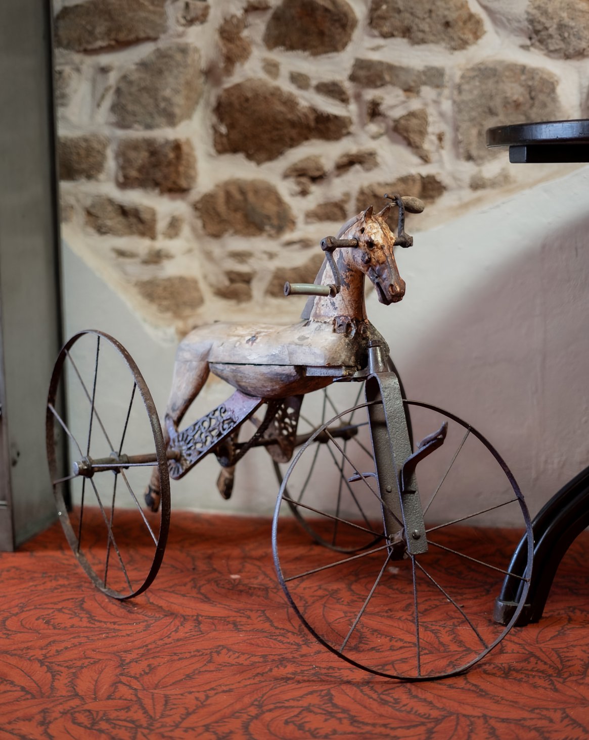 Immerse yourself in the world of yesteryear with this antique wooden tricycle, a perfect illustration of 19th-century charm. Featuring metal wheels, this children's toy boasts an authentic patina and traces of time that give it a unique character. A true collector's item, it will appeal to lovers of antique objects in search of authenticity and nostalgia. Give your home a breath of history with this charming tricycle.