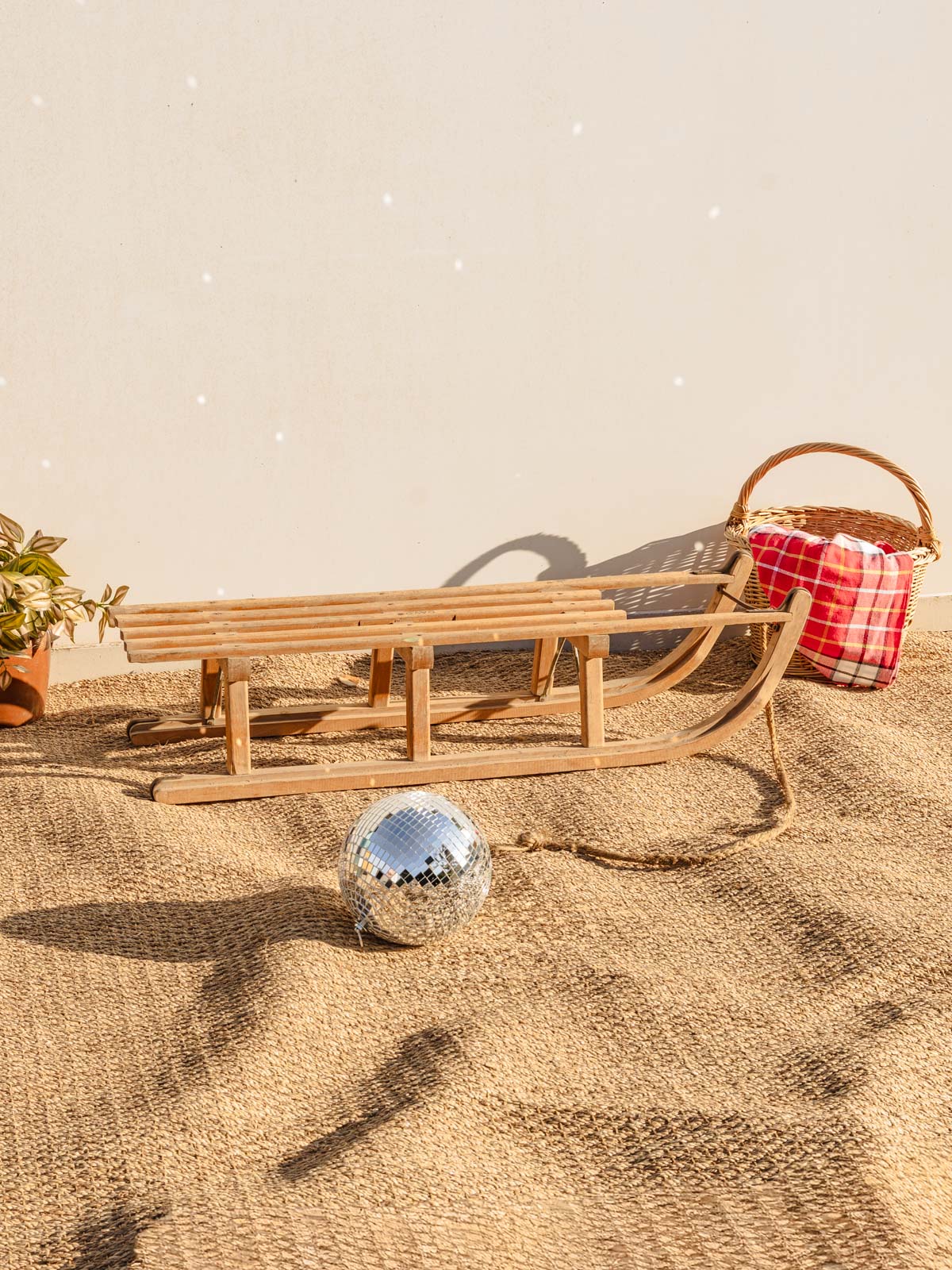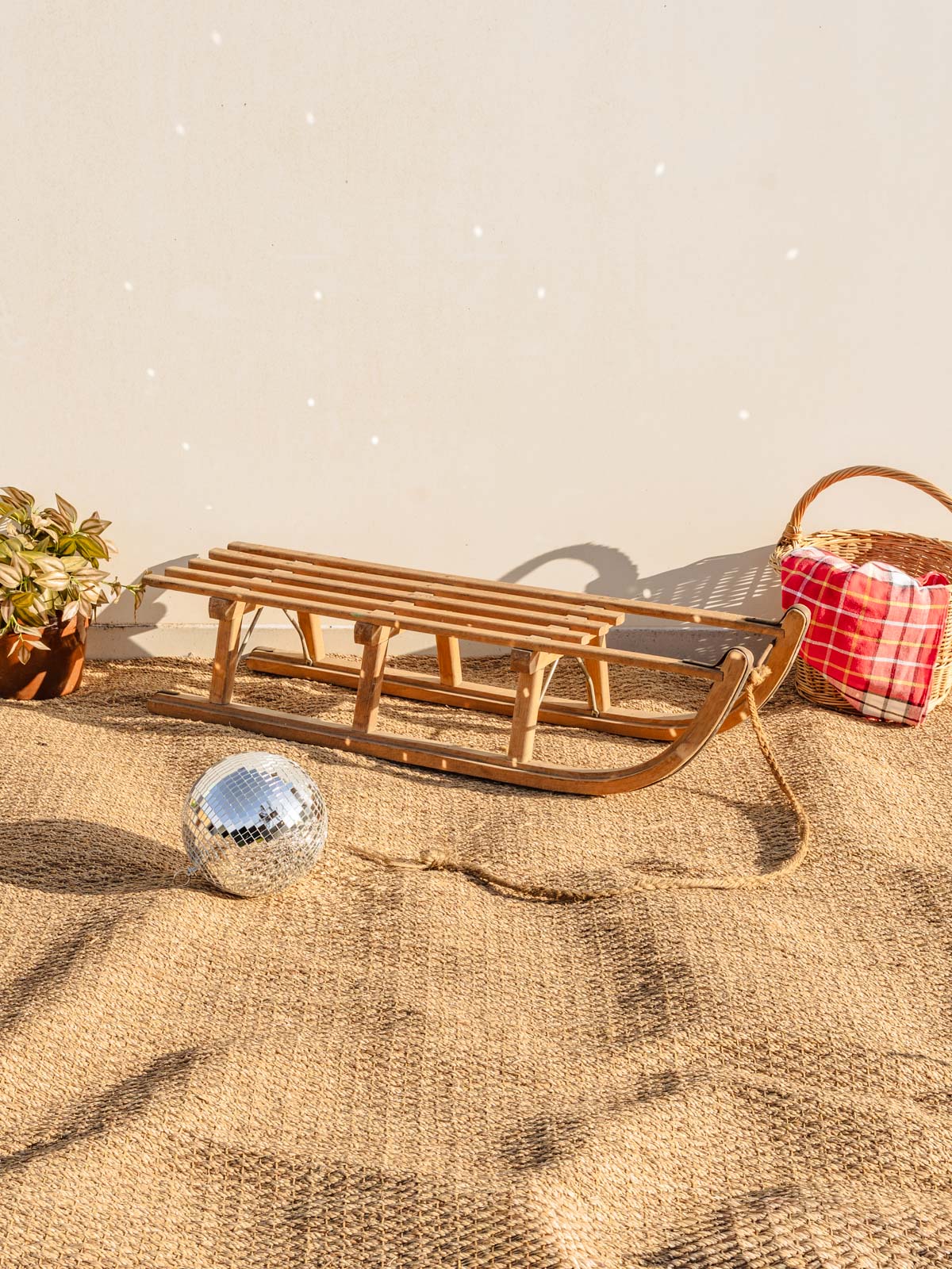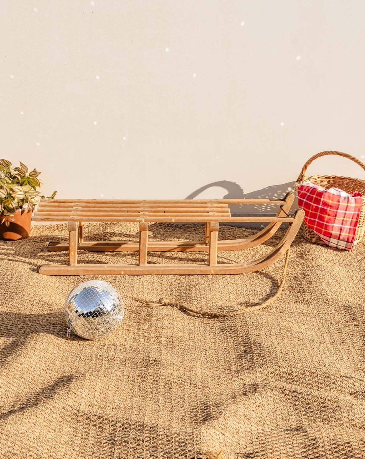 Bring the charm of winters past into your home with this vintage wooden sled, adorned with an authentic rope. Its shape and proportions make it an ideal decorative piece, placed against a wall, above a fireplace, or transformed into a shelf for books and other objects. Its natural appearance creates a warm and nostalgic atmosphere, perfect for structuring an entryway or enhancing a Scandinavian living room. A few signs of age only add to its authenticity.
