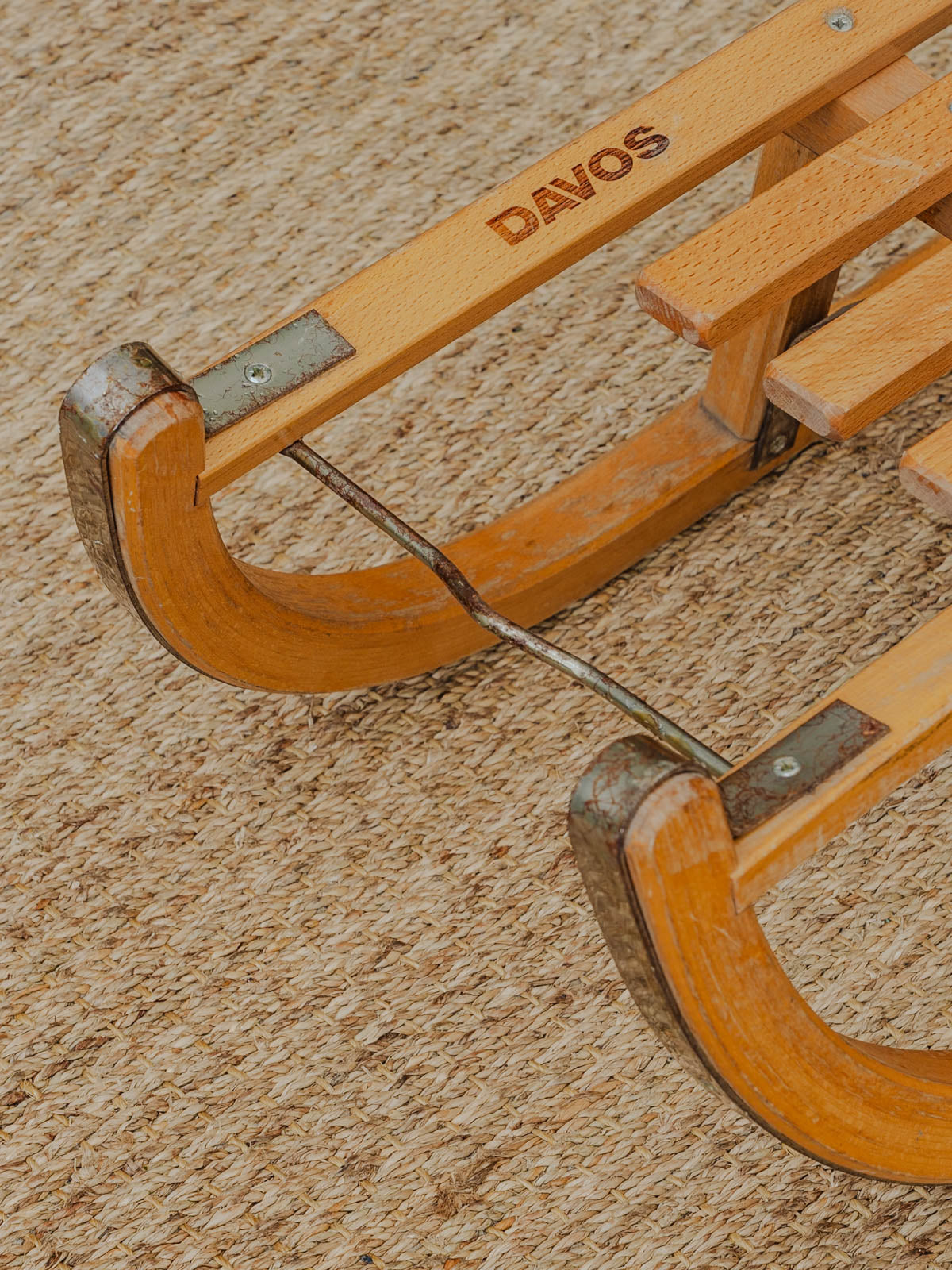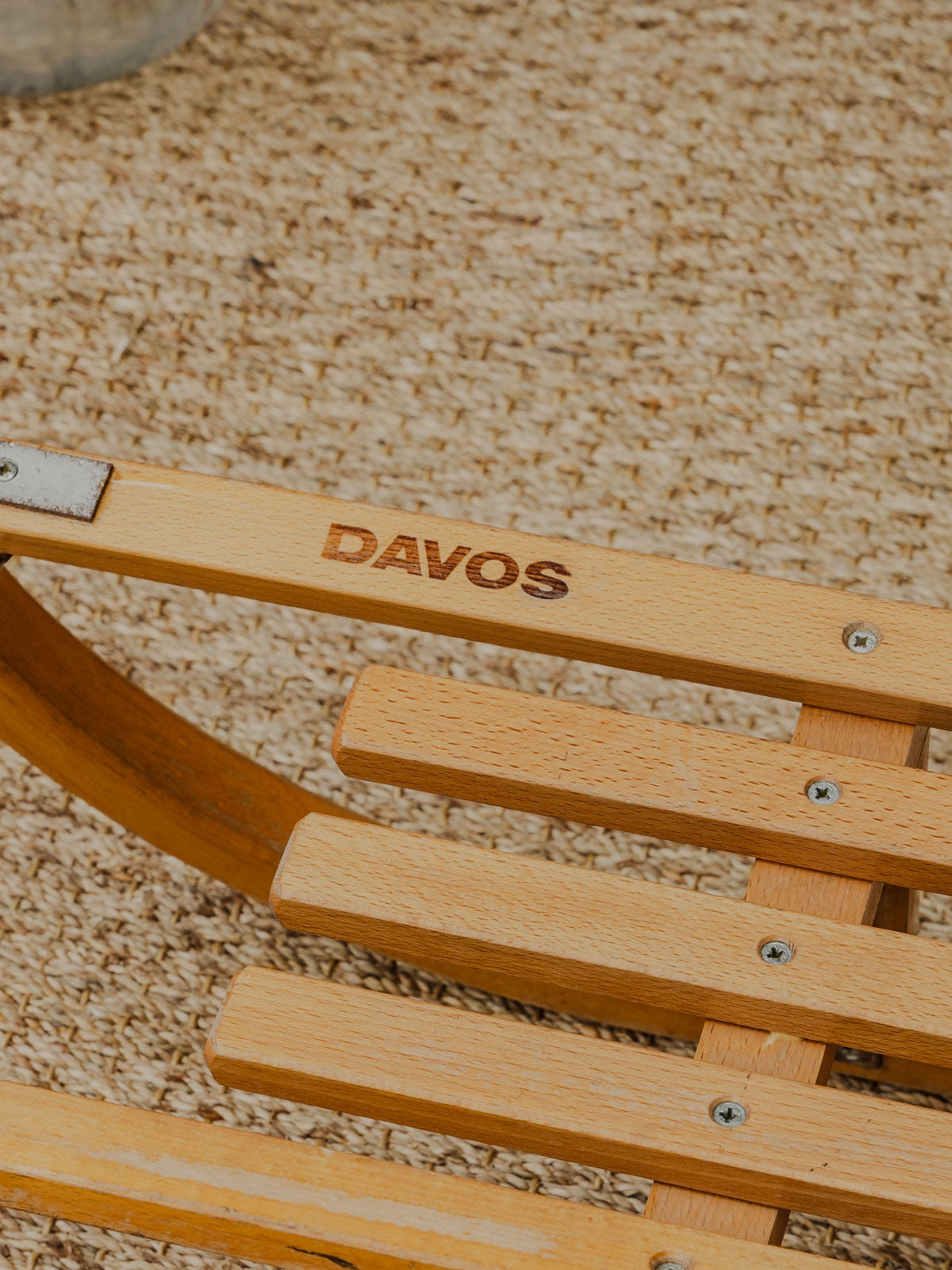 Adopt this wooden sled by DAVOS, with its vintage design and clean, elegant lines. Its length and proportions make it a beautiful decorative piece to place against a wall, use as an extra bench for cushions, or to display plants and objects. The wood has a natural patina that brings warmth and nostalgia to any interior, from the most contemporary to the most rustic. Some signs of age are present.
