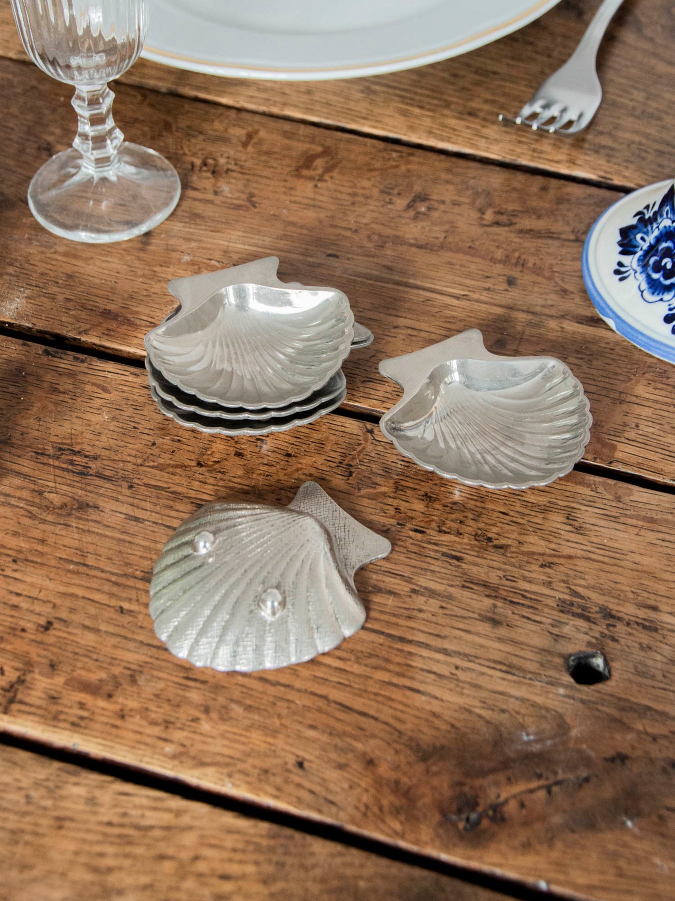 Add a touch of refined nautical elegance to your table with this set of five silver-plated aluminum bowls, molded in the shape of scallop shells. Their luminous finish catches the light and beautifully showcases appetizers, condiments, small sweets, or jewelry, while their delicate shape is perfect for elegant presentations and tablescapes. Lightweight and easy to place, they also work well as decorative catchalls or candle holders, creating a sophisticated and understated atmosphere.