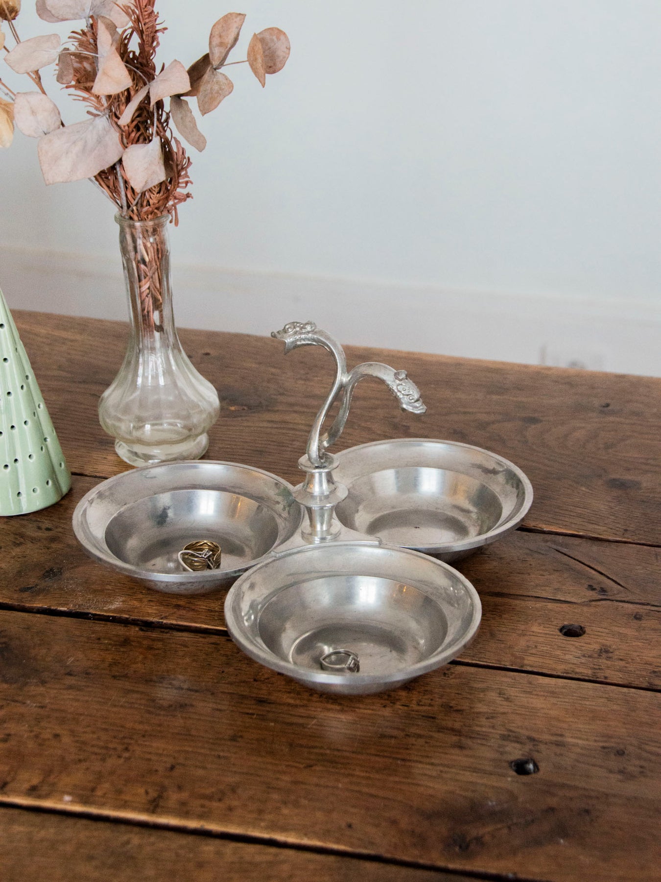Invite mystery to your table with this metal appetizer bowl, sculpted with three dragon heads that give it a unique and decorative character. Compact yet cleverly designed, it holds tapas, condiments, or olives in compartments created for convivial and elegant serving. Its metallic finish adds a touch of Asian inspiration and raw elegance, ideal for a guest table or as a curious object displayed on a shelf.