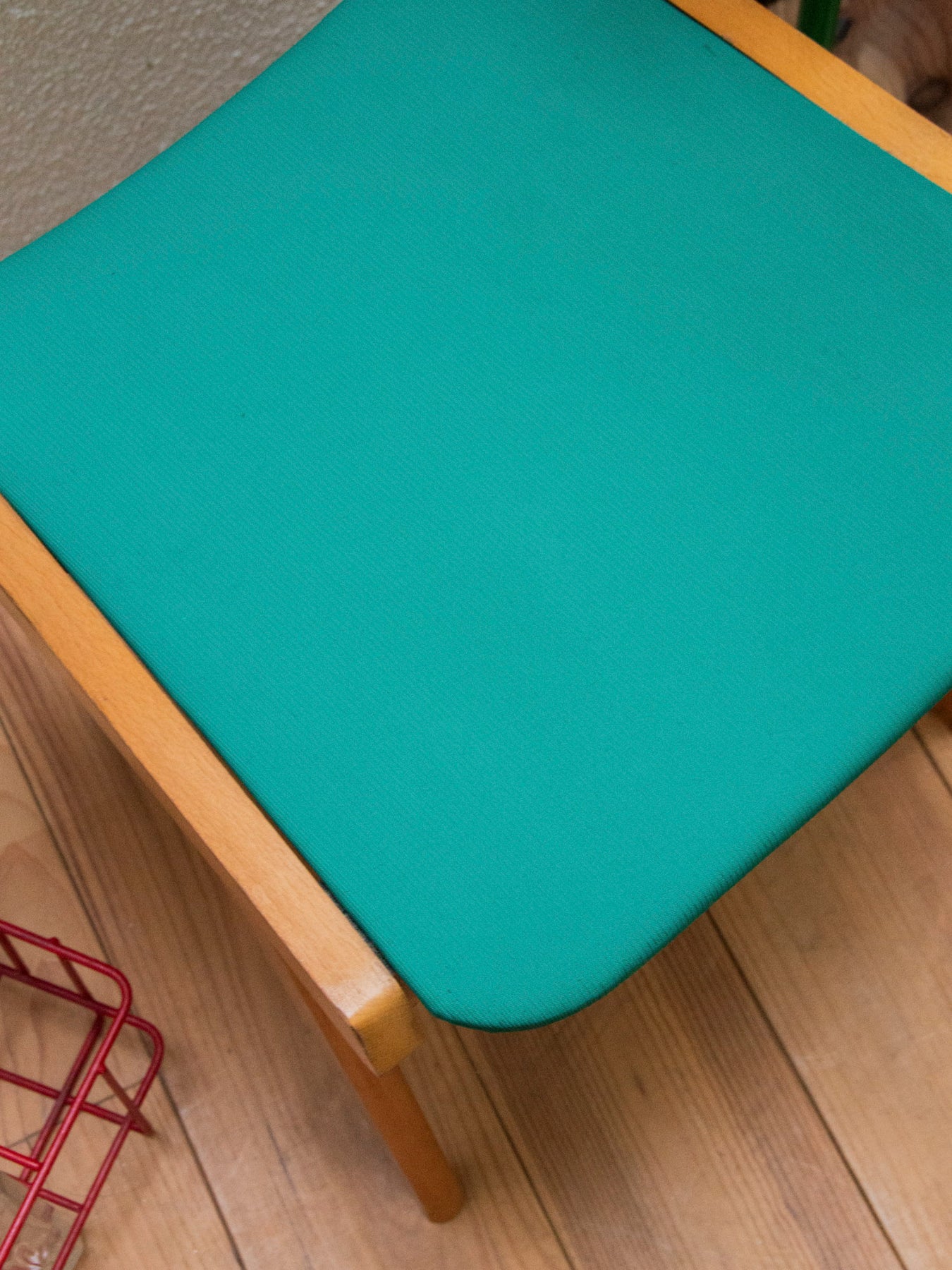 Embrace this chair with its green vinyl-effect upholstery and light wood frame, which blends understated elegance with a touch of retro charm. The lightly padded seat and backrest, along with the wooden armrests, offer immediate comfort for meals, work, or reading, while its balanced proportions fit easily into both small spaces and open-plan living areas. Its inviting aesthetic creates a chic bistro atmosphere, perfect for enjoying time with friends and family.