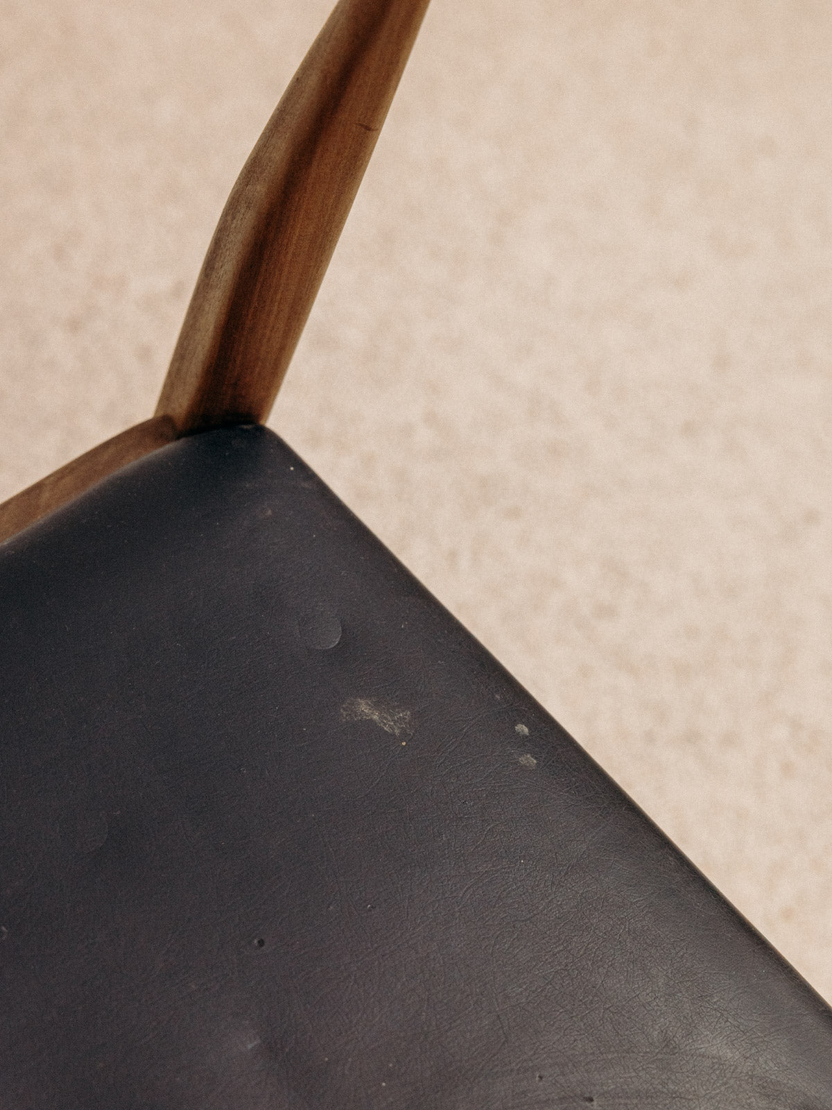 Add a touch of Scandinavian elegance to your home with this Danish chair featuring a clean design. Its black vinyl seat combines comfort and style, while its solid wood frame ensures exceptional durability. Although some signs of wear are present, they attest to the authentic character of this vintage piece. Ideal for complementing a dining area or workspace, this chair is a true asset to your décor.