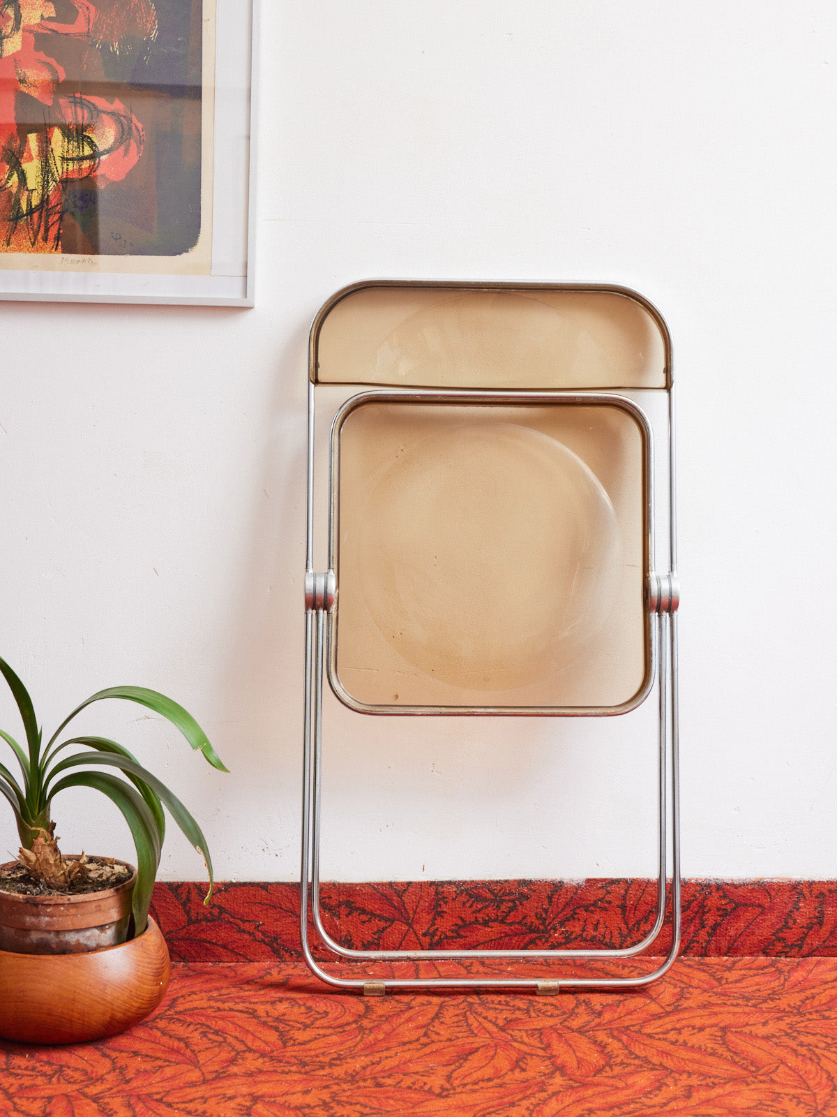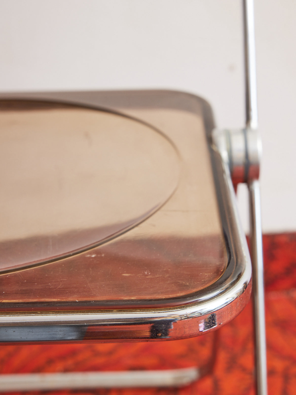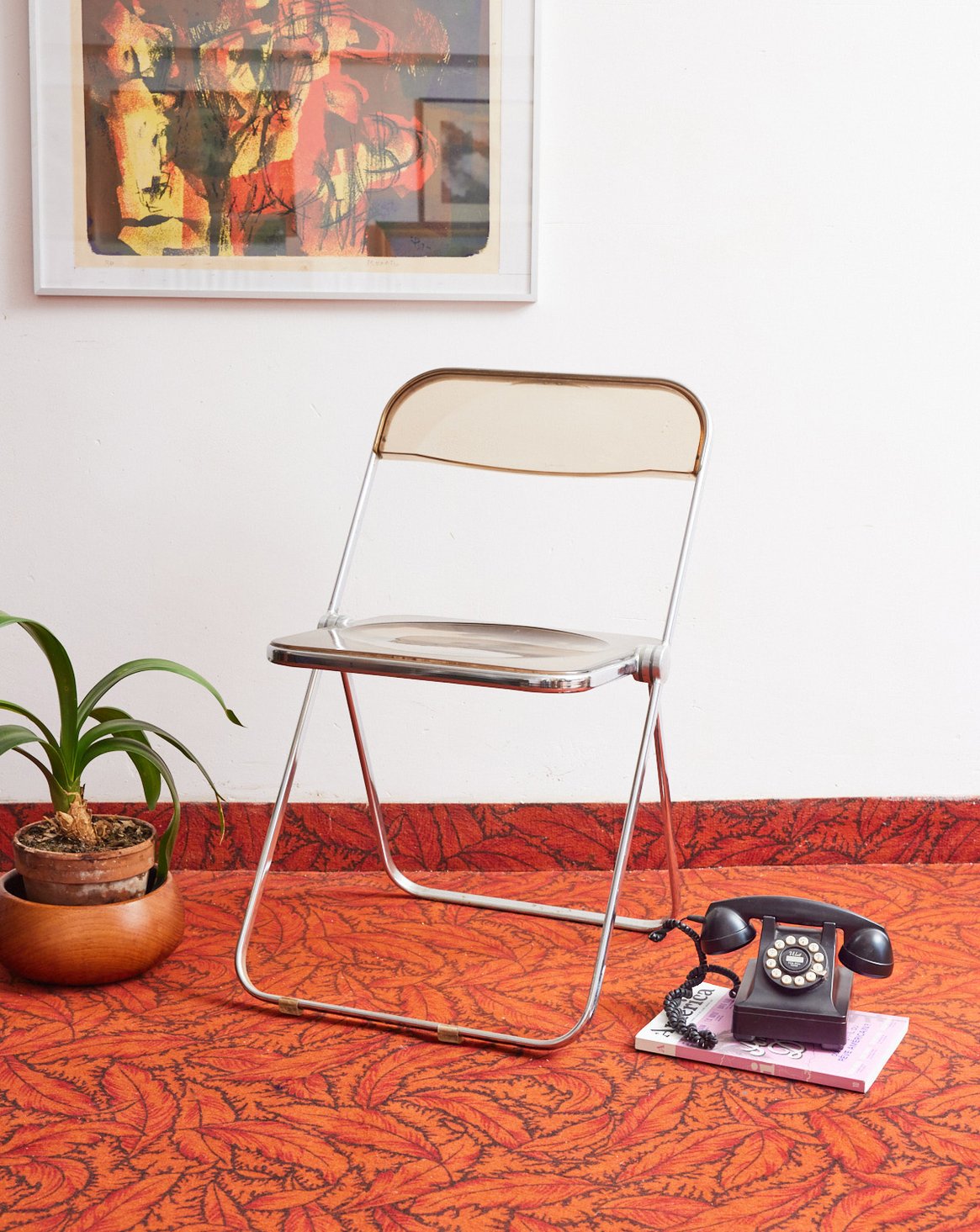 Adoptez la chaise Plia de Giancarlo Piretti en plexiglass fumé, pièce emblématique du design léger et pliante qui se glisse avec élégance dans un intérieur contemporain. Son assise transparente aux teintes fumées joue des contrastes, offrant une présence discrète mais graphique autour d'une table ou dans un coin bureau. La structure pliable assure une grande praticité pour des espaces modulables, tandis que la simplicité des lignes évoque une atmosphère raffinée et lumineuse.