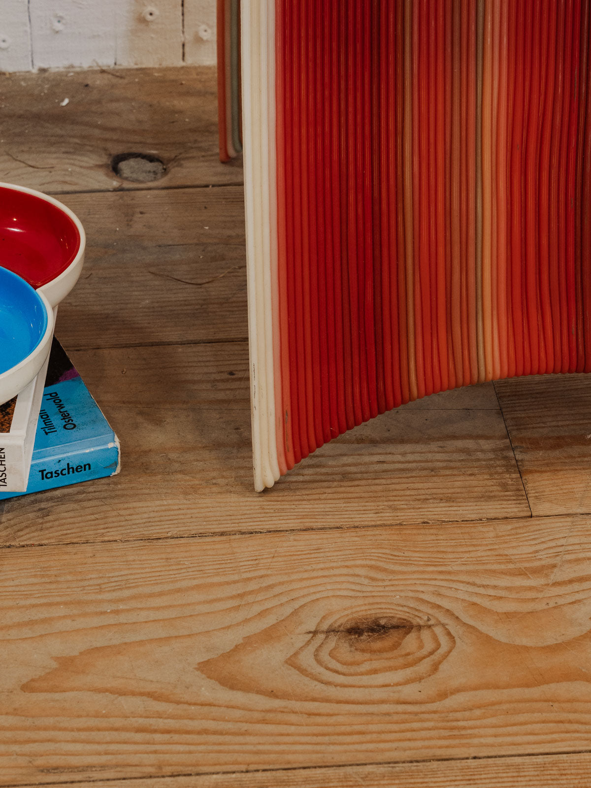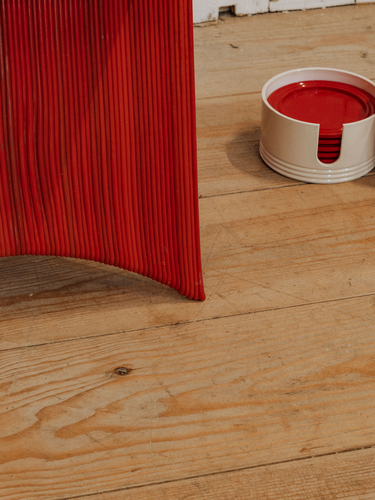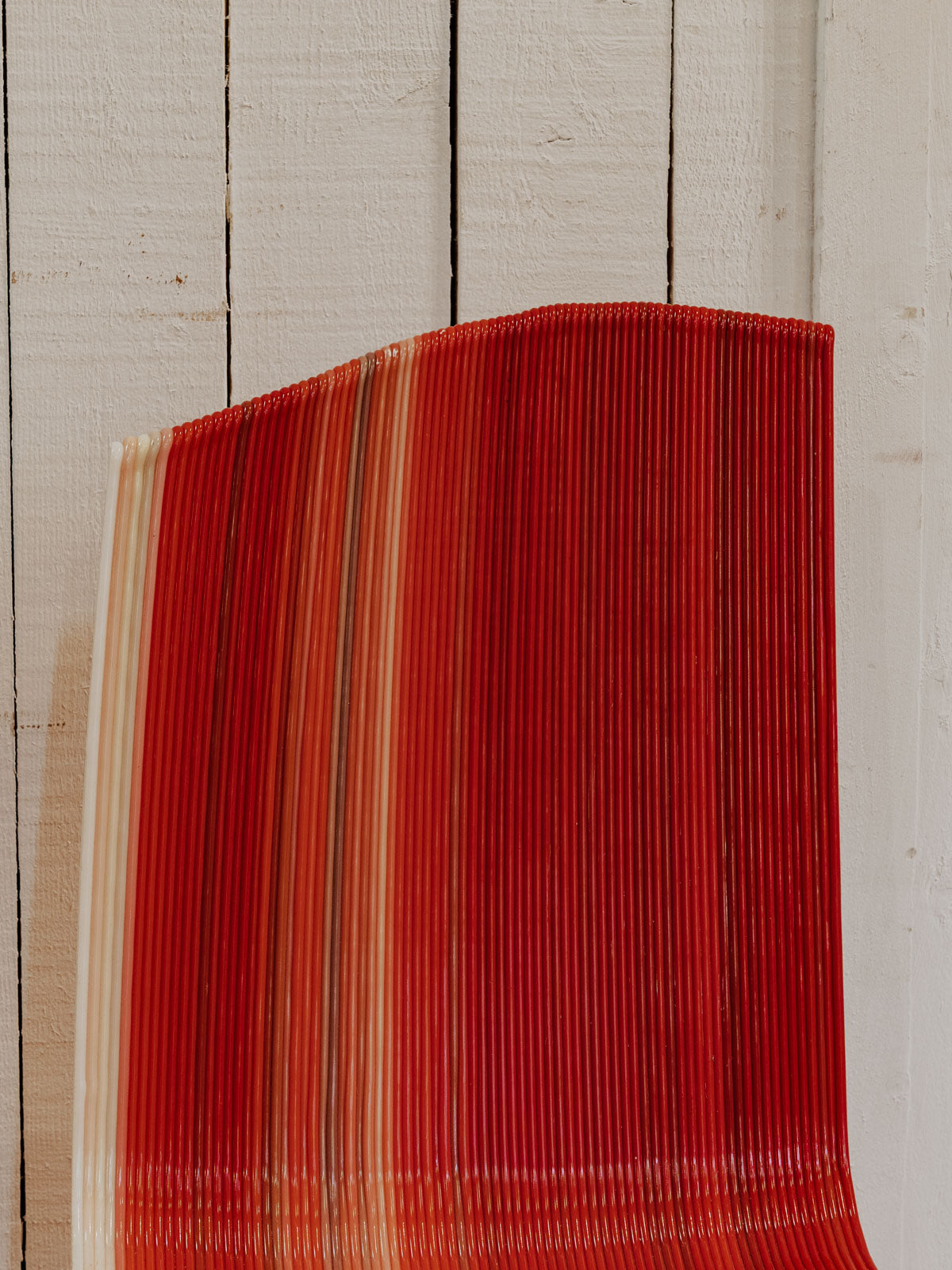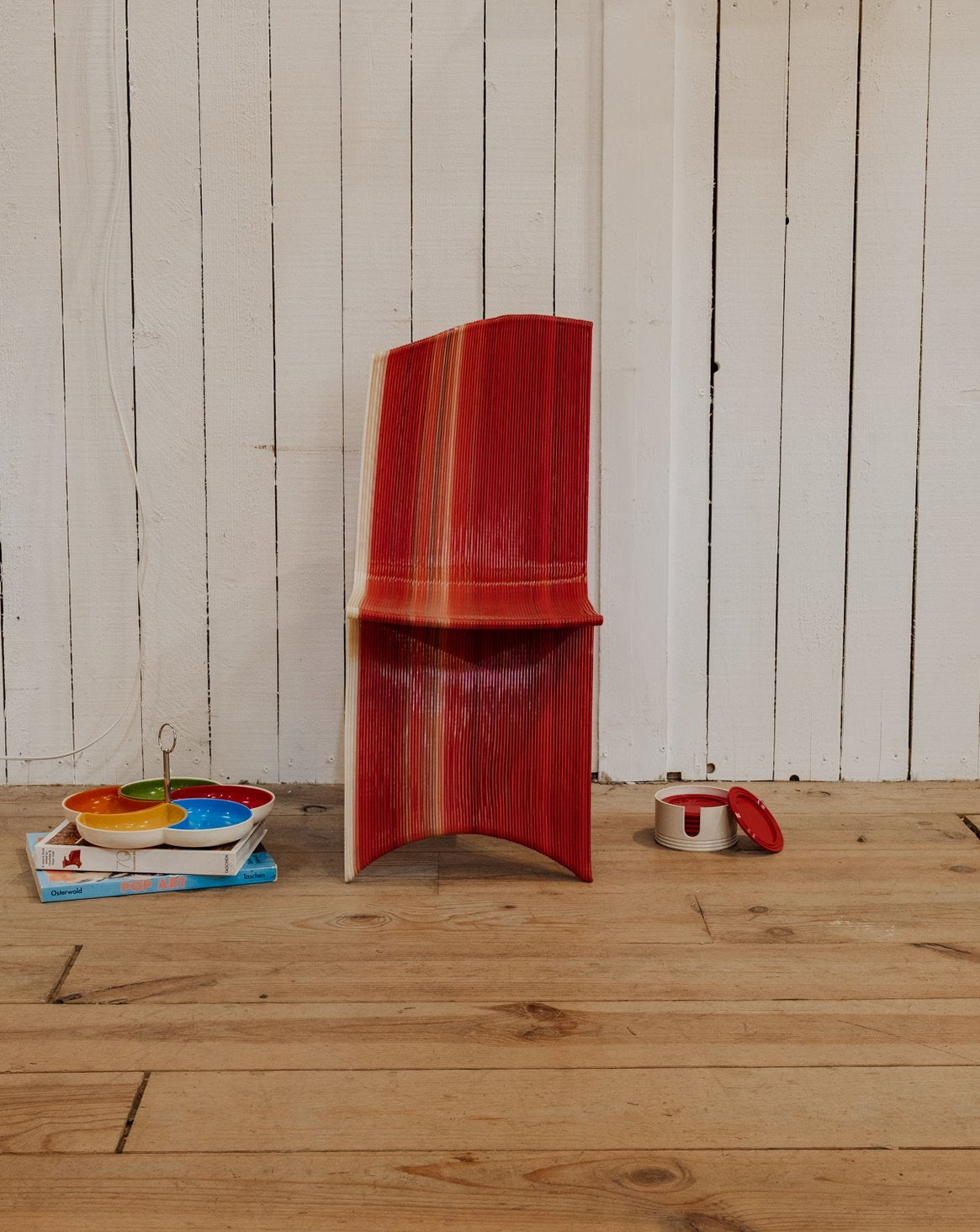 Adopt this chair, an old 3D prototype in a small format, dressed in an energetic red enhanced with graphic colored lines. Molded in polypropylene, it offers a lightweight, resistant, and easy-to-maintain seat, ideal as an extra chair for a compact office, a child's bedroom, or a contemporary reading nook. Its unique look blends experimental design and functionality, bringing a colorful and controlled touch to a modern interior.