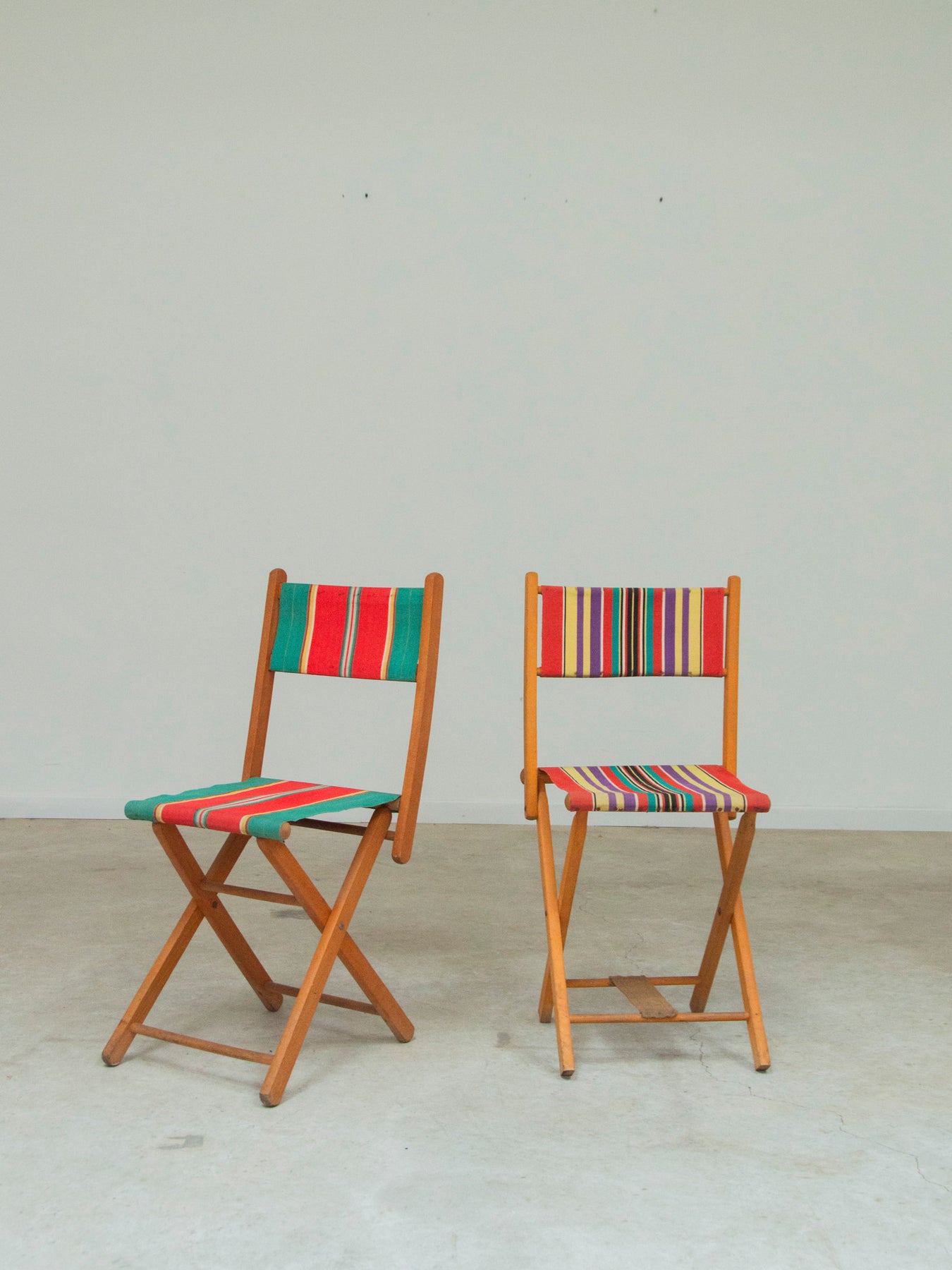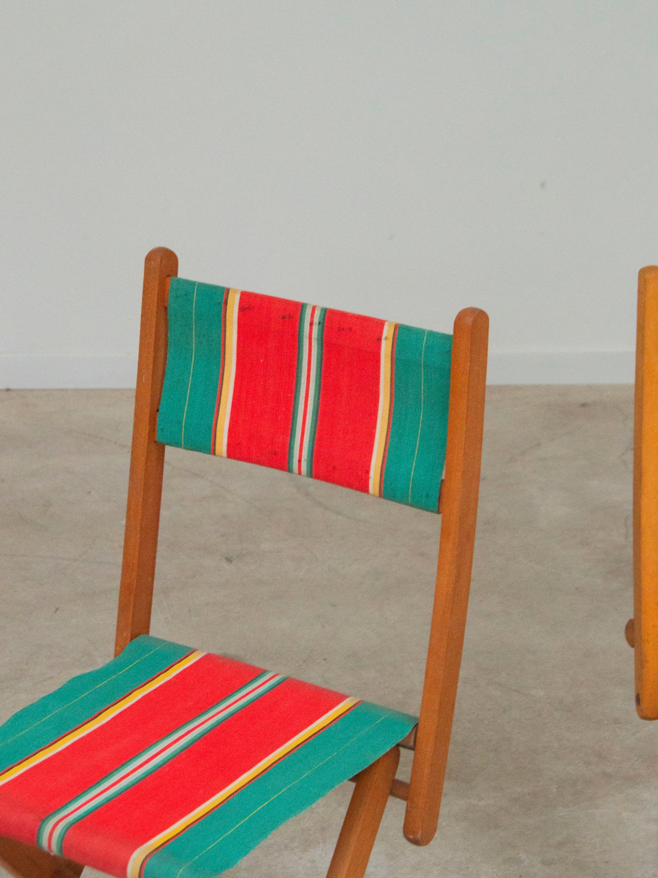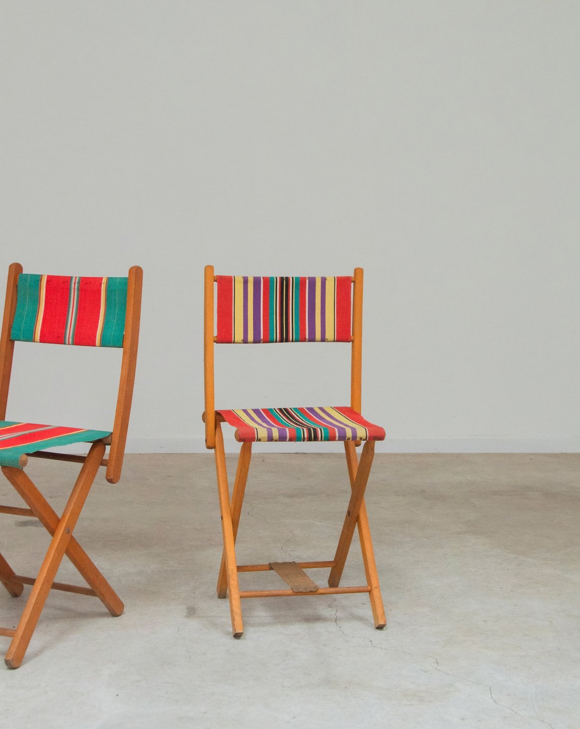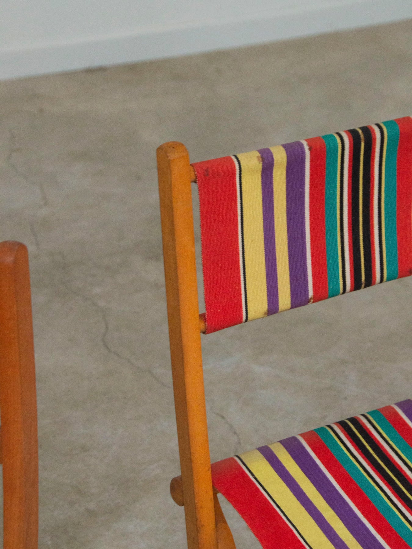 Choose these light wood folding chairs, enhanced by a seat and back upholstered in multicolored or green and red fabric, which add a touch of character to a dining room or sheltered patio. Their lightweight light wood frame ensures an elegant and inviting silhouette, while the fabric provides comfort and a personal touch. They fold completely for discreet storage or easy transport for outdoor meals. Perfect for creating flexible spaces for everyday use.