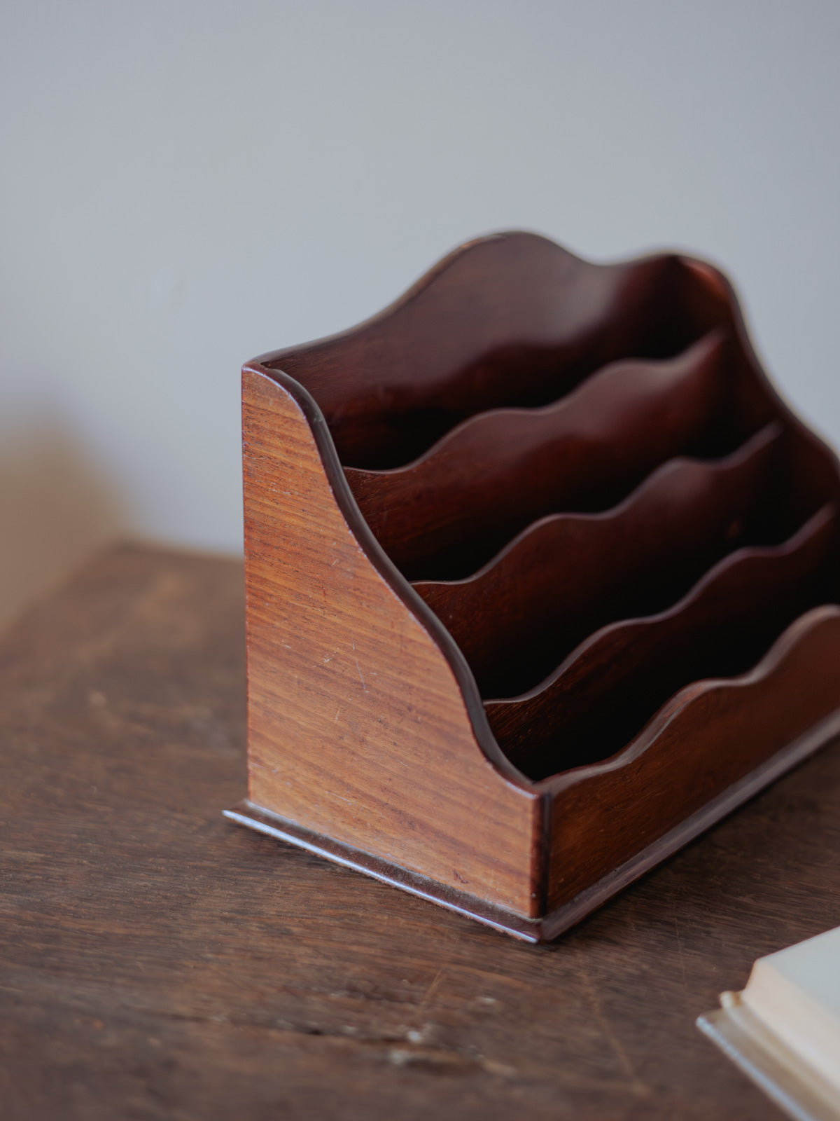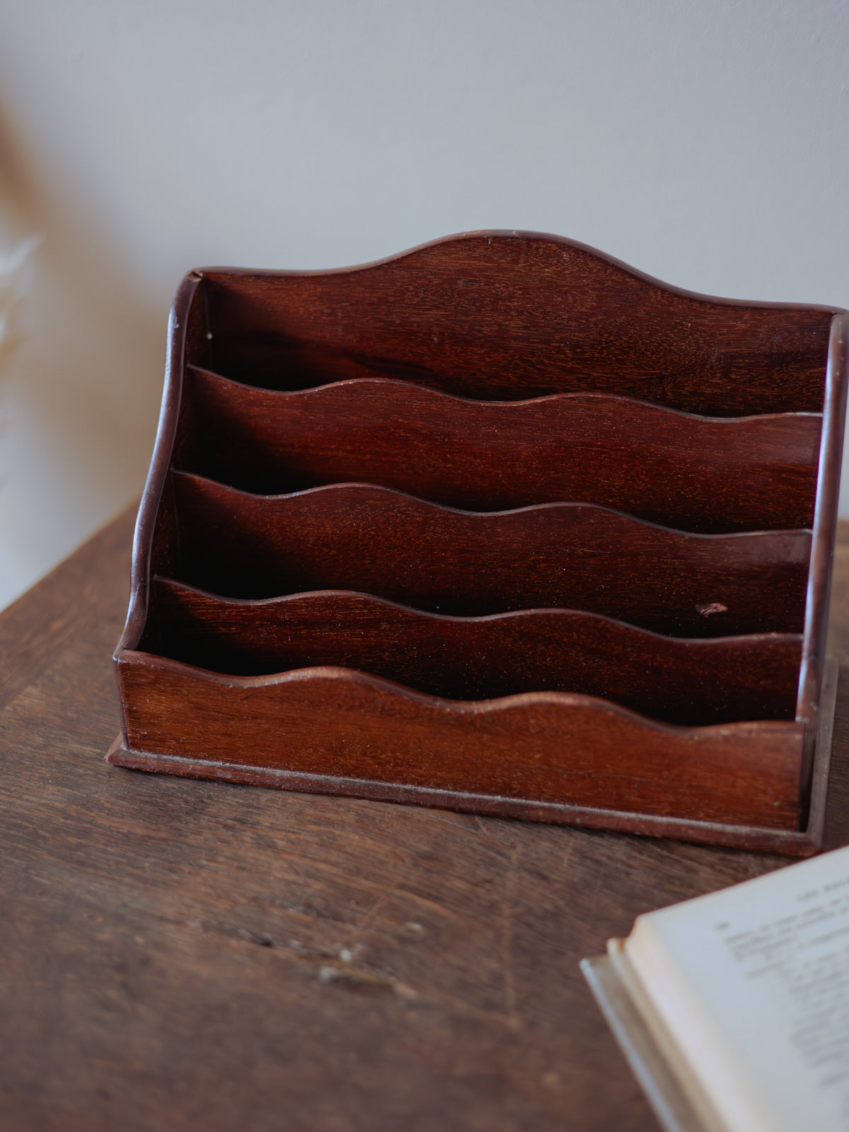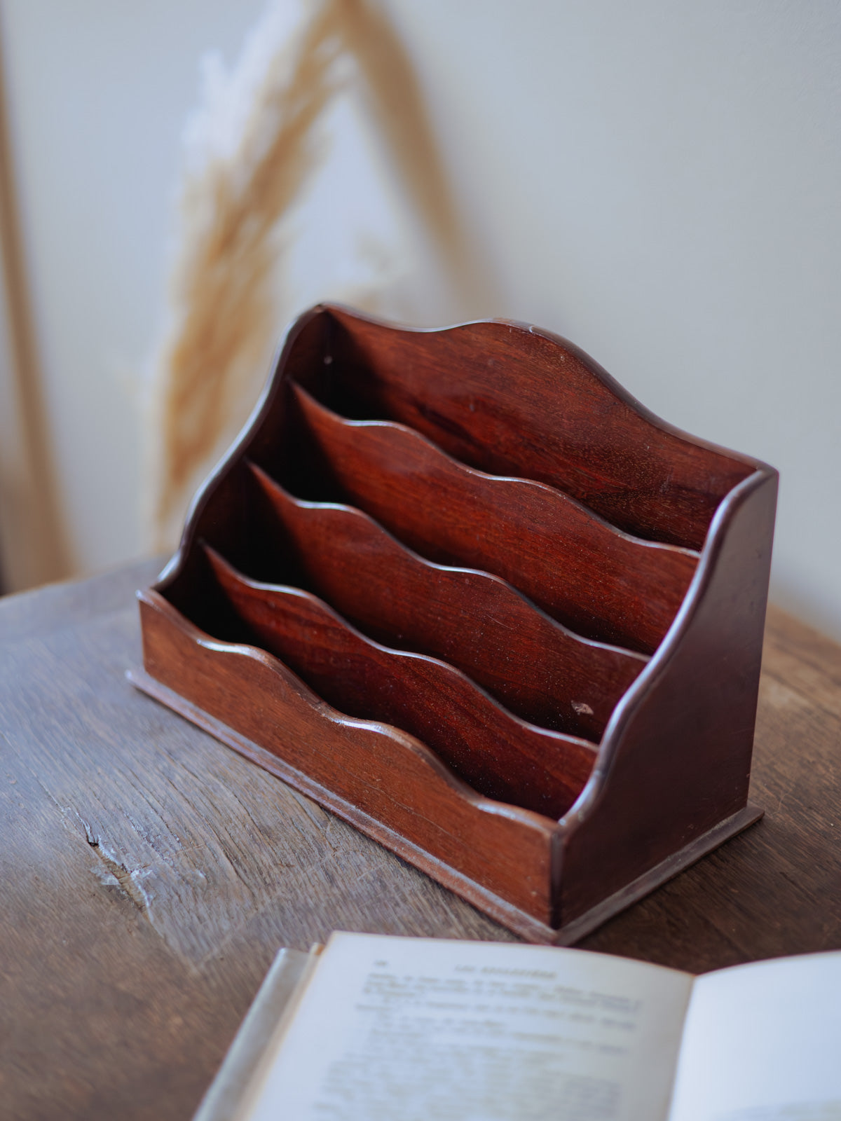 Découvrez ce tri‑courrier en bois aux compartiments sculptés en vaguelettes, une pièce à la fois utilitaire et décorative. Ses quatre emplacements accueillent lettres, factures et petits documents avec élégance, libérant votre bureau ou votre entrée du désordre. Le bois travaillé apporte une chaleur tactile et une allure artisanale qui invite à une organisation poétique. Idéal posé sur une console ou un plan de travail, il crée une ambiance sobre et accueillante.