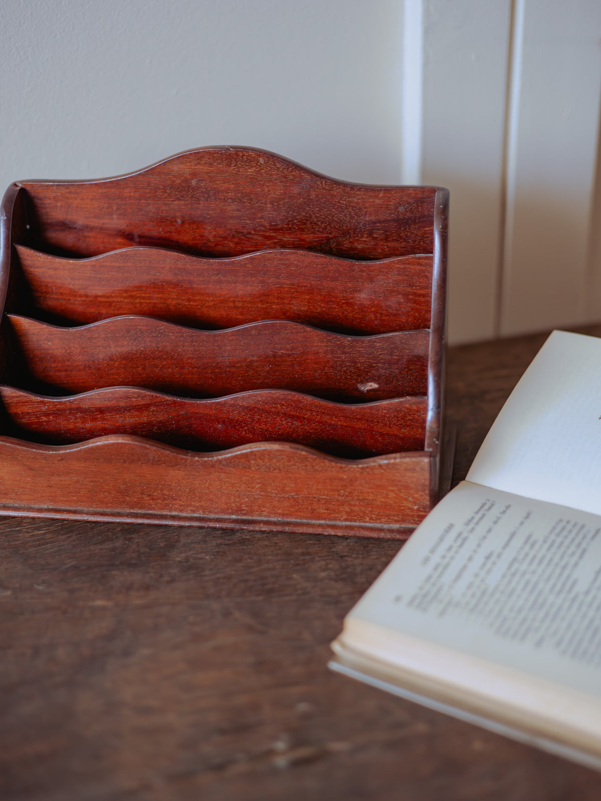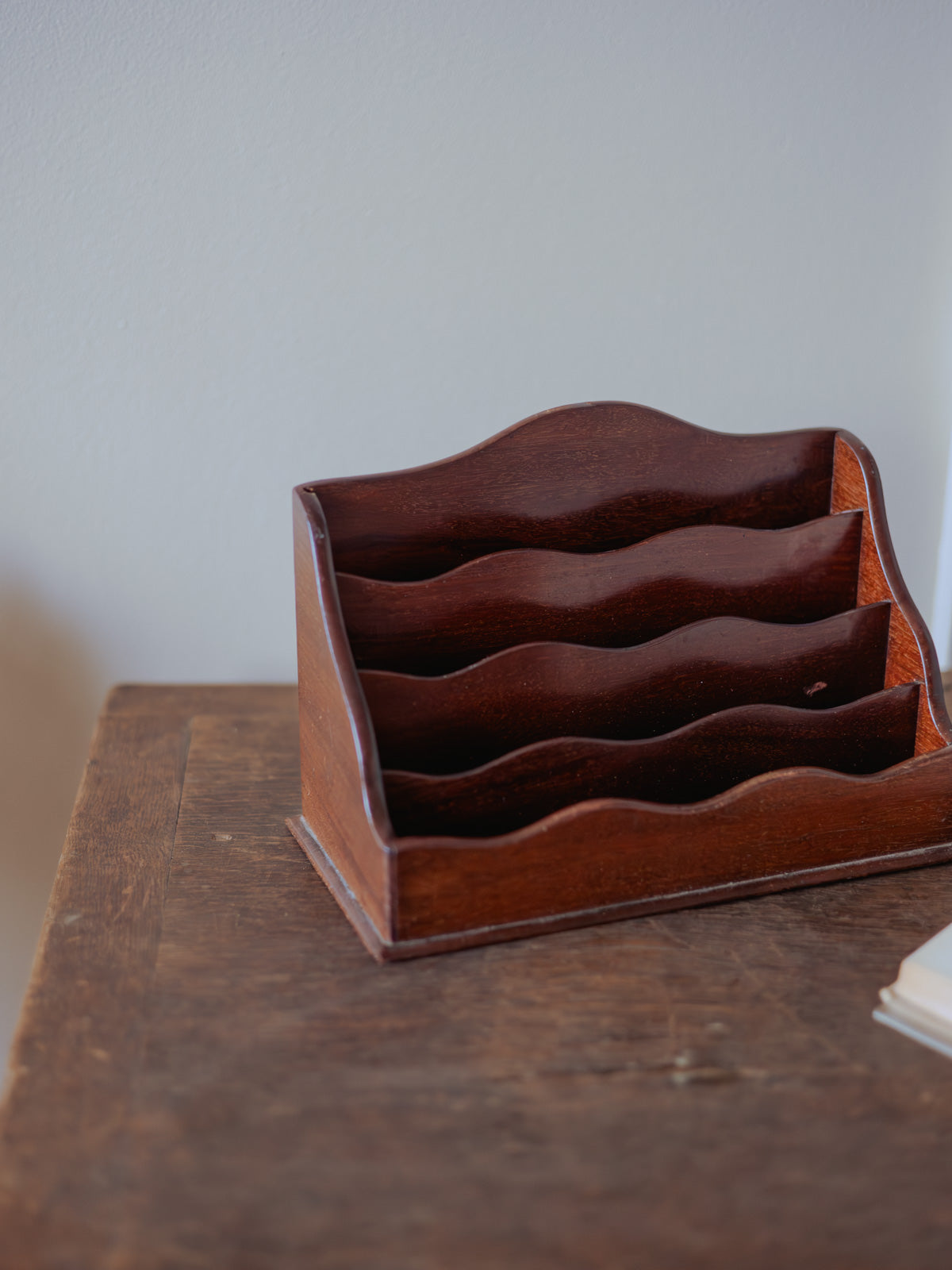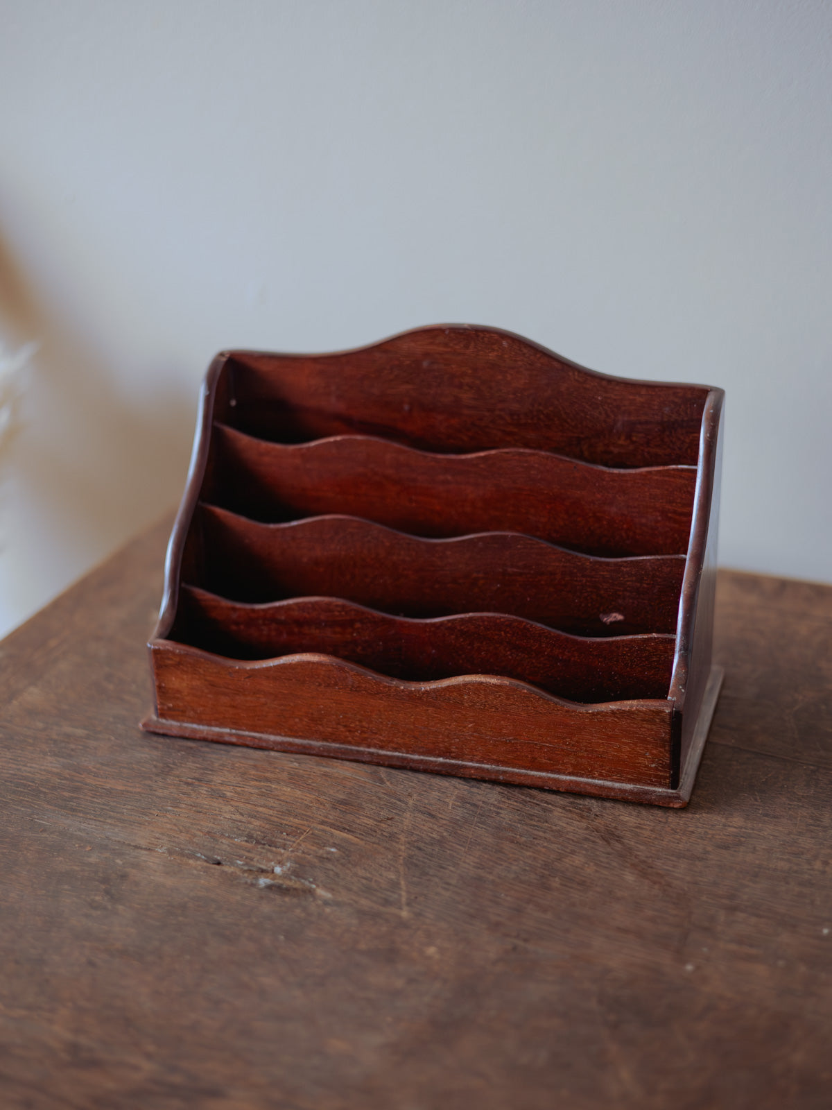 Découvrez ce tri‑courrier en bois aux compartiments sculptés en vaguelettes, une pièce à la fois utilitaire et décorative. Ses quatre emplacements accueillent lettres, factures et petits documents avec élégance, libérant votre bureau ou votre entrée du désordre. Le bois travaillé apporte une chaleur tactile et une allure artisanale qui invite à une organisation poétique. Idéal posé sur une console ou un plan de travail, il crée une ambiance sobre et accueillante.