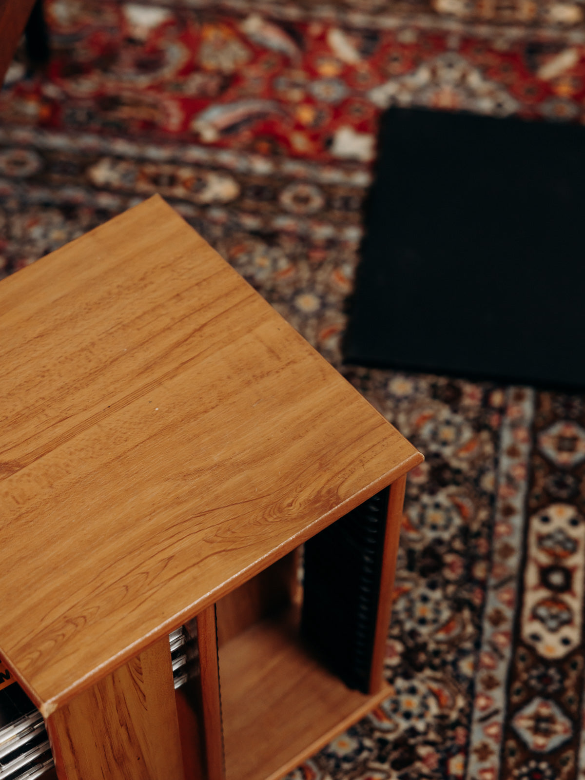 Add this charming, understated wooden CD rack to your home. Its compact, rectangular shape adds a touch of warmth without overwhelming the space. Designed to hold a small selection of CDs, it offers practical storage while remaining space-saving, making it ideal for a shelf, desk, or next to your player. The wood finish lends a simple yet elegant style, bringing a soft and authentic touch to the room. In excellent condition, it retains a beautiful finish.