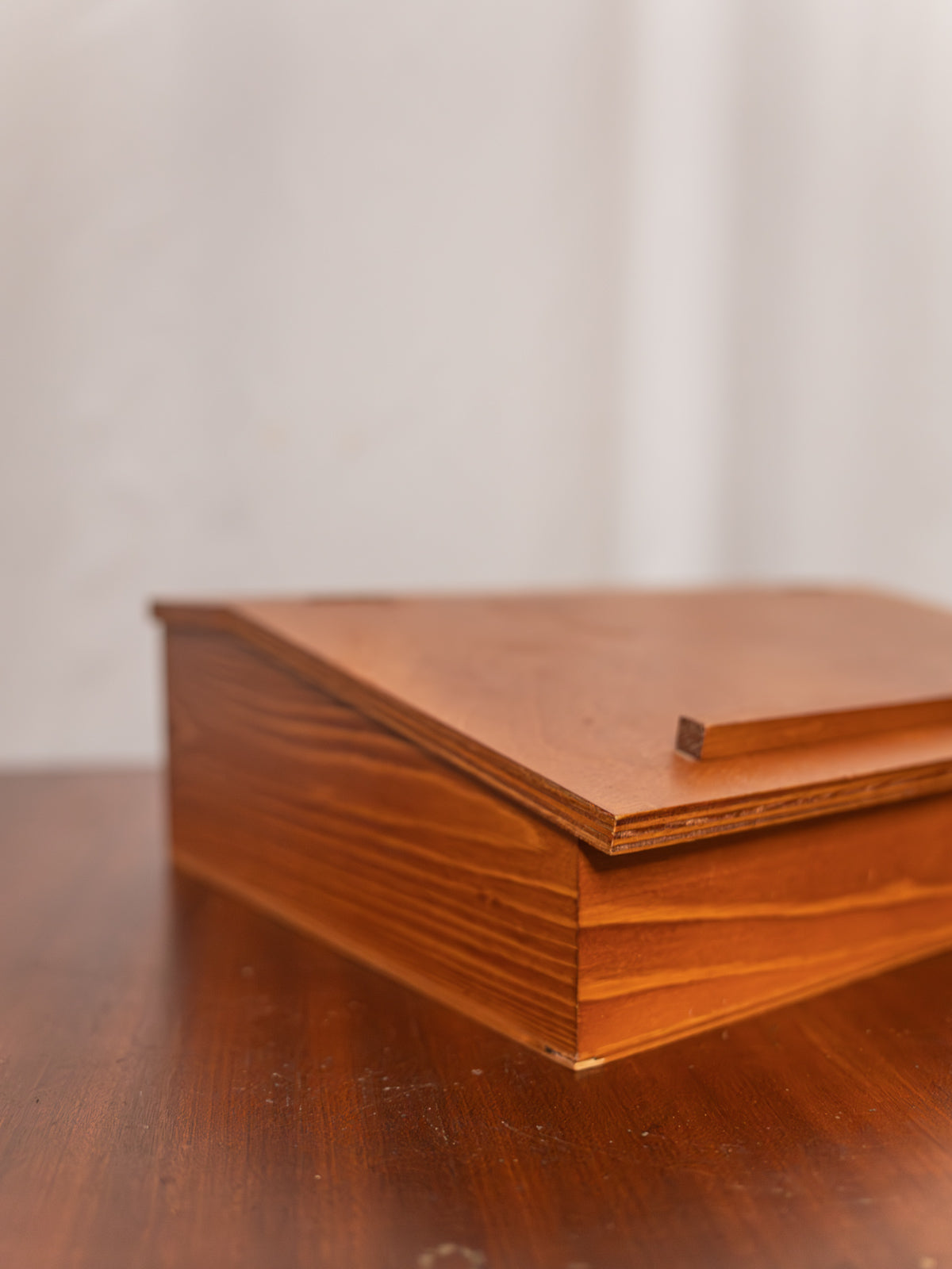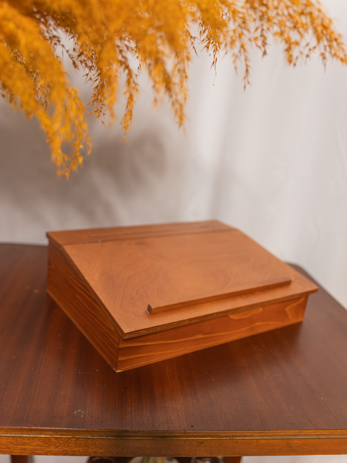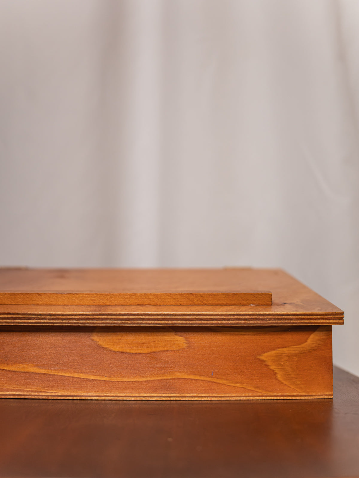 Embrace this small, handcrafted writing desk in light wood, with its understated yet refined charm. Its intimate surface and integrated pen rest make it the perfect companion for correspondence, sketching, and daily notes, without cluttering a desk or console. The soft patina and hand-finished details create a warm and inviting atmosphere, conducive to creativity, blending tradition and simplicity. Minor signs of age are present.