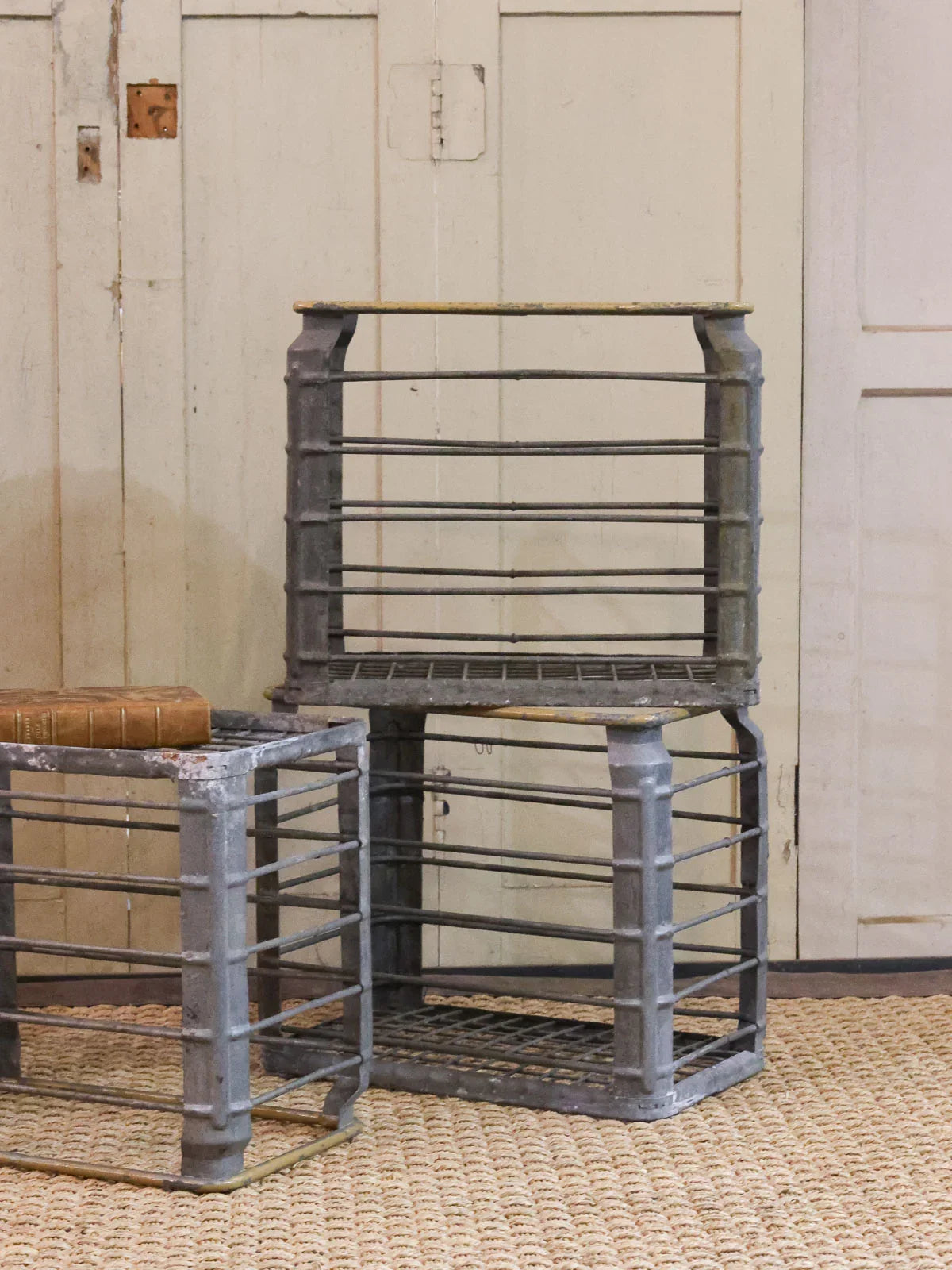 Embrace these industrial-style metal milk crates, finished in a subtle gray paint and a patina reminiscent of a workshop. Their compact size and carefully considered proportions make them versatile storage solutions: use them as bottle racks, small wall shelves, or side tables for plants and books. Their robust construction and clean lines bring a touch of contemporary authenticity to a kitchen, home office, or entryway, allowing for flexible and functional storage solutions. Sold individually, available in three quantities.