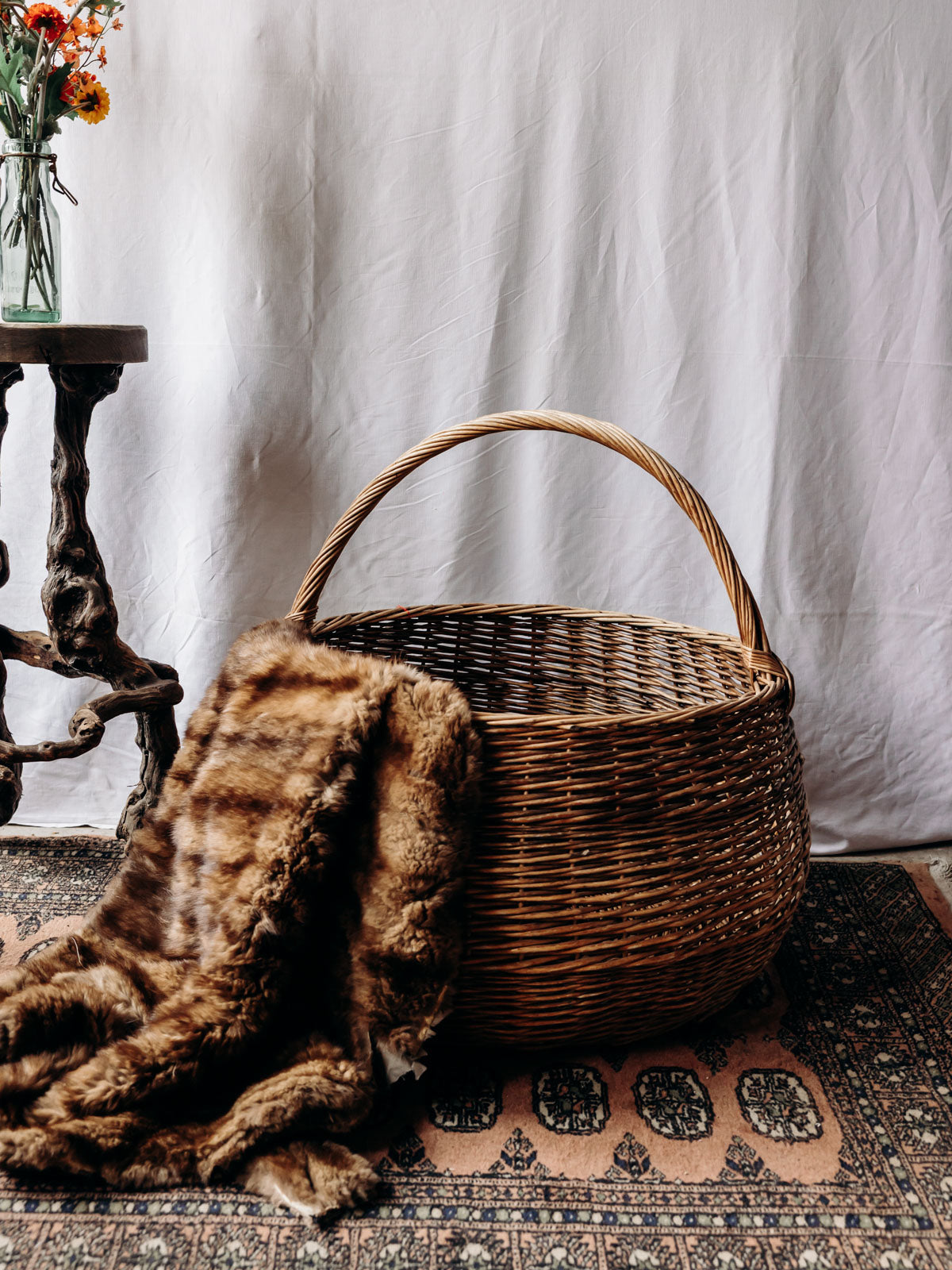 Discover this extra-large, handcrafted wicker basket with a generous handle and ample depth to easily hold blankets, linens, or groceries. Its natural material and round shape bring a warm, bohemian touch to a living room, laundry room, or entryway, while offering practical storage space. Lightweight and easy to carry thanks to its sturdy handle, it combines functionality with natural beauty.