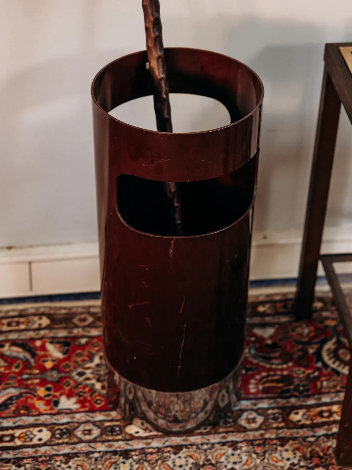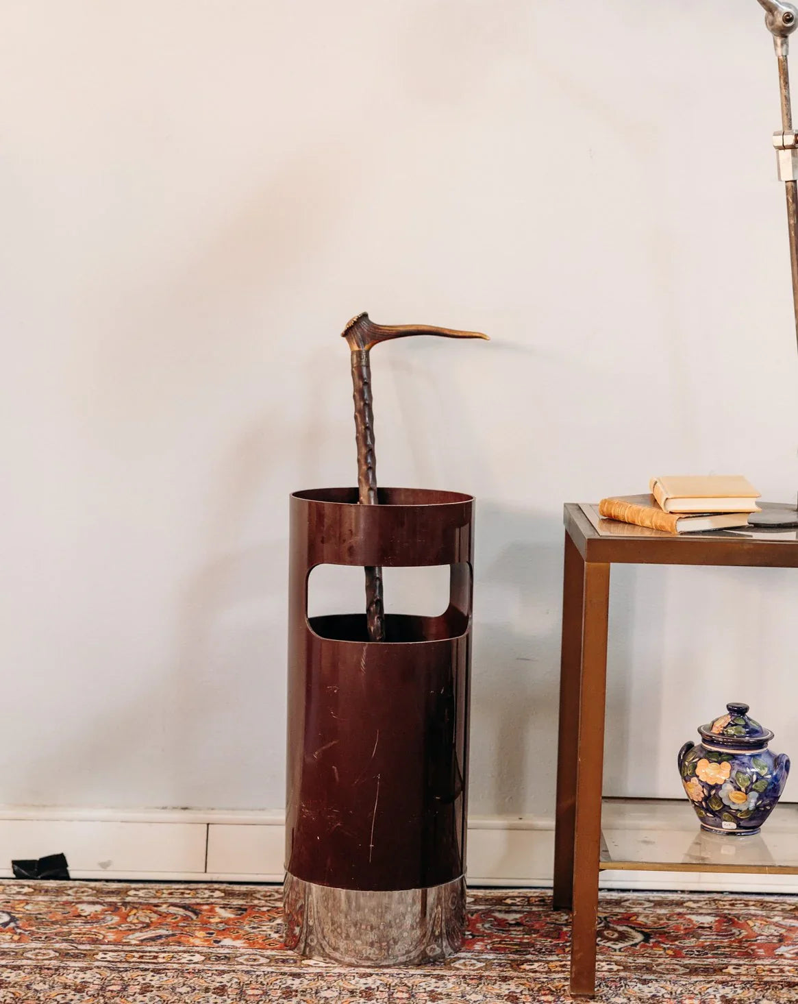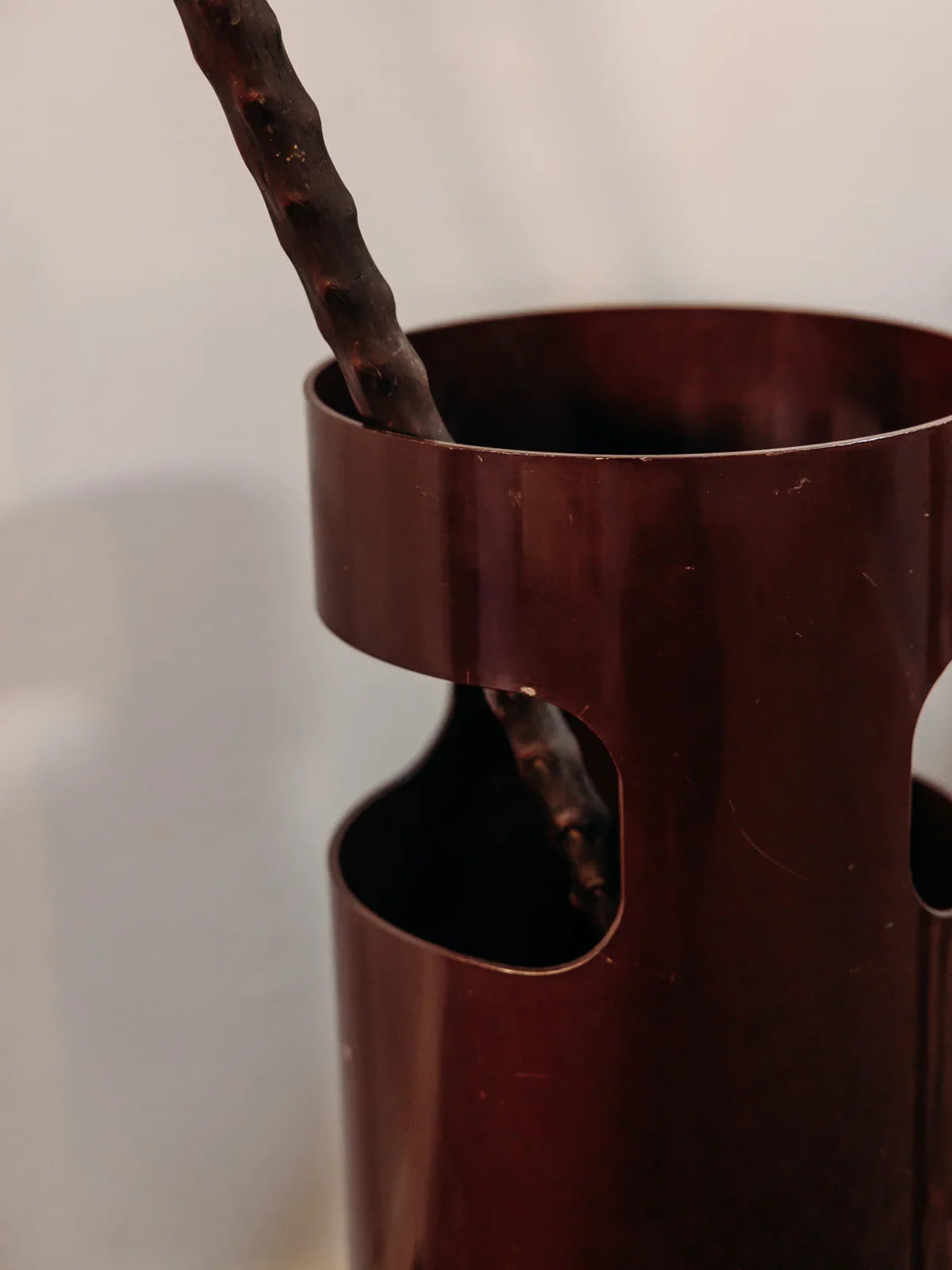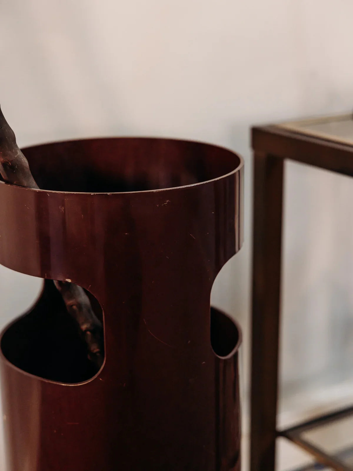 Add a cylindrical umbrella stand made of plexiglass and metal to your entryway, where its slender silhouette and decorative perforations lend a touch of lightness and modernity. Its narrow base holds several umbrellas without obstructing the passage, while the combination of clear plexiglass and metal ensures sturdiness and easy maintenance. Ideal for a reception area, office, or urban apartment, it brings a graphic and functional touch to your everyday life.