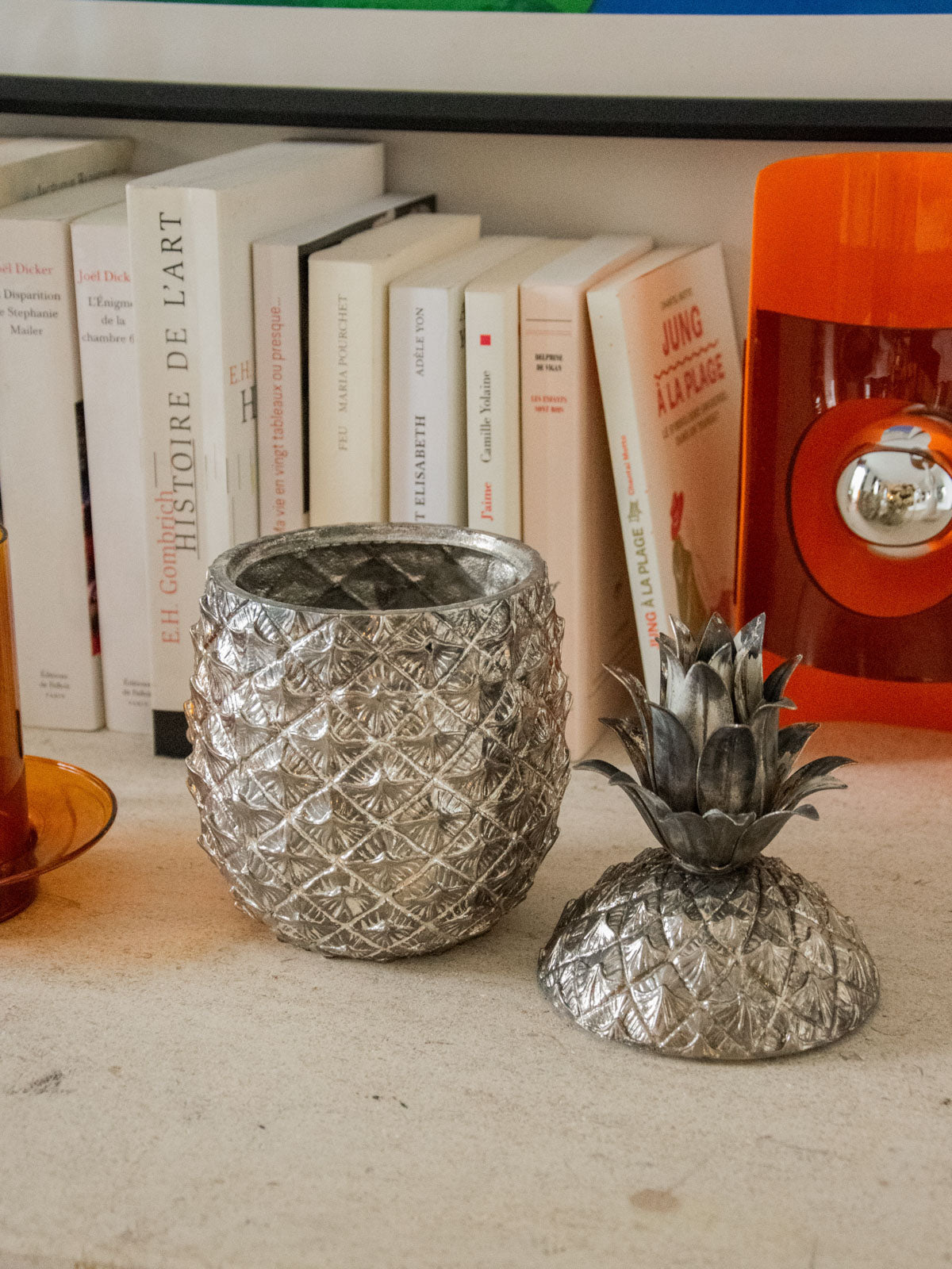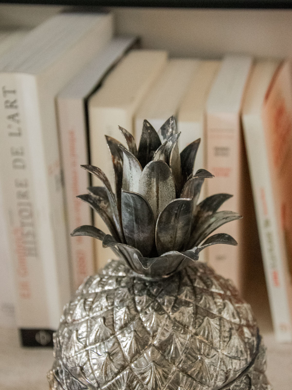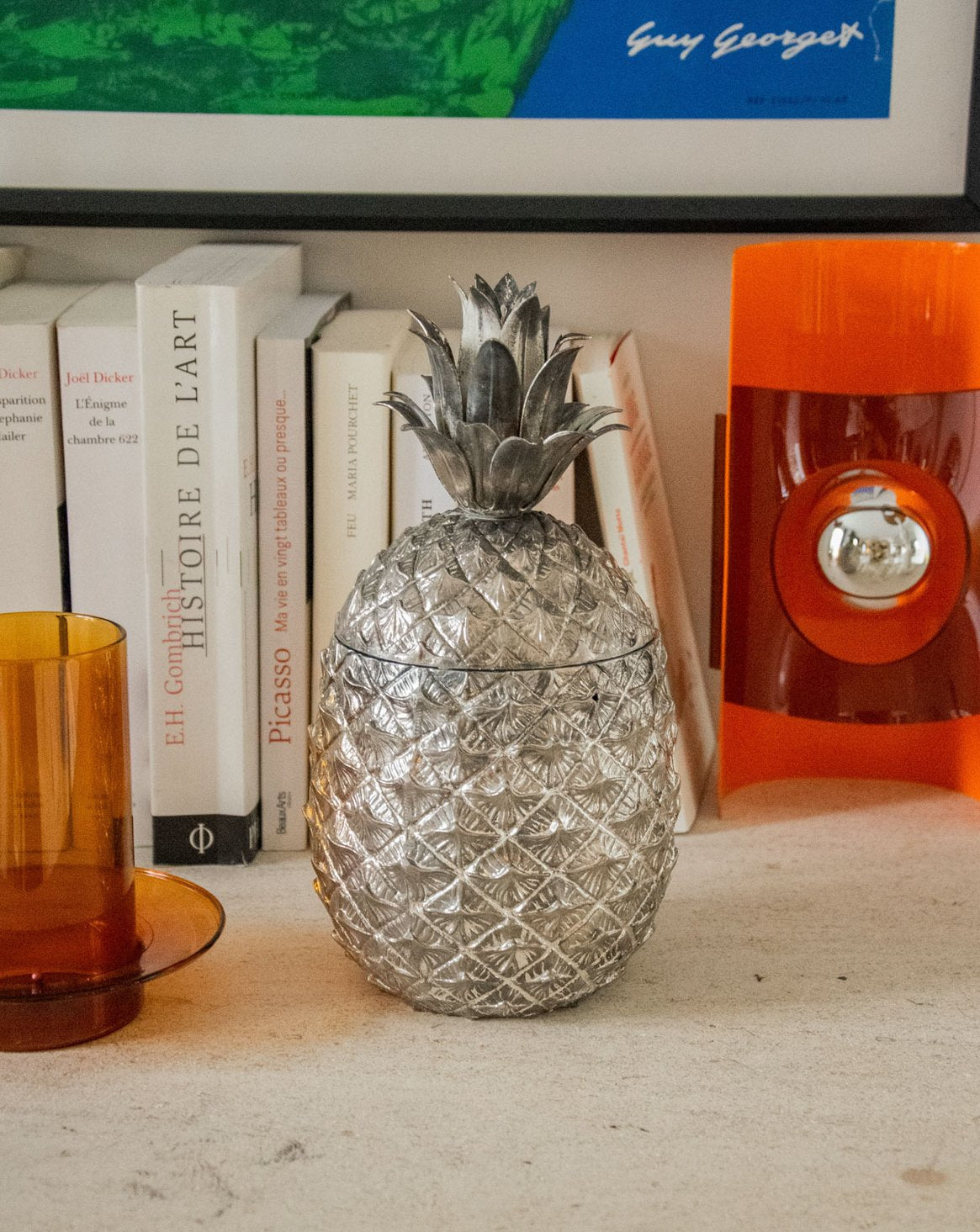 Sublimez vos moments de service avec ce seau à glaçons en argent en forme d'ananas, alliant fantaisie sculpturale et élégance discrète. Son format permet de conserver une quantité idéale de glaçons pour soirées et cocktails, tandis que la matière argentée réfléchit la lumière et habille la table d'une note raffinée. Pièce signée Mauro Manetti, elle s'intègre aussi bien à un bar contemporain qu'à une mise en scène vintage, apportant caractère et convivialité.