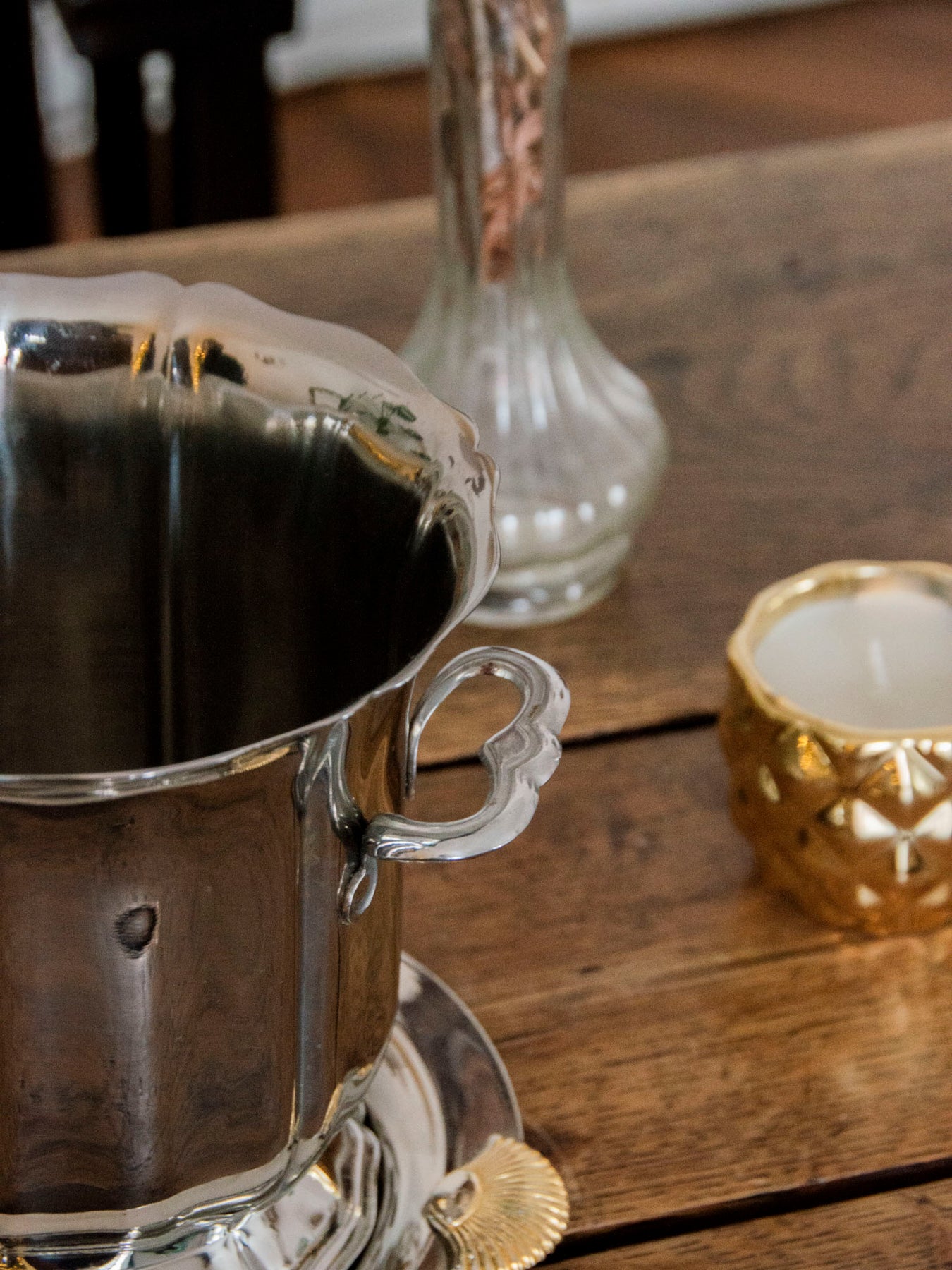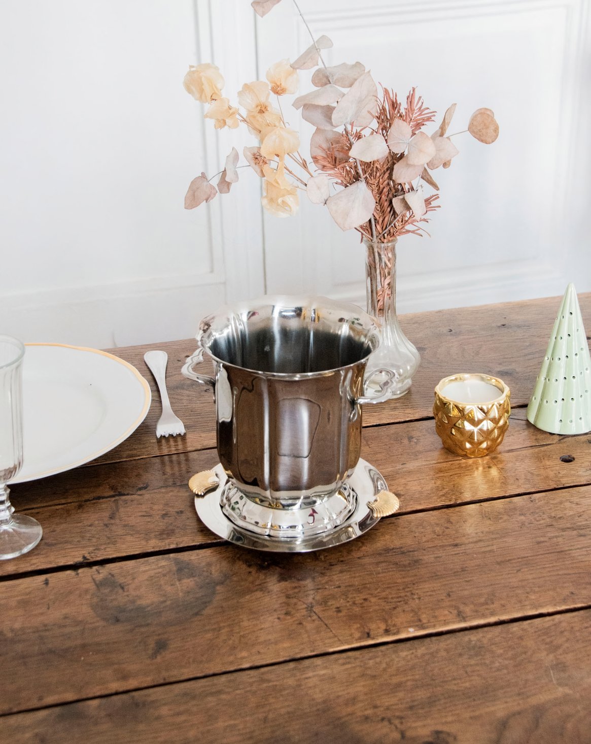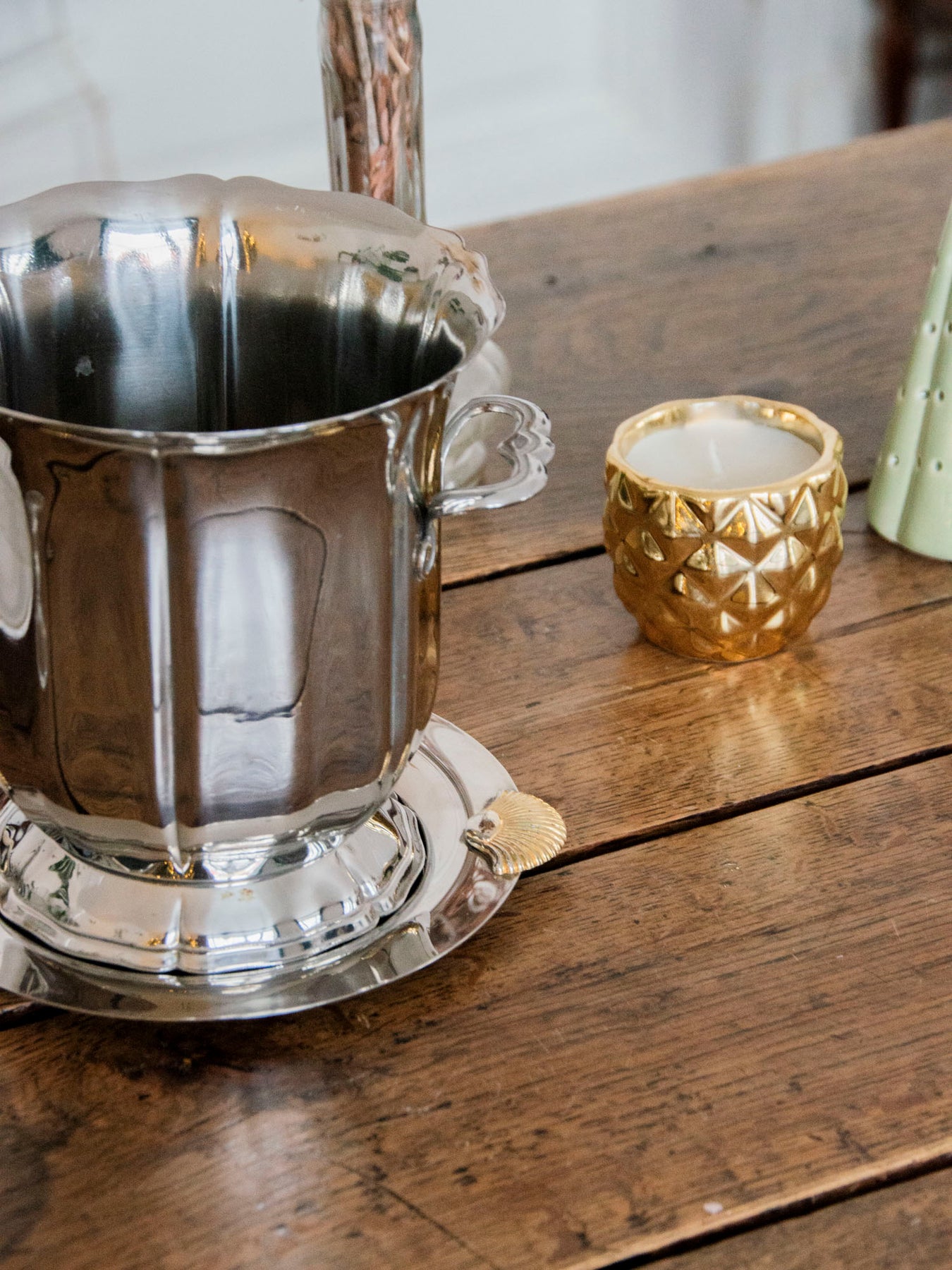 Add a touch of elegance with this compact stainless steel champagne bucket, designed to blend discreetly into a table or bar. Perfect for keeping a bottle chilled, its manageable size and small handles allow for easy handling and refined serving. Its polished steel creates a sleek, contemporary silhouette, ideal for an intimate dinner or a casual gathering. Practical and durable, it's perfect for everyday use without cluttering your space. Sold without the small plate underneath.