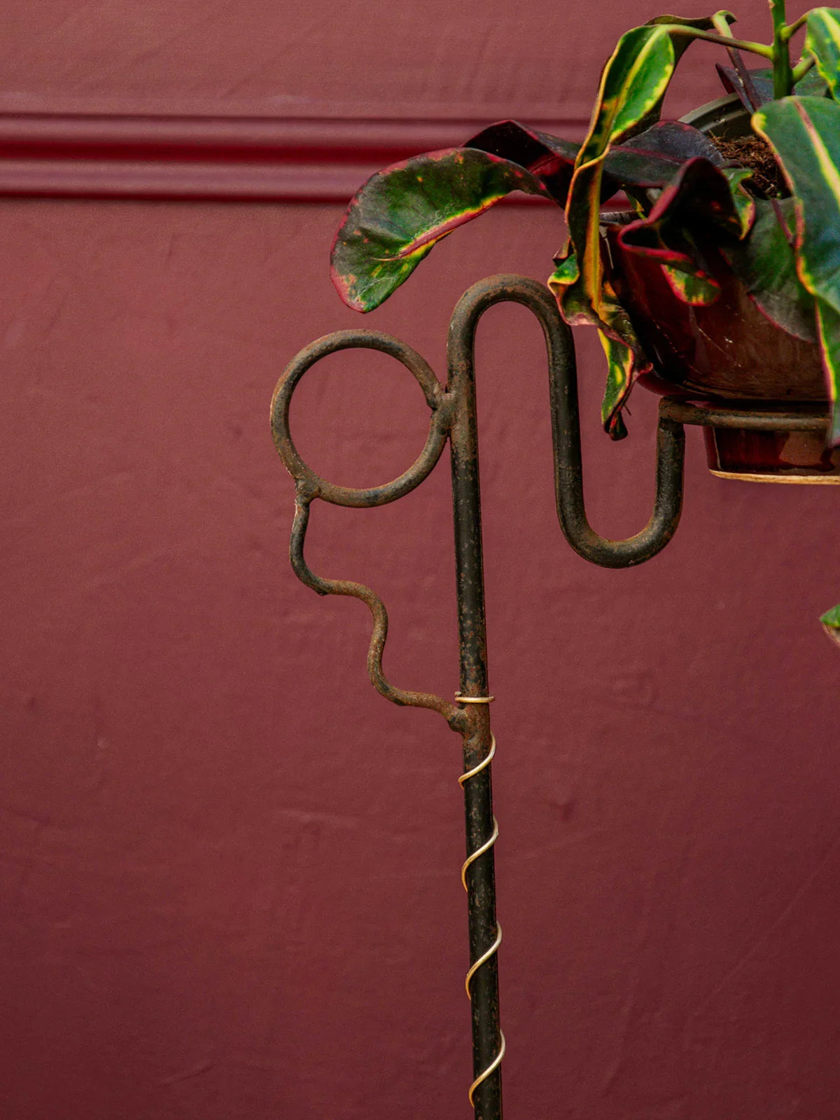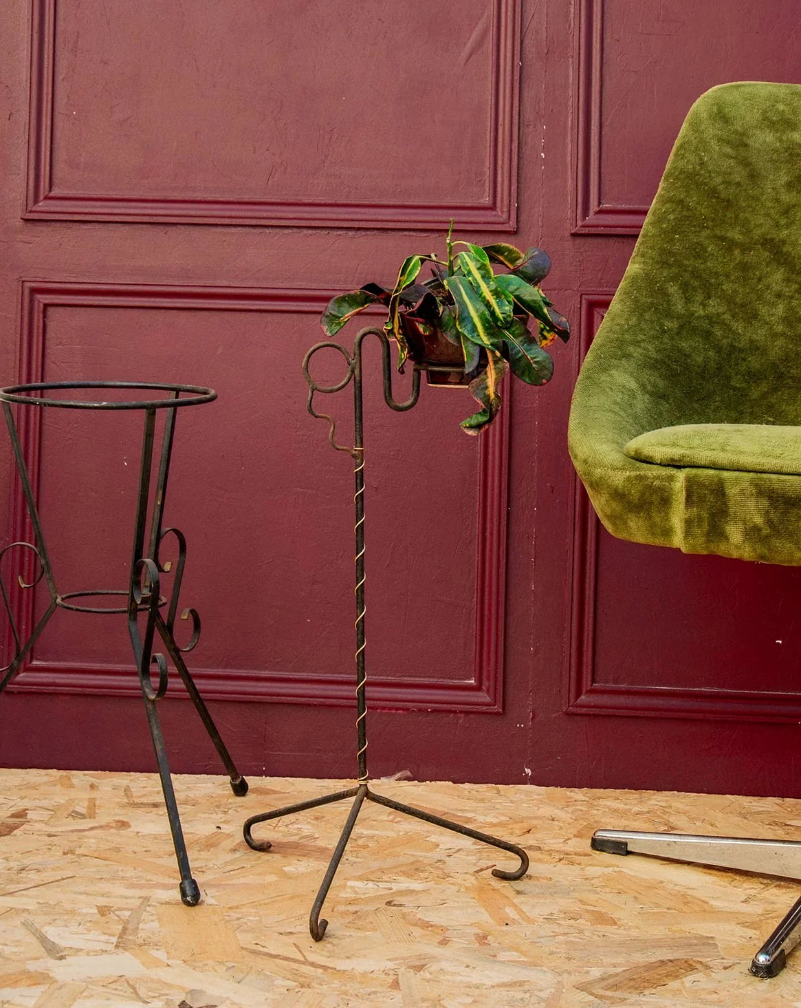 Add a touch of country elegance to your home with this timeless wrought iron plant stand. Its finish, punctuated by small rust marks, gives it an authentic, characterful look, perfect for showcasing your plants in a poetic way. Sold without a pot, it blends easily into any decor and becomes a truly unique decorative piece. A piece full of personality to make your green space shine.