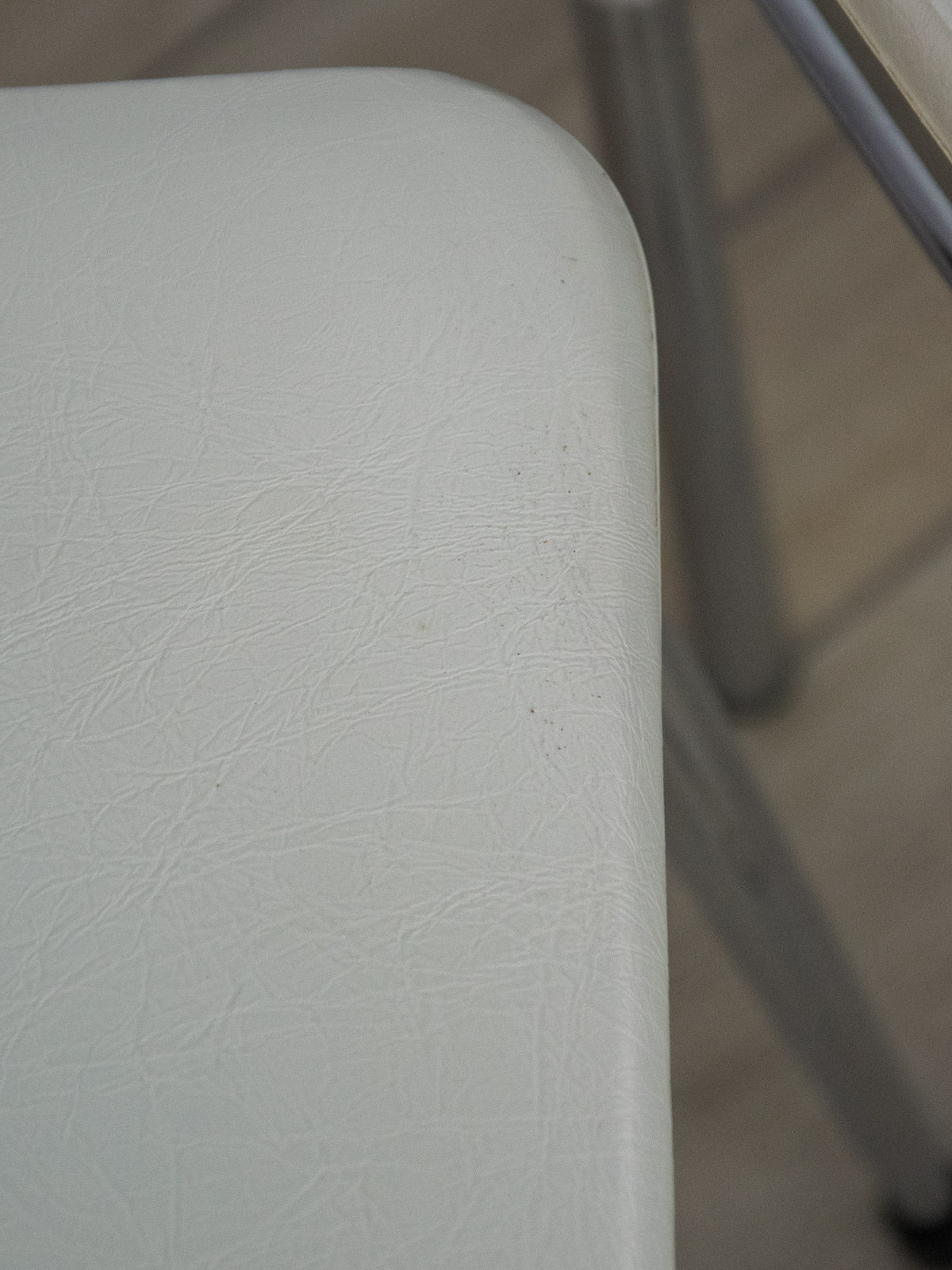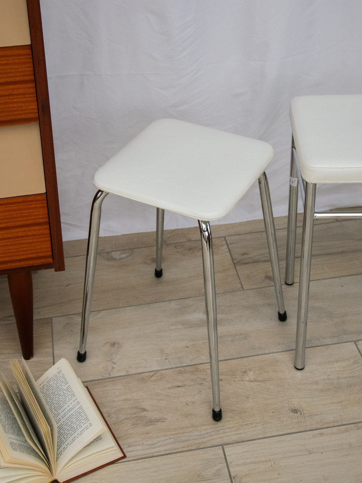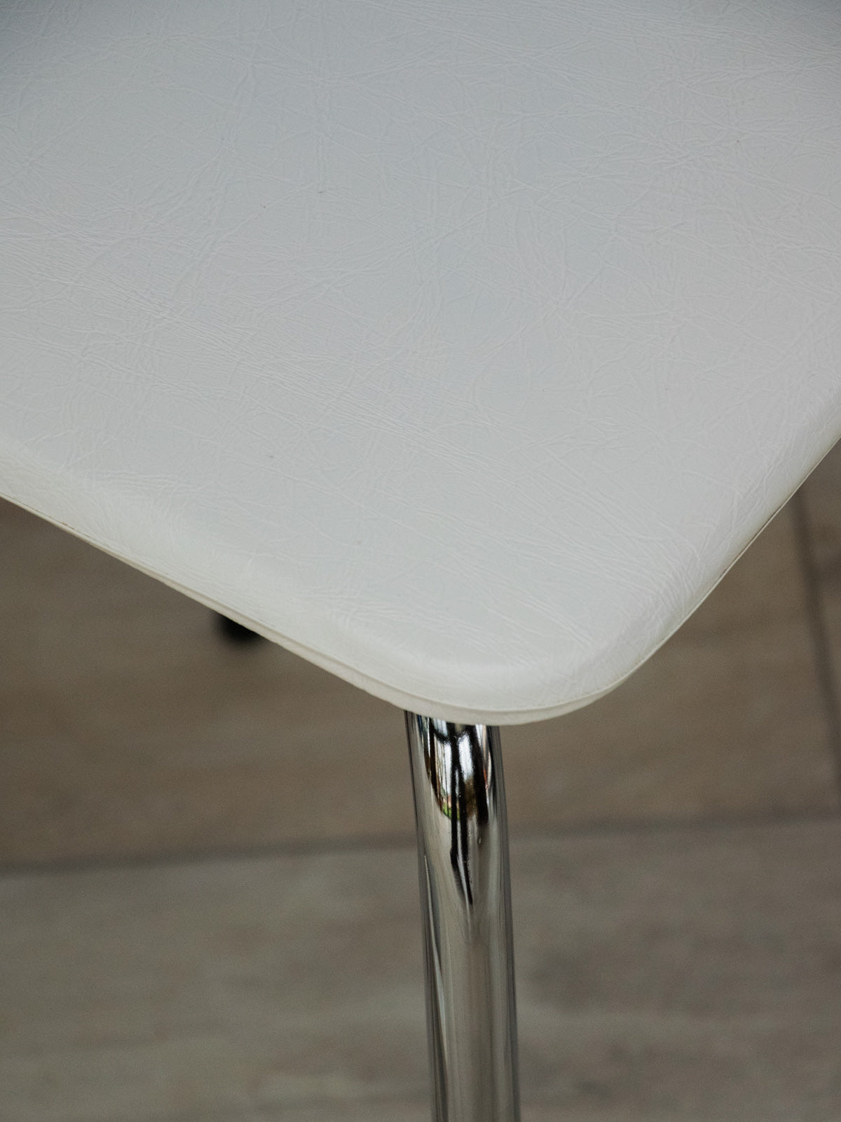 Choose this stool with its leather-effect vinyl seat and chrome base, which combines a modern look with an easy-care finish. The comfortable seat invites relaxation, while the chrome base adds a bright and graphic touch, ideal for a counter or contemporary bar area. Its compact size makes it versatile, fitting just as well in a kitchen as in a bistro. In excellent condition, it brings understated elegance to your interior.