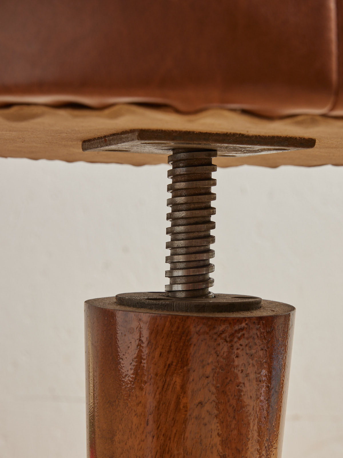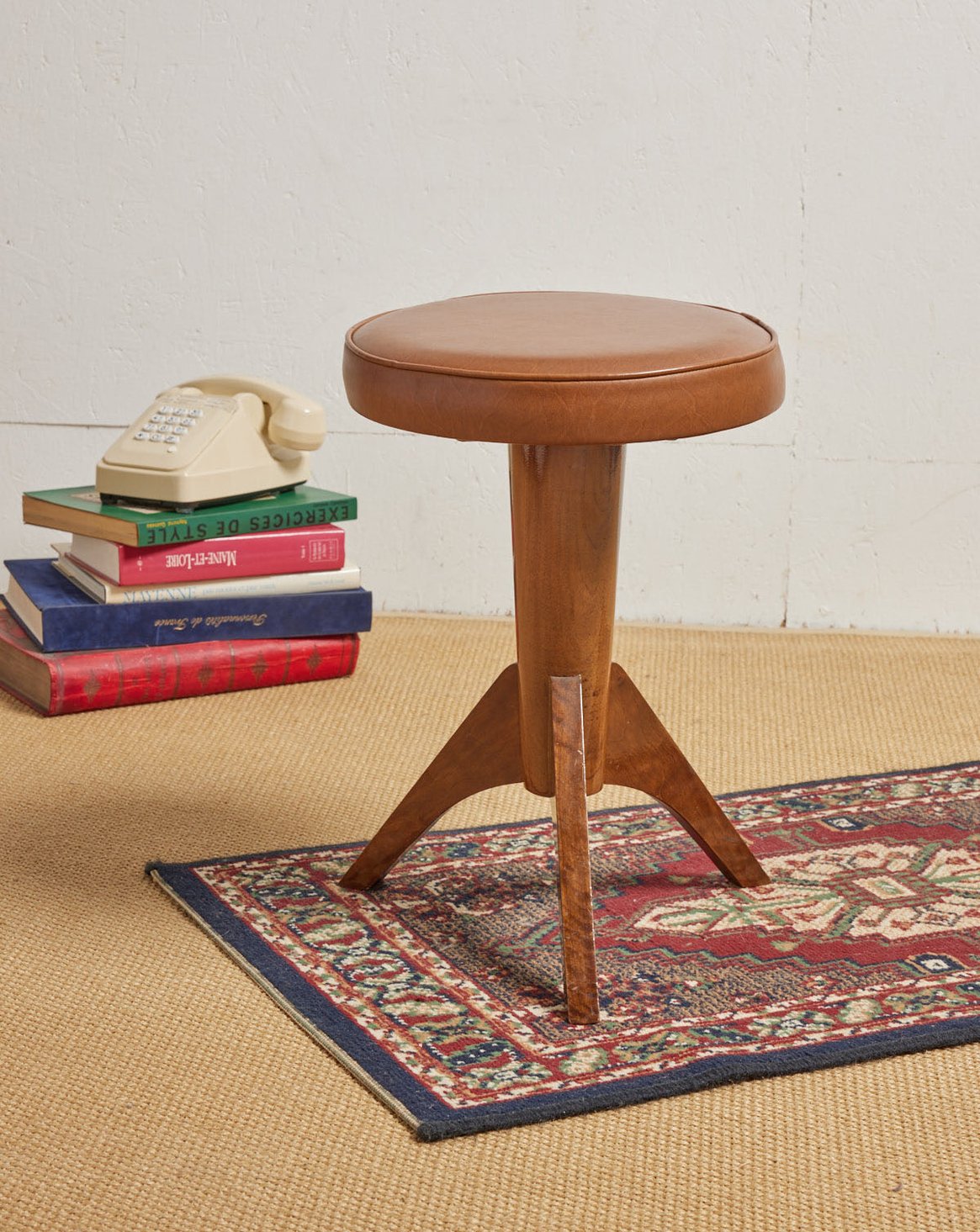 Choose this wooden piano stool with its tripod base and brown leather seat, combining understated elegance with comfort. Its compact and stable silhouette frees up space while offering a firm seat suitable for playing or working. The patinated leather and the warmth of the wood create a welcoming and timeless look, perfect for a music corner, living room, or creative studio.
