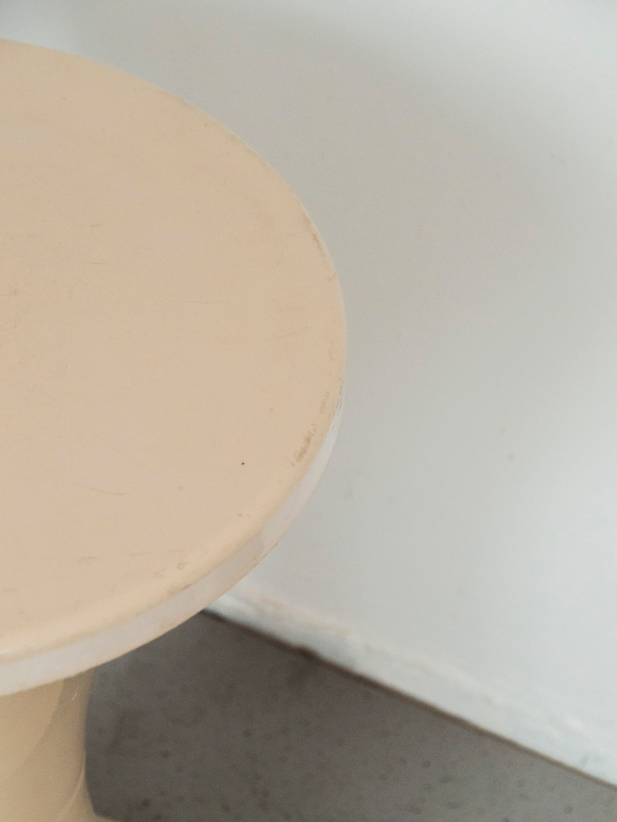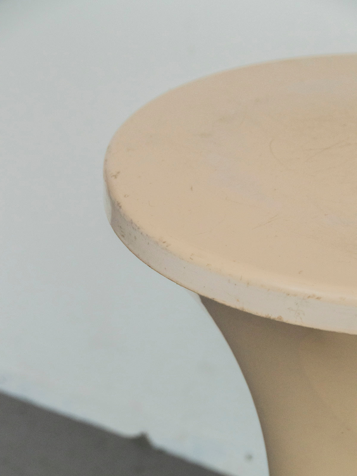 Choose the Tam Tam beige stool, with its clean, portable design. It's collapsible and made from a lightweight, easy-care material. Its comfortable seat height and compact diameter make it a discreet seat that fits easily under a table, around a kitchen island, or in a reading nook, adding a warm and subtle touch. Lightweight and practical, it encourages everyday conviviality. Some signs of wear.