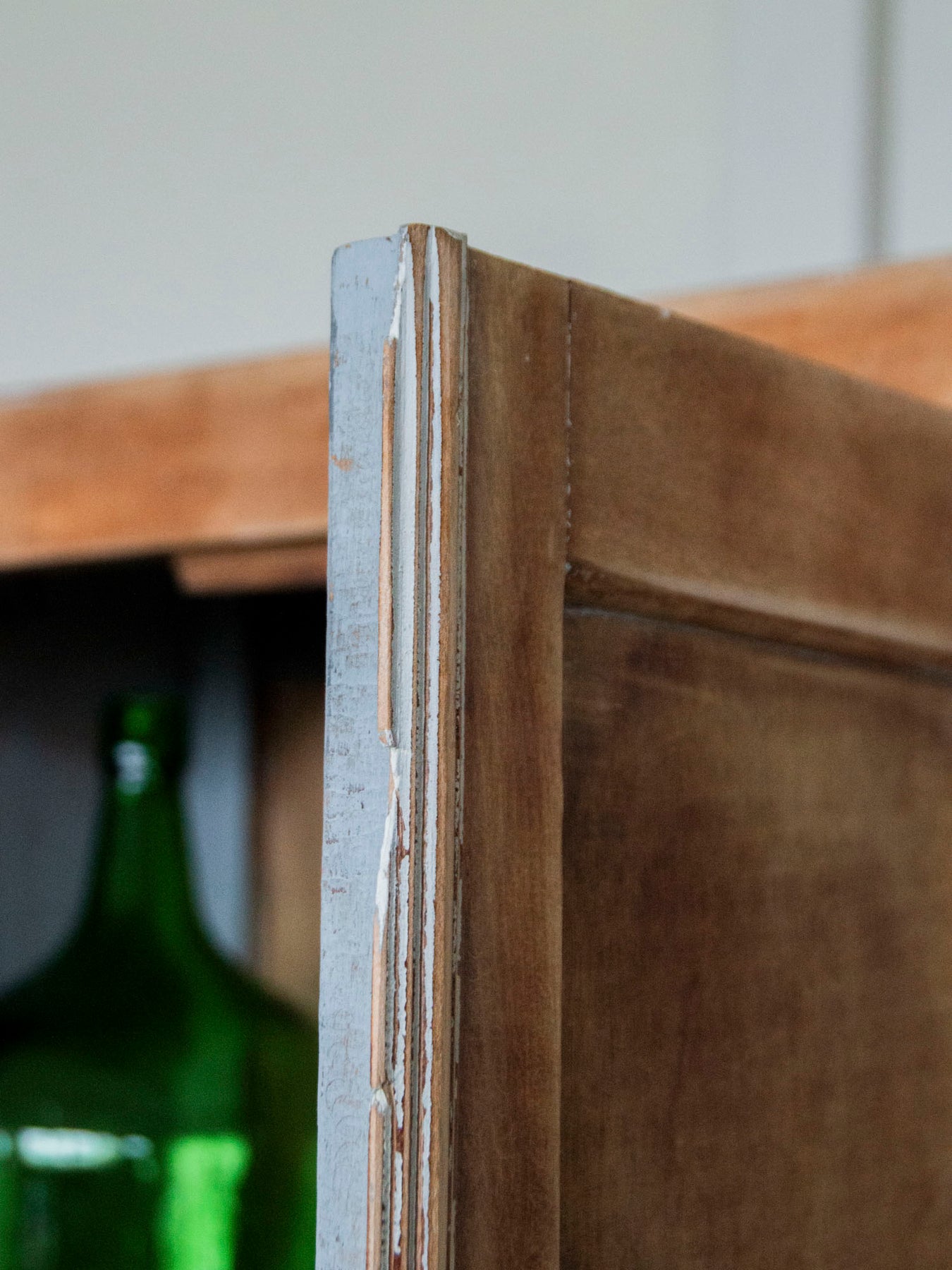 Discover this Parisian wardrobe in light, patinated wood, whose delicate appearance evokes the understated charm of Haussmannian interiors. Its structured verticality accommodates four interior shelves offering organized storage for linens, dishes, or accessories, while the flower-shaped handle adds a touch of poetic refinement. Ideal for optimizing a hallway, bathroom, or bedroom, it creates a bright and serene atmosphere, combining functionality with simple elegance.