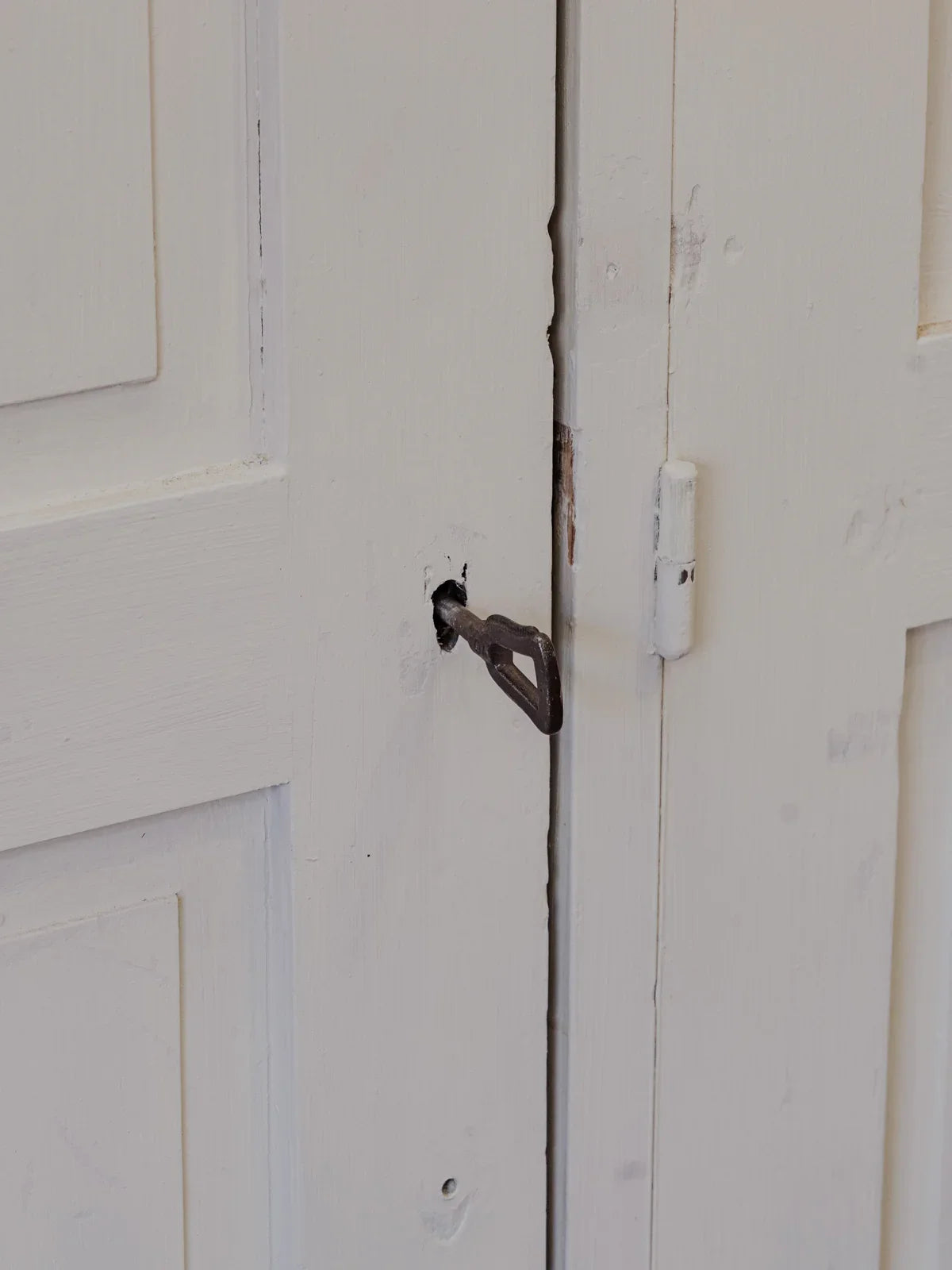 Give your home a touch of understated elegance with this large, white-painted wooden wardrobe. Its two doors on the right conceal a practical hanging space with a handle, while the left side features four shelves and a drawer for organized storage. A niche in the upper right corner provides additional storage. The key and functional lock add a touch of authenticity and security. Its generous capacity and proportions make it a perfect fit for a bedroom or entryway.