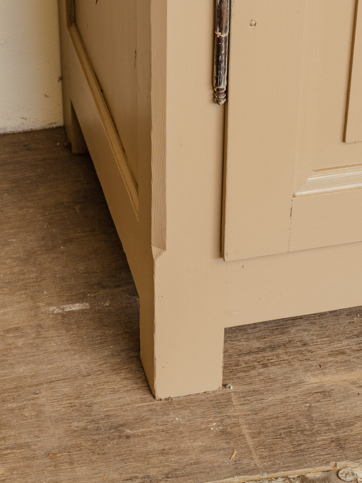 Bring a touch of rustic charm to your home with this antique wardrobe, carefully sanded and repainted in a beautiful beige that highlights the wood's patina. Four adjustable shelves offer ample storage for dishes, linens, or decorative items, while its clean lines blend seamlessly into a kitchen, dining room, or bedroom. Delivered with its key, it combines practicality with understated charm. Subtle signs of age only add to its appeal.