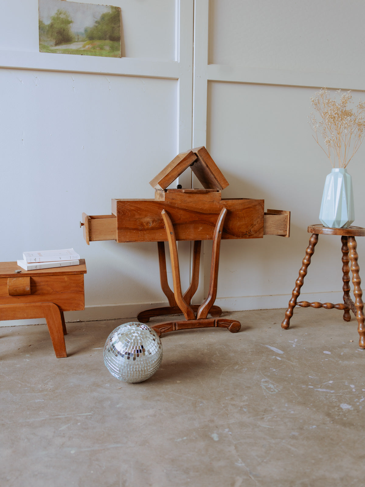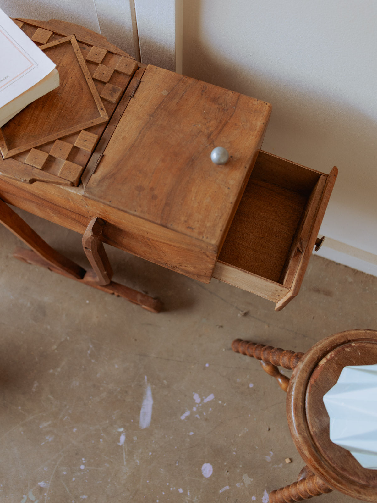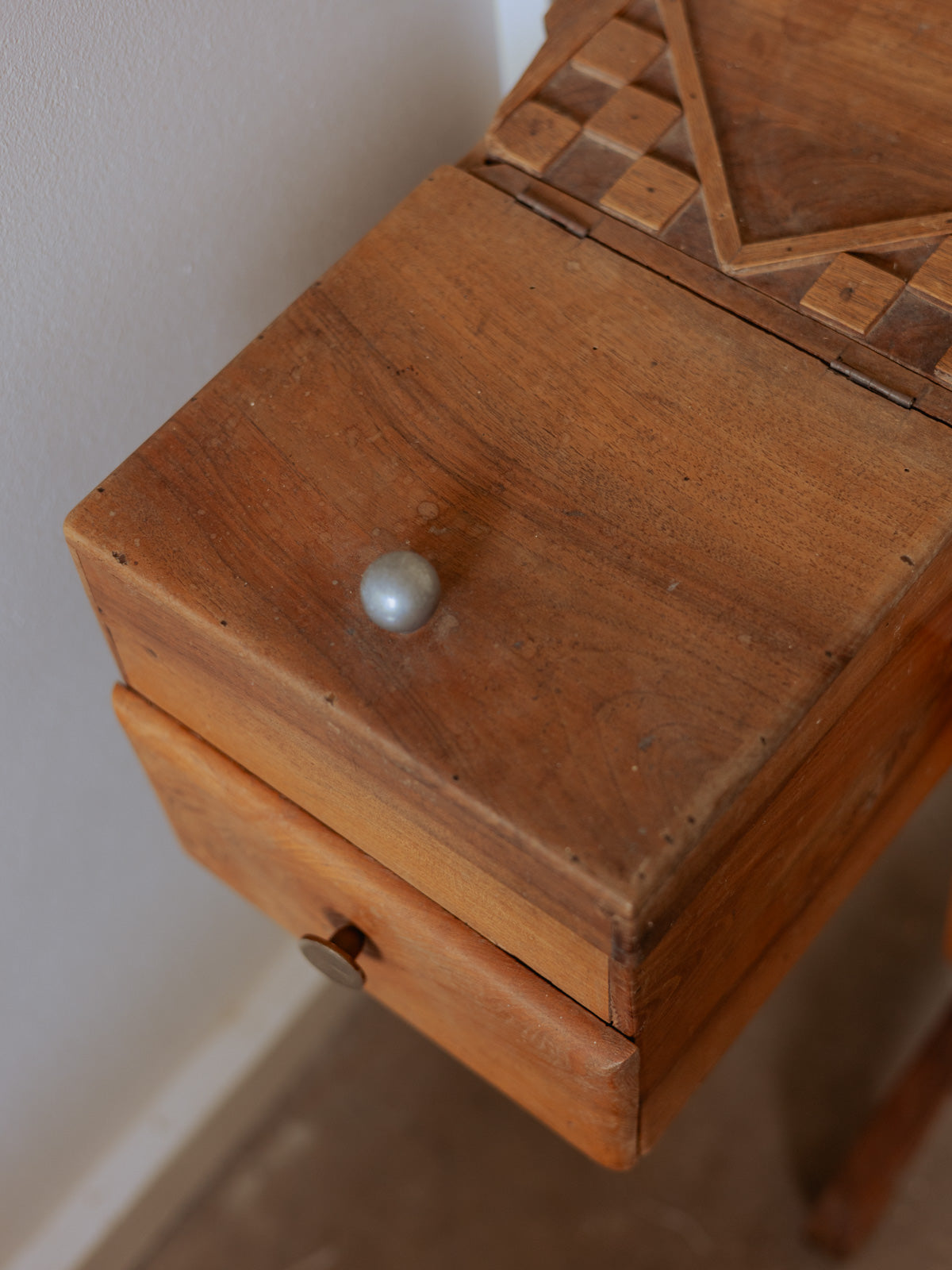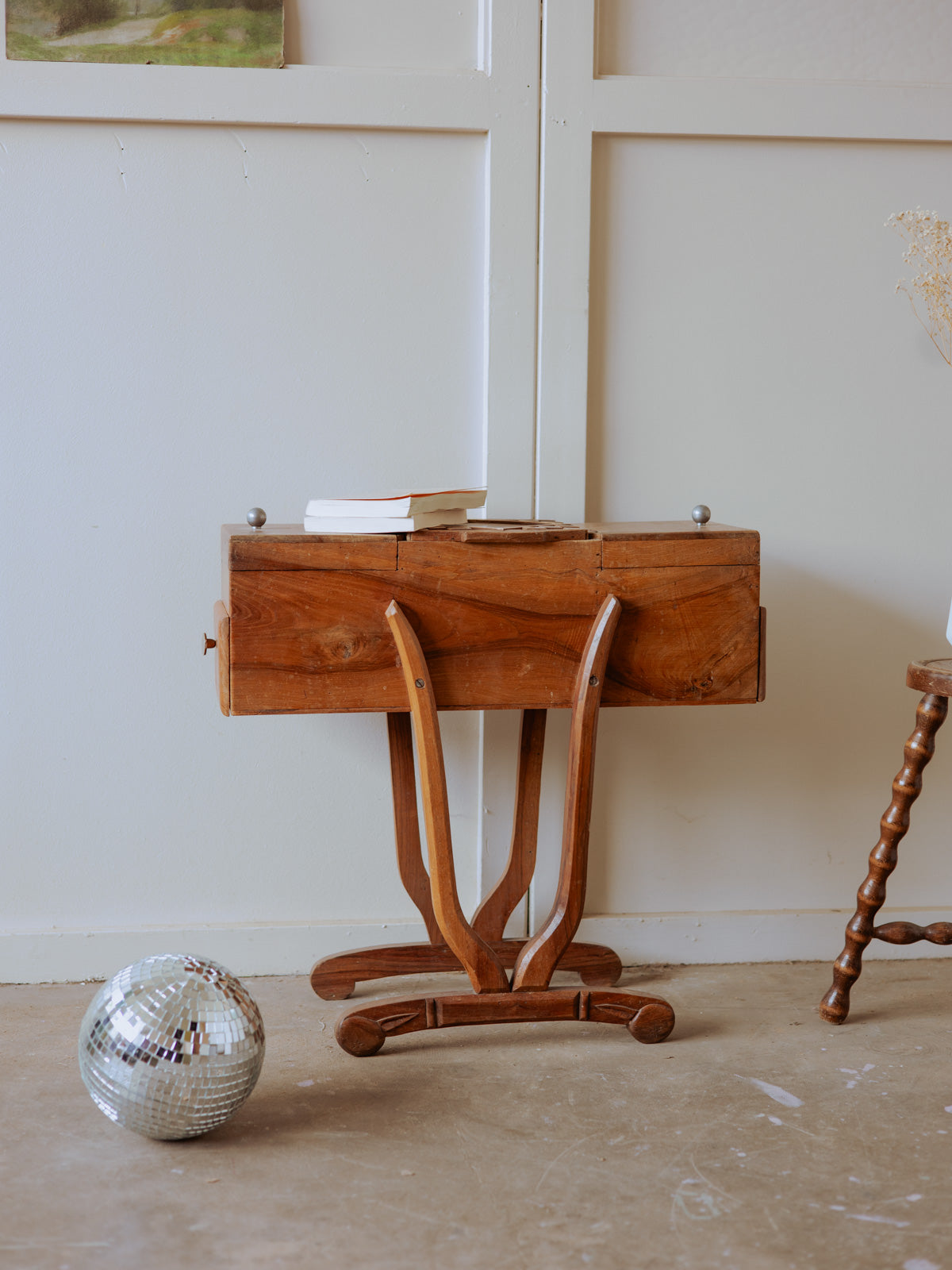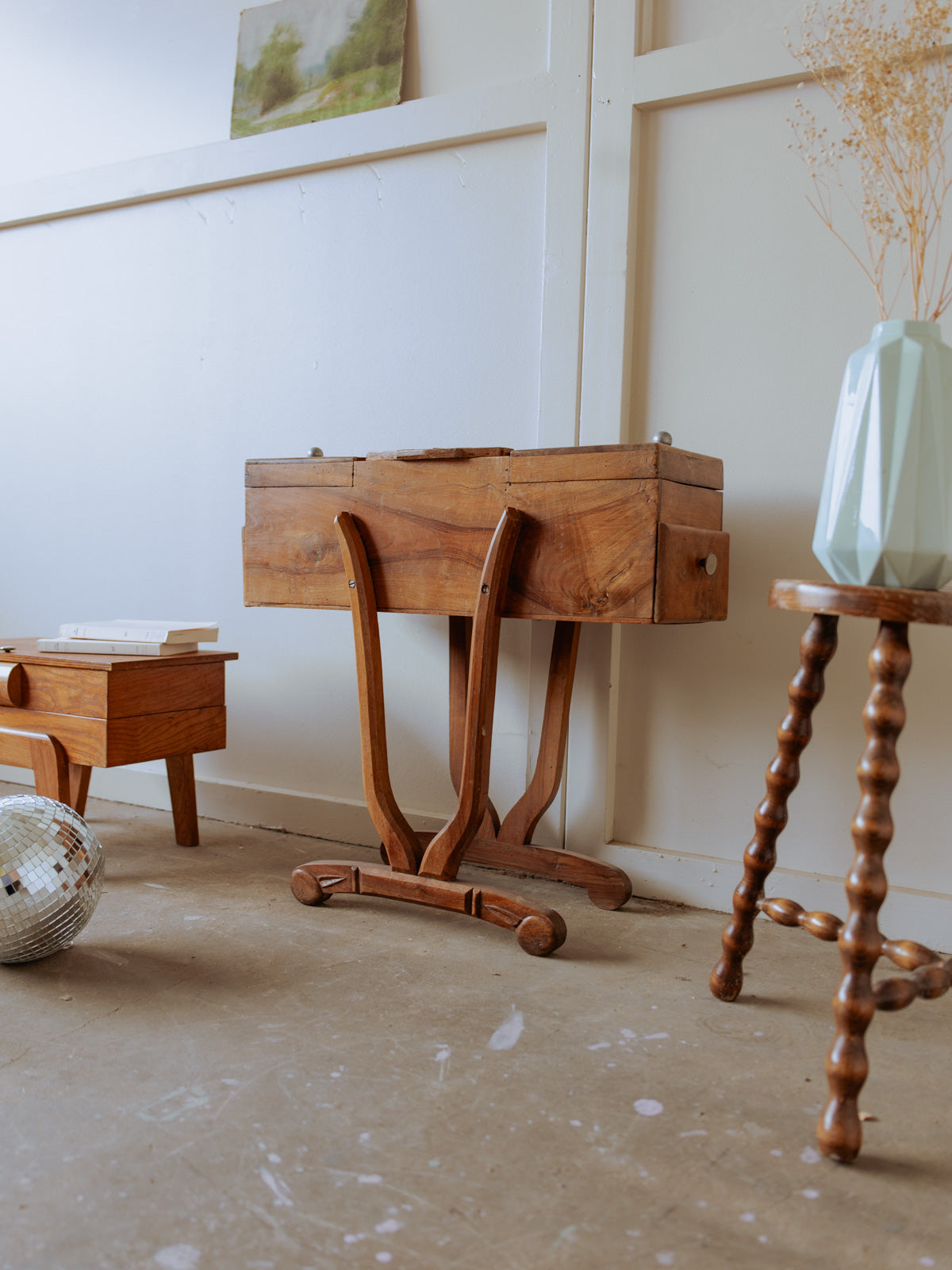 Découvrez cette travailleuse en bois grand format, au grain chaleureux et aux lignes sobres qui invitent au travail artisanal. Ses compartiments généreux et son agencement ingénieux permettent d'organiser fils, aiguilles et accessoires de couture autant que les fournitures de loisirs créatifs, offrant une capacité adaptée à un atelier domestique. Posée sur une table ou ouverte lors d'une séance de couture, elle diffuse une ambiance calme et invitante, mêlant praticité et charme d'atelier.