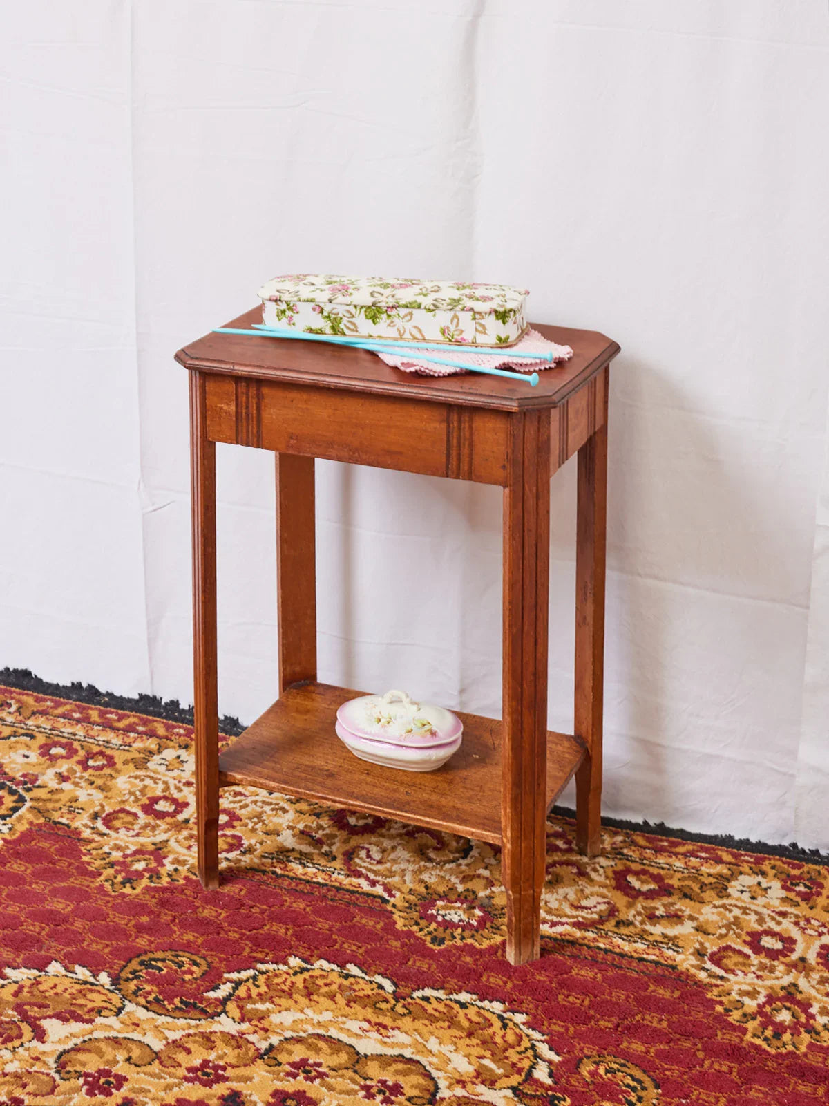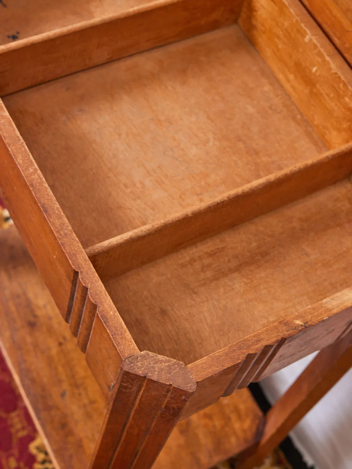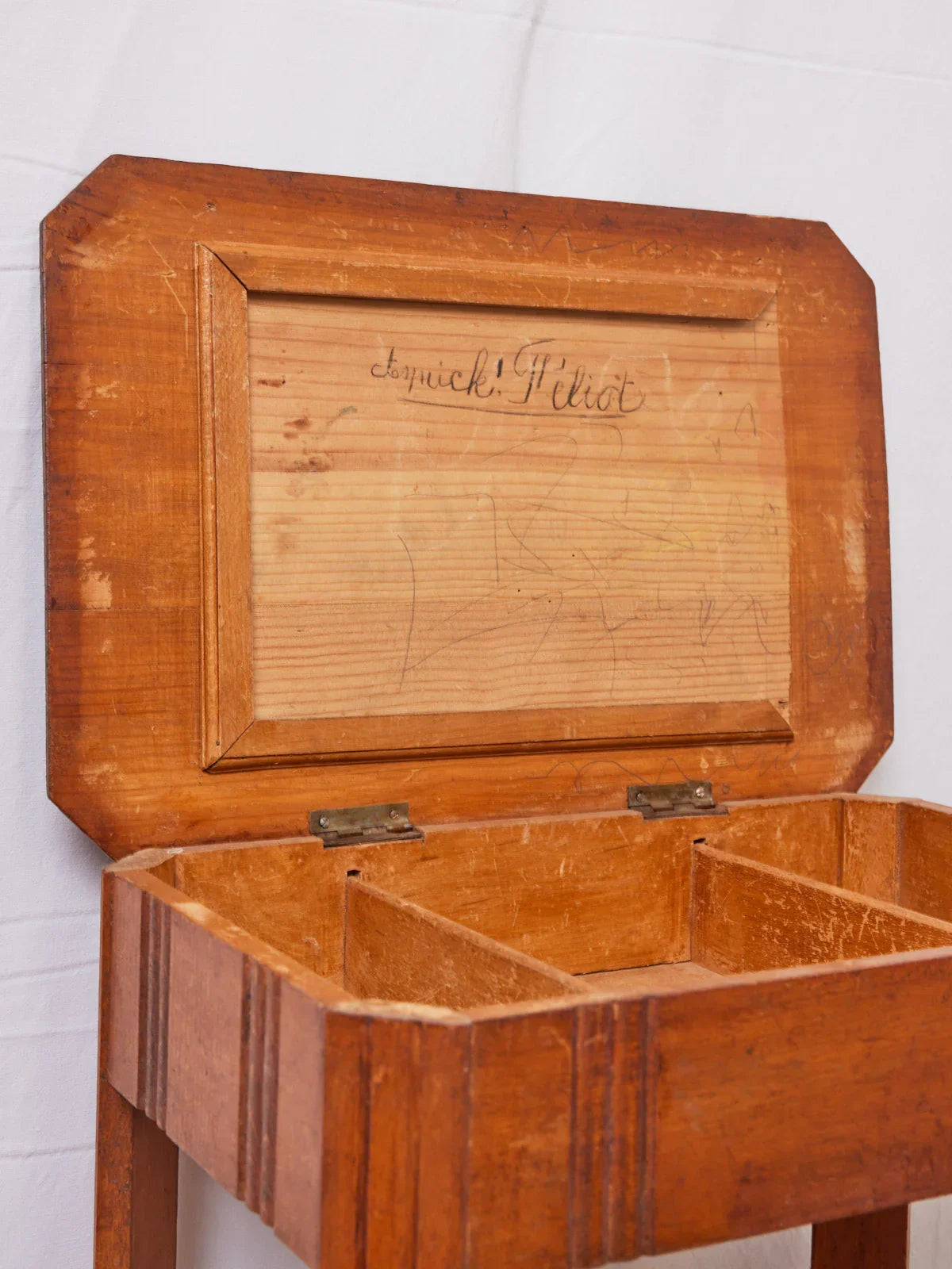 Enhance your creative space with this Art Deco wooden work table, boasting a graphic character and elegant lines. Its silhouette evokes a refined era while remaining perfectly suited to contemporary interiors. The warm wooden structure offers neat storage for notions, threads, and small tools, ideal for a workshop or as an accent piece in a living room. Compact yet generously sized, it encourages discreet organization while adding a touch of retro chic to the room. The trim strip inside the cabinet needs to be reattached after installing a new mirror.
