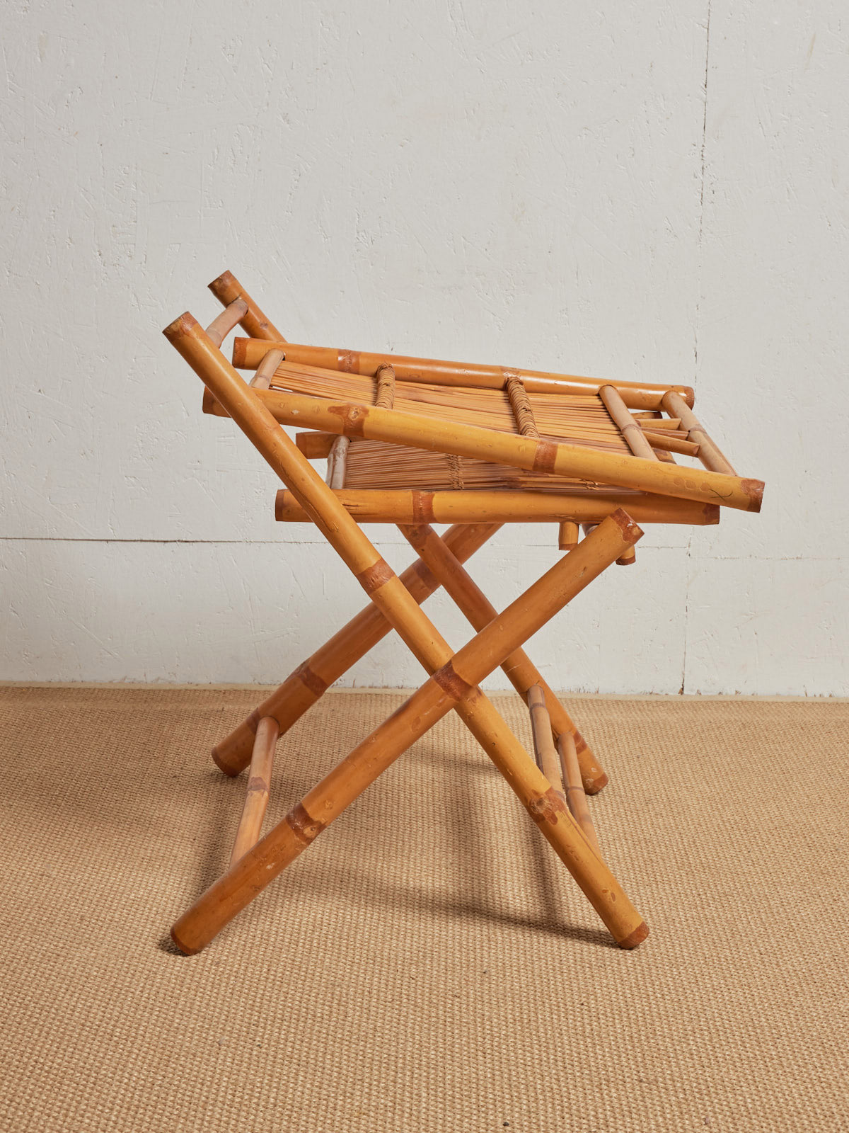 Choose this folding bamboo chair, which combines lightness and sturdiness with a sleek silhouette and natural legs. Its warm material brings an organic and sunny touch to a patio, a bohemian living room, or a dining area, while its folding mechanism allows for compact storage when space is limited. The comfortable seat and balanced proportions offer an inviting place for guests and relaxed moments. Practical and stylish, it creates a convivial and portable atmosphere.