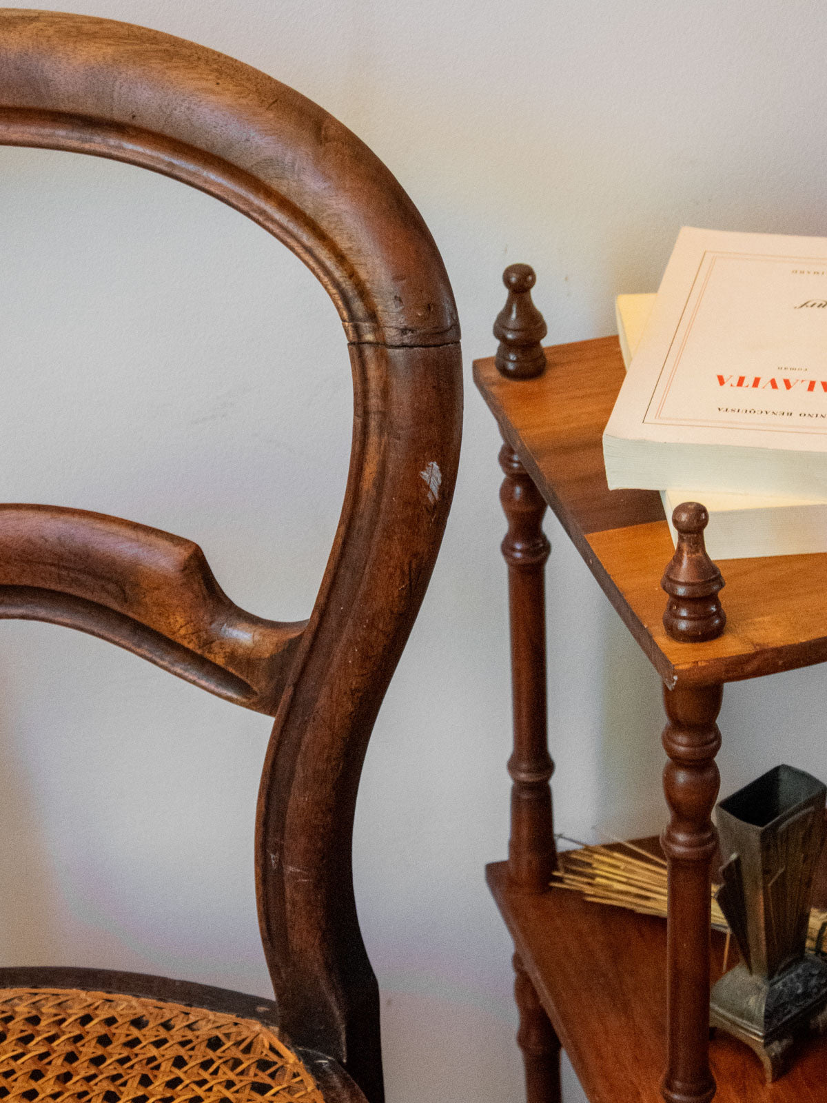 Embrace this antique chair in dark wood and caning, with its understated design and harmonious proportions that bring a touch of discreet elegance to your dining room or reading nook. The caned seat, combined with the wooden frame, offers natural comfort and a striking visual presence, ideal for blending classic and modern styles in your home. A few signs of wear only add to its authenticity.