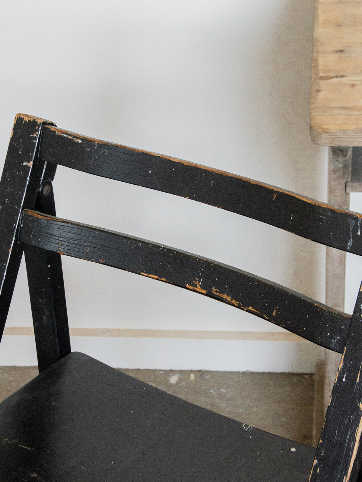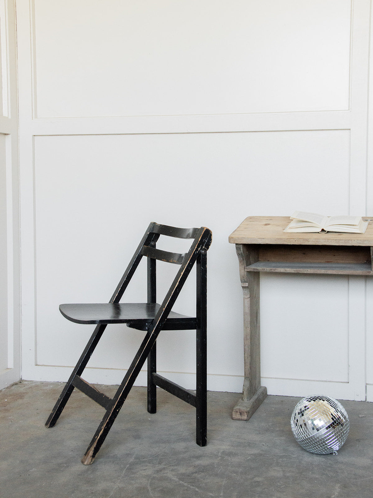 Invite this black wooden folding chair into your home. Its clean design and slender proportions make it a perfect fit for contemporary interiors. Practical and lightweight, it folds away easily to save space, making it ideal as a set of four for spontaneous meals or intimate patios. The seat and back offer simple comfort, while the black finish adds a touch of understated elegance. A versatile choice for small spaces and convivial gatherings.