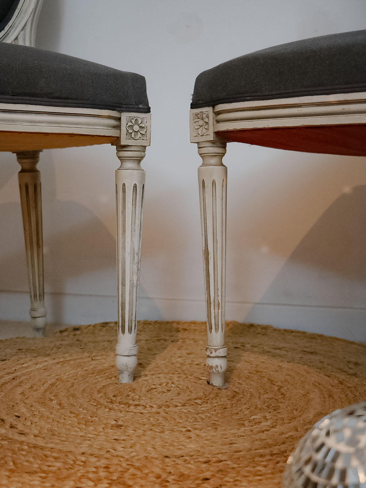 Adoptez cette paire de chaises médaillon de style Louis XVI, habillées d'un tissu gris et d'un bois beige patiné qui sublime une silhouette néoclassique. Le dossier rond et l'assise généreuse invitent à un confort élégant, parfait pour une salle à manger ou un coin lecture valorisé par des proportions harmonieuses. Leur présence apporte une touche raffinée et intemporelle à l'intérieur, entre charme ancien et douceur contemporaine. Traces d'usure discrètes aux pieds.