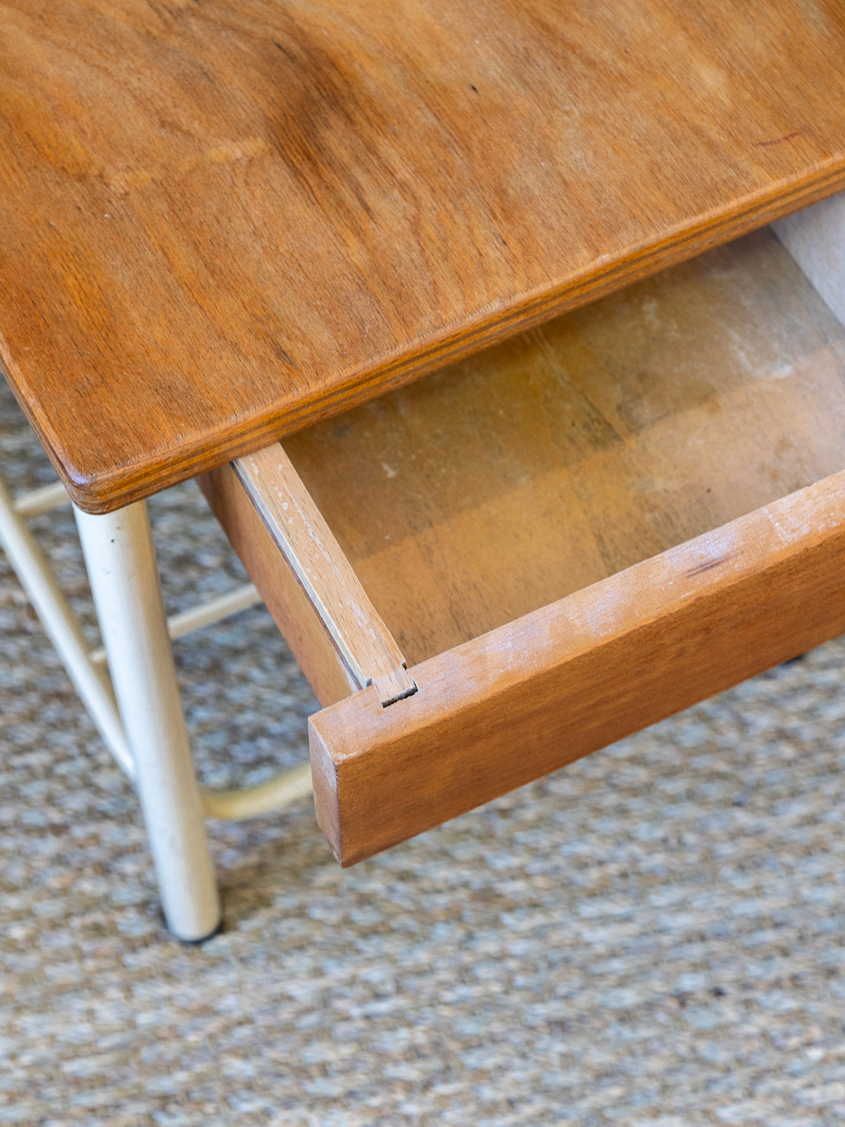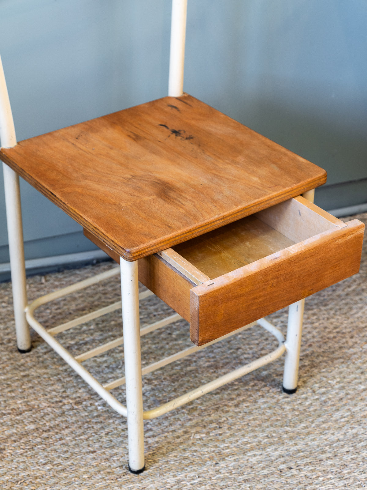 Discover the vintage 1950s boarding school bedside chair, a true retro-style treasure. Its clean lines and authentic look make it a must-have for adding a nostalgic touch to your home. Crafted from sturdy wood and finished with a delicate patina, this chair blends perfectly with a variety of decors, from vintage to contemporary. Ideal for complementing a bedroom or reading nook, it brilliantly combines comfort and aesthetics. Don't miss the opportunity to add this chic collector's item to your home!