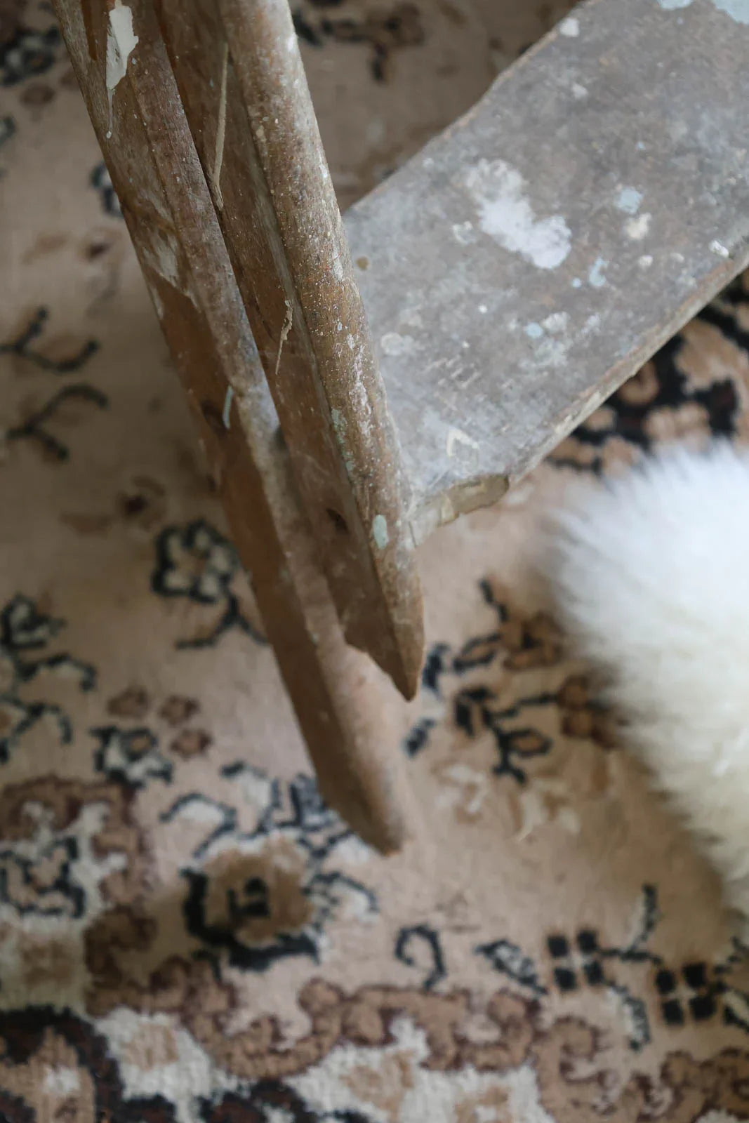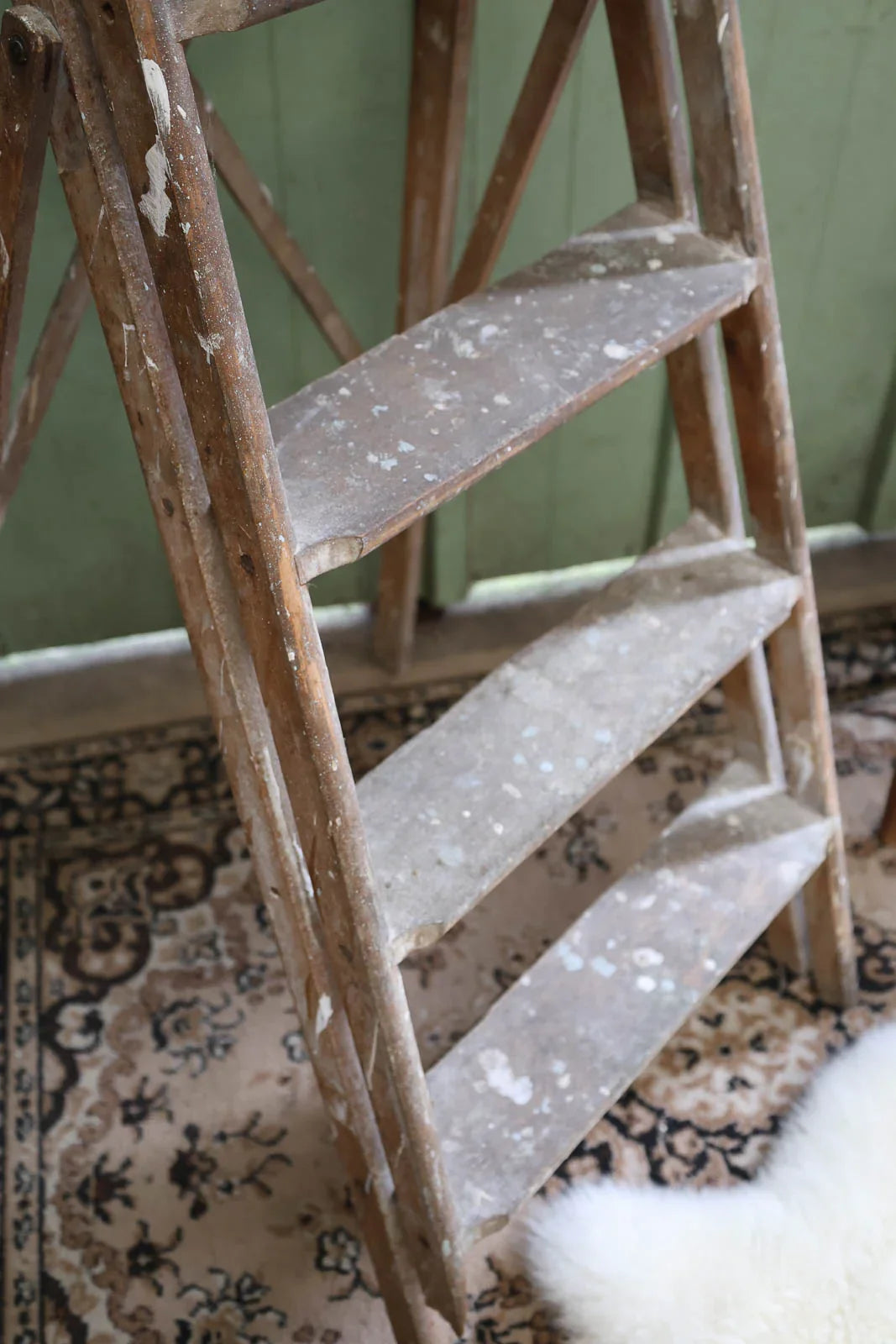 Embrace this charmingly utilitarian painter's stepladder, designed as a vertical display stand for your plants and decorative objects. Its wooden frame, marked with paint splatters, tells its story from the artist's studio, while its six steps offer multiple display levels and are the perfect size for a corner of your home. Ideal for displaying vases, books, and accessories, it brings a welcoming and graphic studio atmosphere. Minor paint marks and one damaged step bottom.
