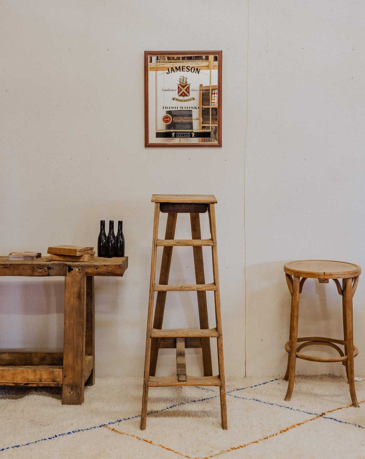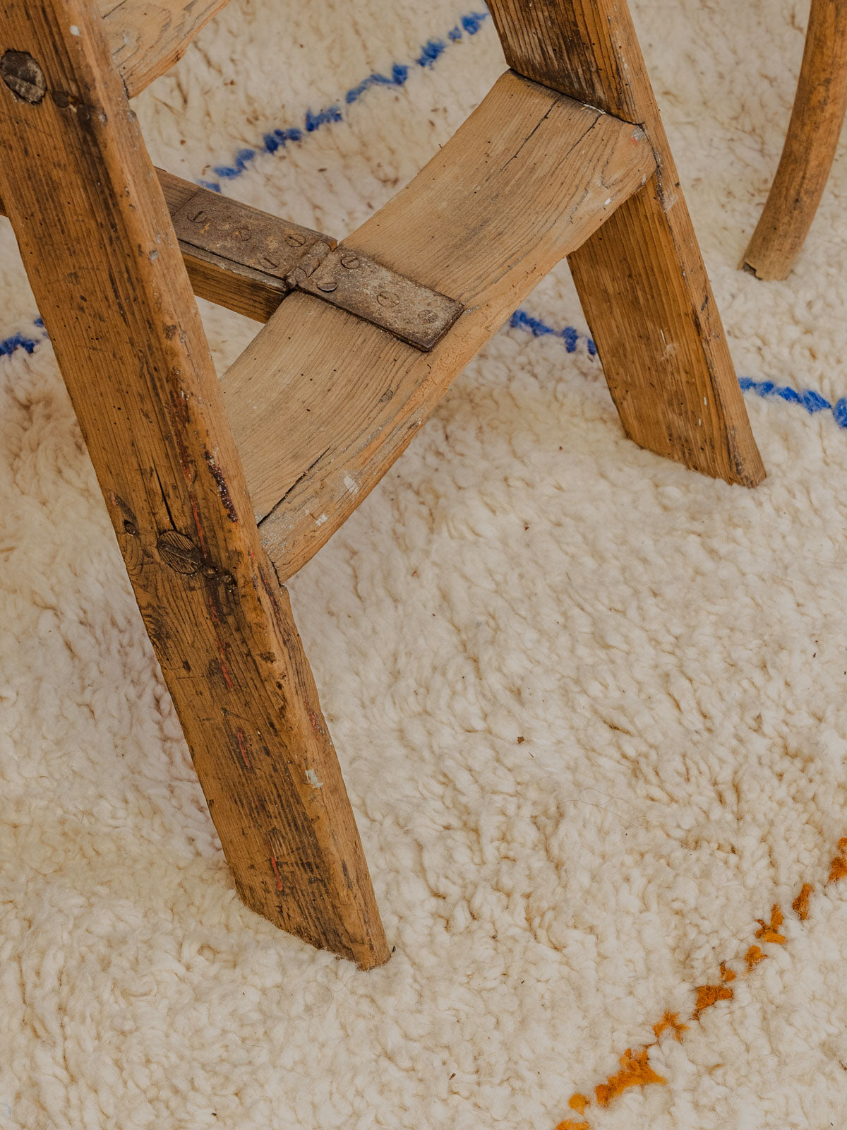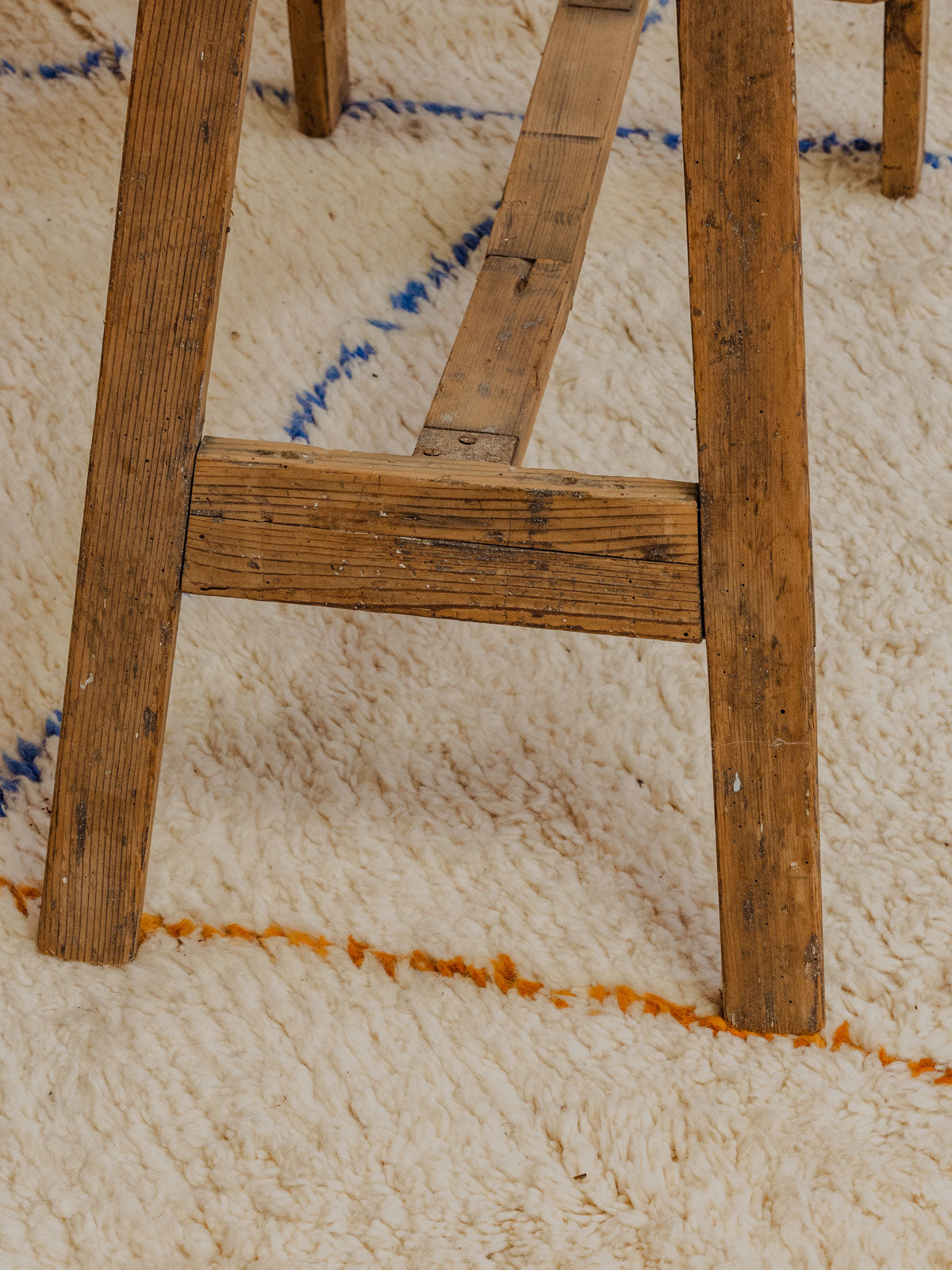 Bring home this antique four-step wooden step stool, a perfect blend of practicality and understated elegance. Its silhouette and small platform make it a convenient step stool for reaching a shelf, a plant stand, or a side table in an entryway or bathroom. The light, patinated wood creates a soft glow and a warm, rustic yet contemporary ambiance. Some signs of age are present.