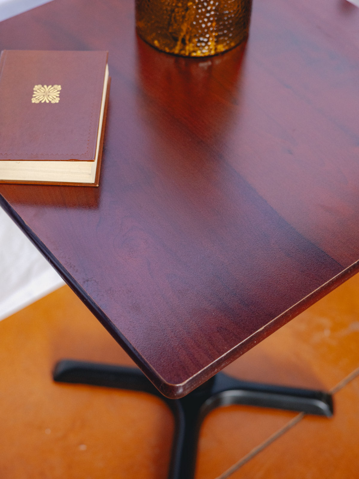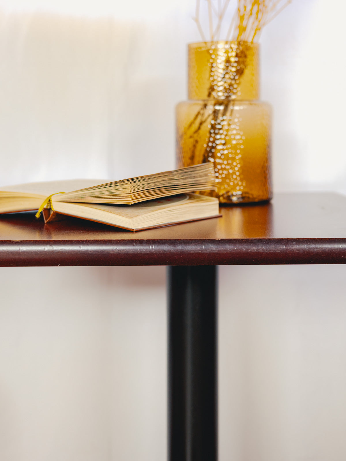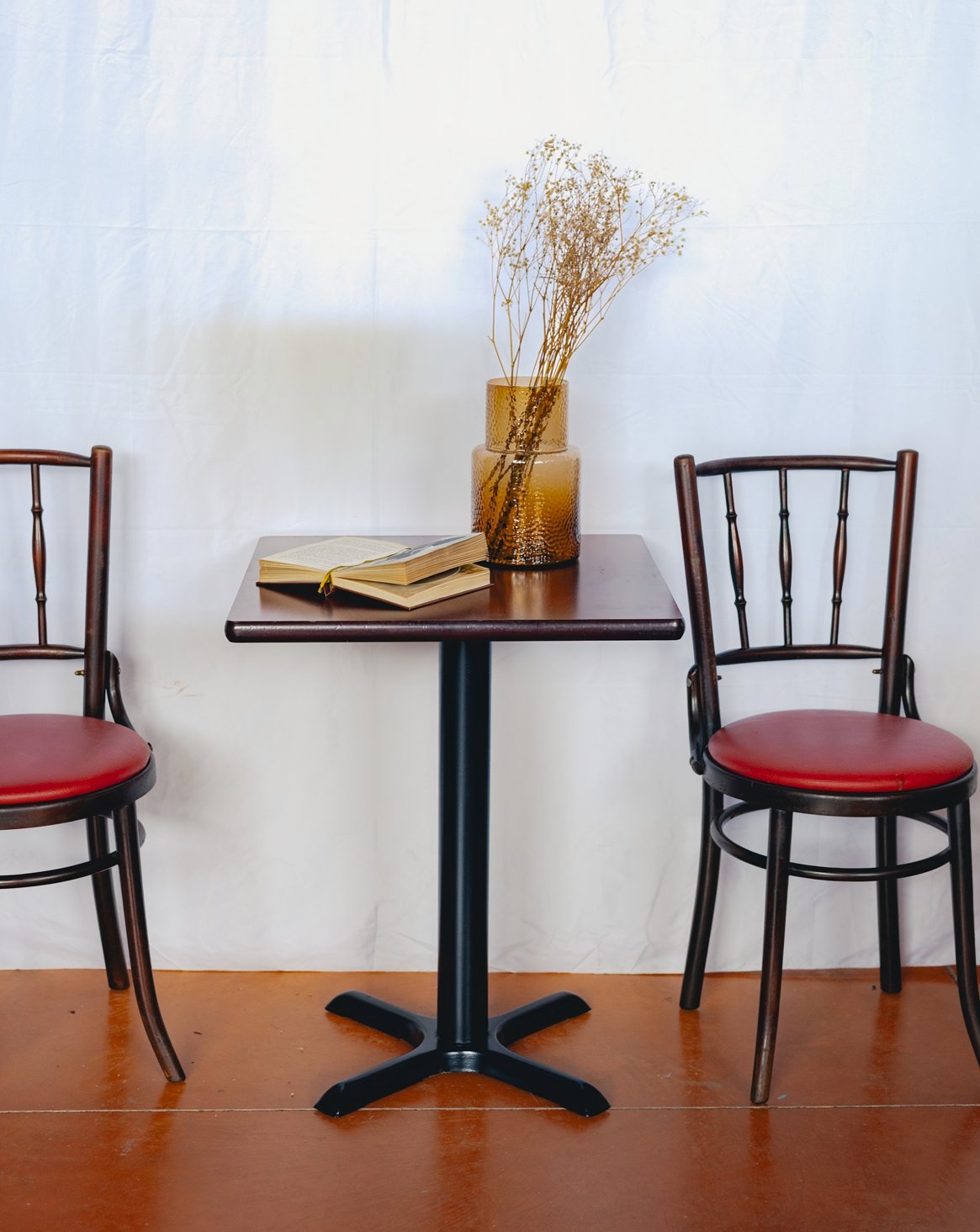 Add the Denise table to your interior, featuring a black star-shaped metal base and a plywood top covered with a mahogany-colored veneer. The wood veneer edge adds natural warmth and artisanal detail, while the contrast between the dark metal and the deep wood asserts a contemporary and refined style. Its compact proportions make it ideal for an intimate dining area for 2 to 4 guests, a desk, or as a side table, creating a warm and structured atmosphere.