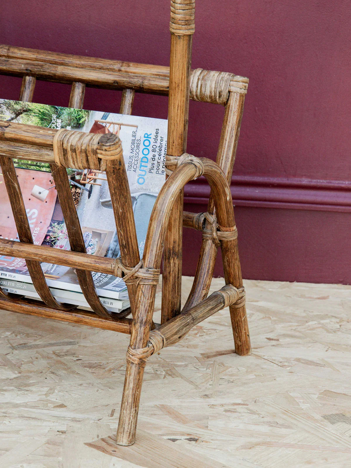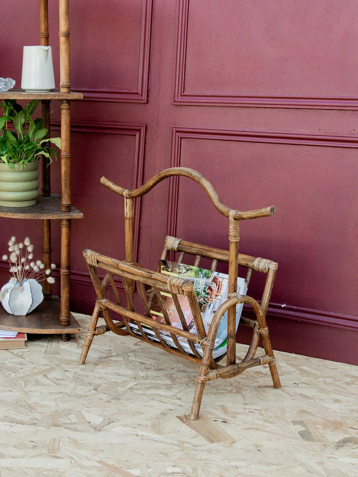 Bring a touch of elegance to your home with this uniquely designed rattan magazine rack. Its beautiful curves and large handle make it easy to access your favorite magazines while adding a touch of charm to your decor. It blends seamlessly into any room, combining practicality and aesthetics for style lovers.