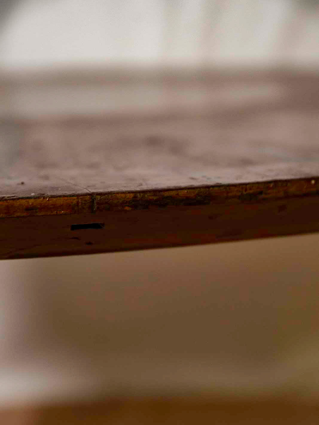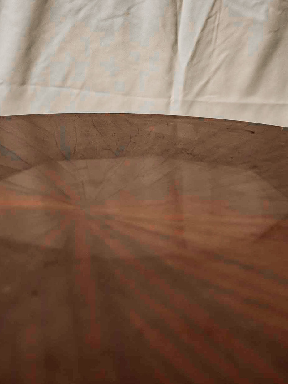 Table basse ronde des années 60 au design épuré, plateau verni et pieds compas en bois qui lui donnent une silhouette aérienne. Son format offre une surface suffisante pour poser livres, tasses ou une lampe sans encombrer l'espace, idéale pour un salon cosy. Le plateau verni raconte le temps et la matière, tandis que les pieds compas affinent l'ensemble et apportent une délicate légèreté. S'intègre aussi bien dans un intérieur scandinave que dans une ambiance contemporaine, pour une touche rétro discrète. Légères traces du temps qui participent à son charme. Quelques marques d'usage qui n'enlèvent rien à son charme.