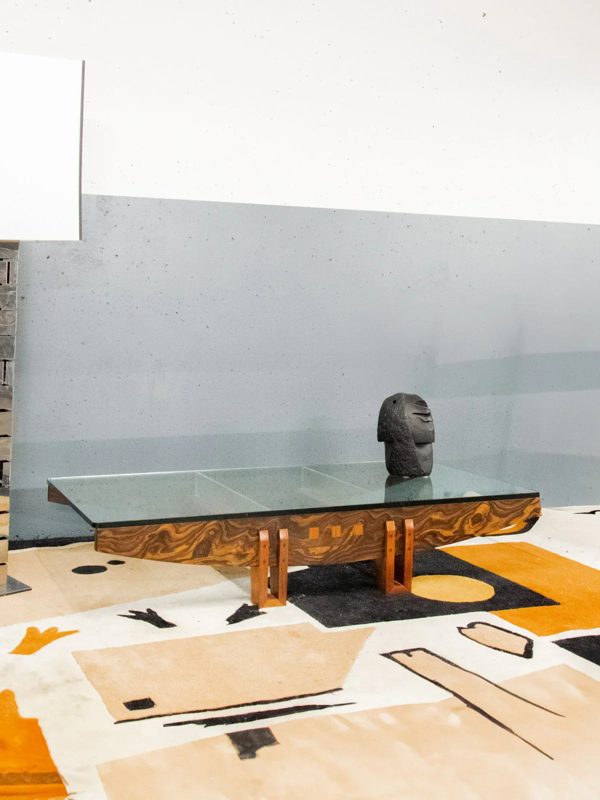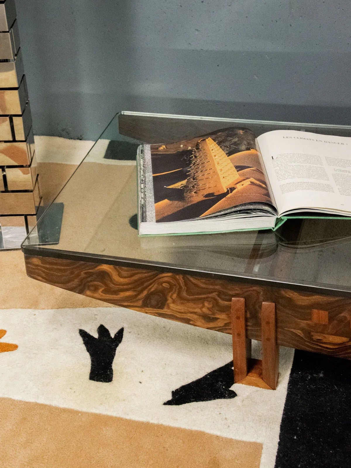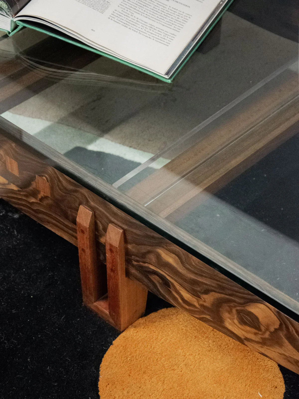Elevate your living room with this Brazilian coffee table from around 1970, crafted from rosewood and glass with sculptural lines and a dynamic curve. Its generous size and low profile make it a beautiful centerpiece for displaying books, decorative objects, and entertaining, while the plexiglass supports lighten the overall look. The glass top showcases the rich, warm tones of the wood, creating a welcoming and graphic atmosphere with a refined vintage design.