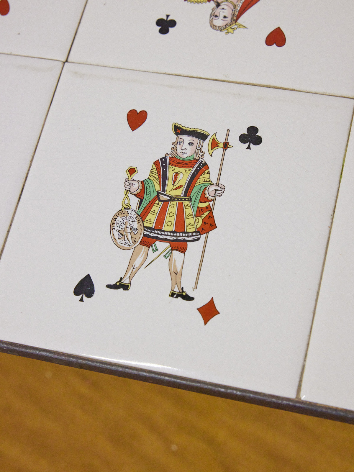 Découvrez cette table basse en céramique au plateau carrelé, ornée de motifs représentant les têtes d'un jeu de cartes. Le travail des carreaux apporte une signature graphique et ludique qui anime le salon sans en faire trop, tandis que la céramique confère une présence douce et facilement entretenable. Idéale pour ponctuer un espace convivial, elle invite à la curiosité et au partage autour d'un café ou d'un livre.