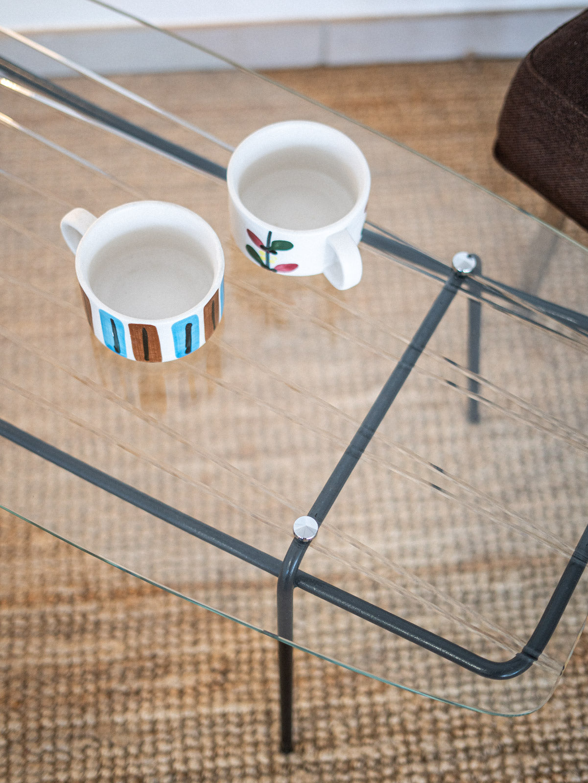 Discover this charming coffee table from the 50s and 60s, an iconic piece of mid-century style. Its ribbed and grooved glass top adds a subtle elegance, while its tubular metal legs ensure both lightness and strength. A few small traces of wear and tear testify to its history, adding character to its timeless design. The screw covers are chrome-plated, enhancing the overall look with this refined detail. A must-have for vintage decor lovers!