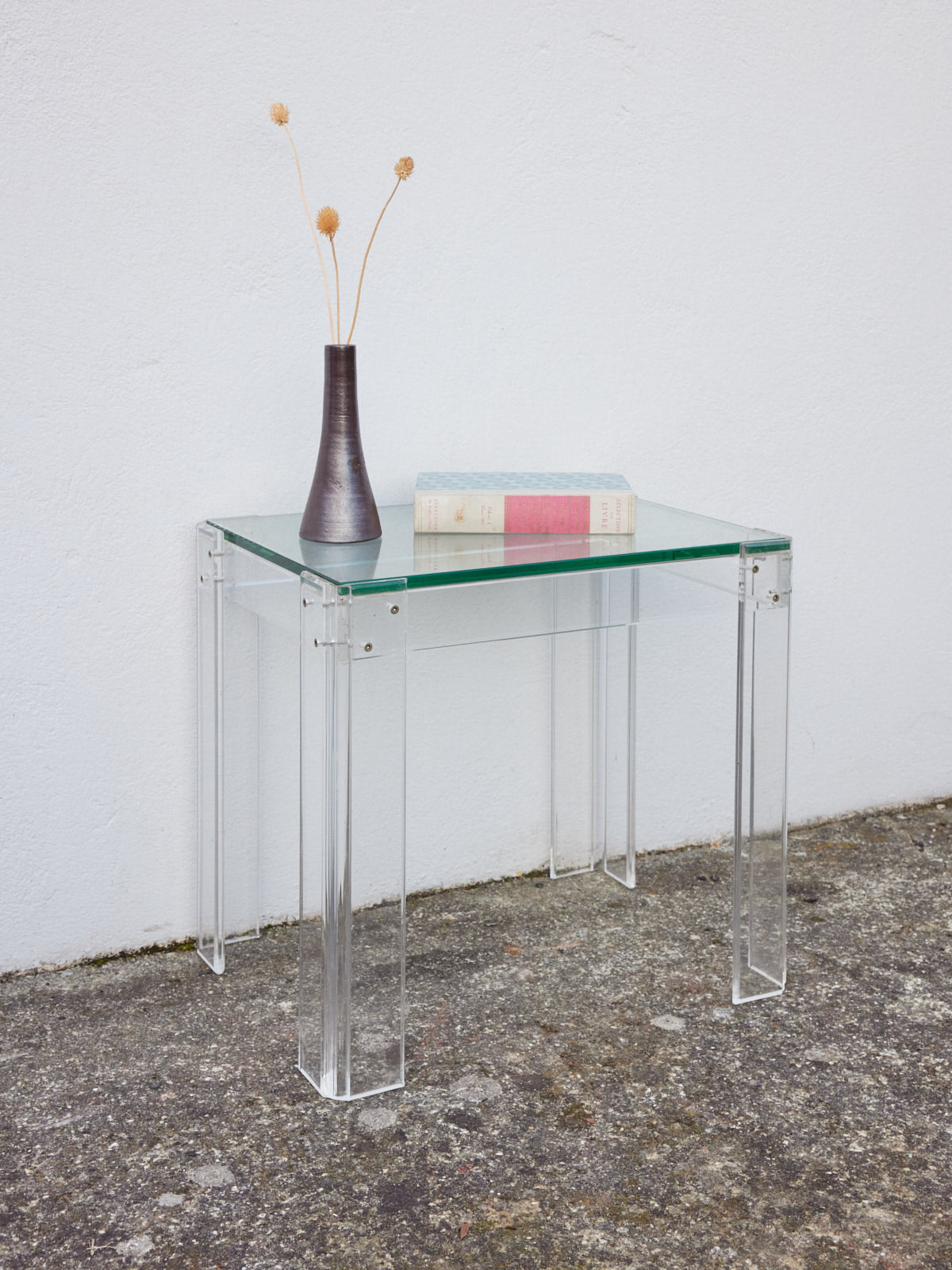 Choose this side table made of plexiglass and glass, a blend of transparency and contemporary lines. Perfect for everyday use next to the sofa or in a reading nook, it provides space for a lamp, books, and decorative objects without cluttering the room. It creates a bright, understated, and elegant atmosphere, ideal for relaxation and showcasing your accessories.