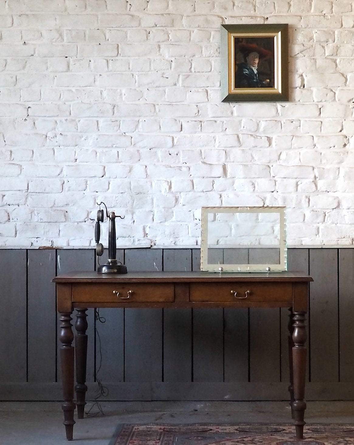 Découvrez ce bureau du XIXe siècle en chêne et pin, surmonté d'un élégant plateau cuir qui souligne sa patine chaleureuse. Son format allongé offre une surface de travail confortable et un tiroir large pour organiser dossiers et fournitures au quotidien. Les proportions solides et le mariage du bois et du cuir s'accordent à un intérieur classique ou contemporain, créant une atmosphère studieuse et intime.