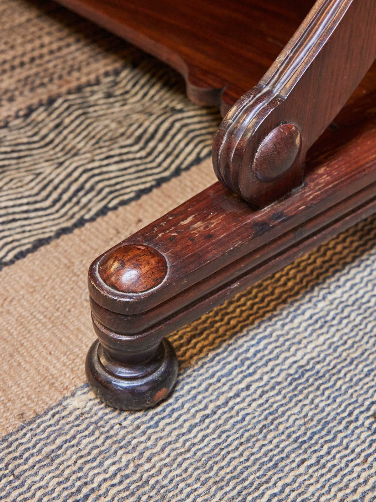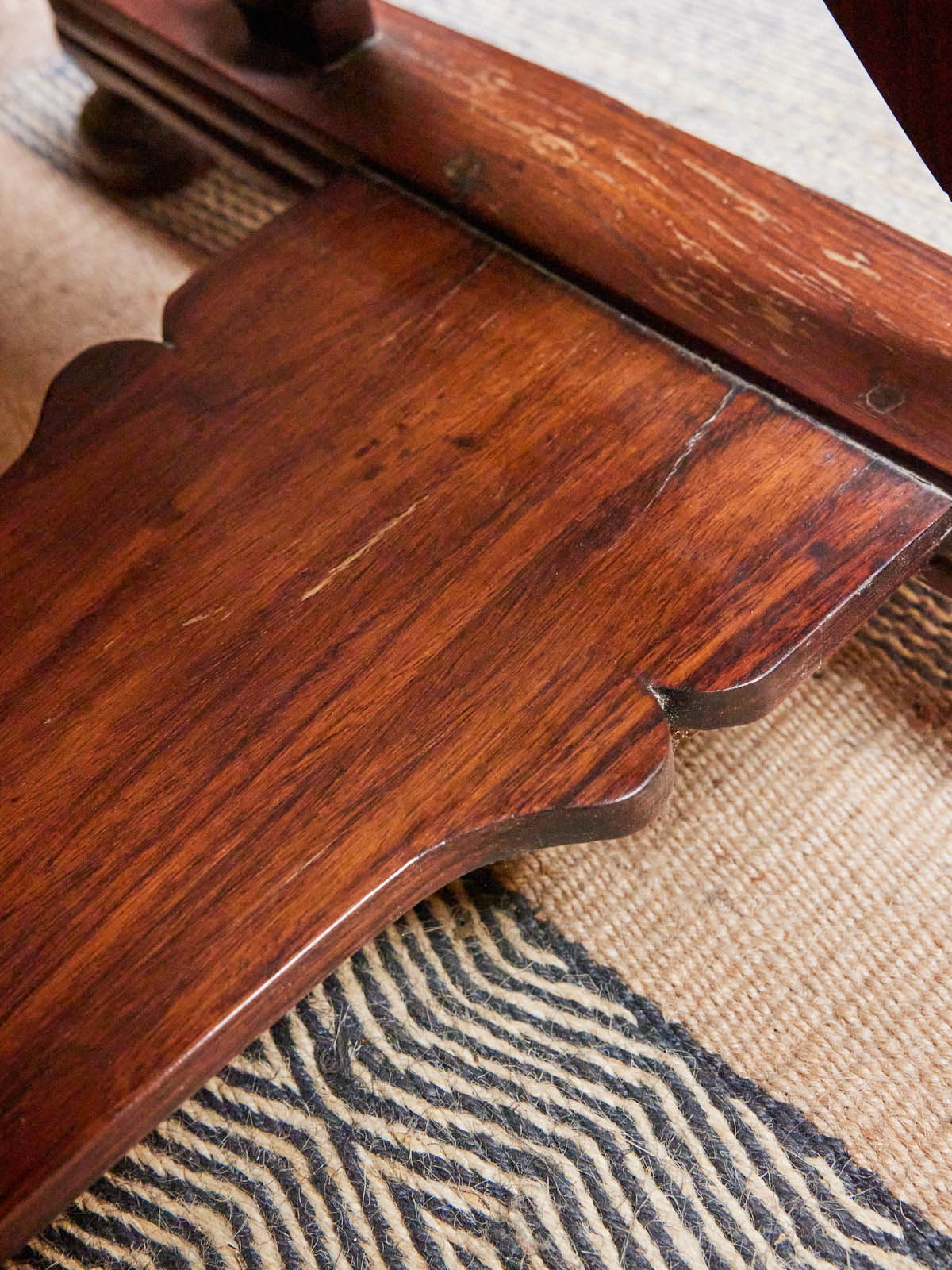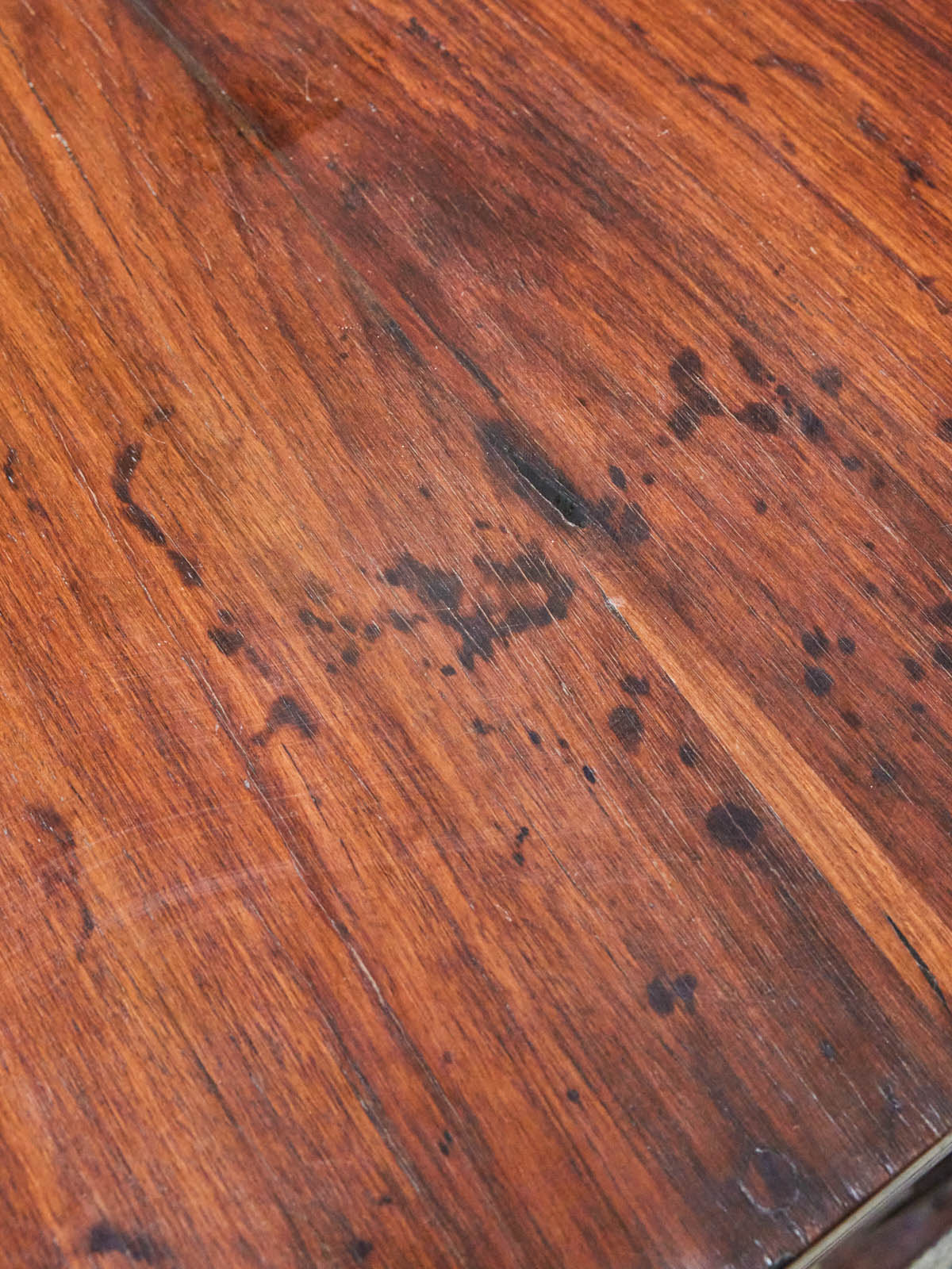 Embrace the refined lines of this English mahogany desk, reminiscent of the understated elegance of London libraries and the spirit of Sherlock Holmes. The generous top and three drawers—one large drawer with two handles and two smaller ones—offer organized storage for writing or working, while the rich wood adds a warm patina to your interior. The wood has expanded during storage, a testament to its quality; the drawers may be stiff initially but will soften after a few days in a warm environment.