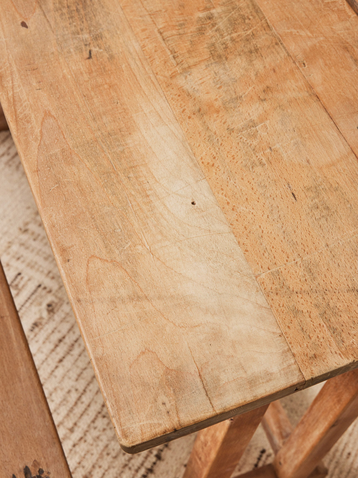 Invite this large wooden school desk, designed for two children and featuring two practical cubbies, into your home. Its simple, school-inspired design brings a warm, retro touch to a bedroom, reading nook, or creative space, while the double seat and generous tabletop encourage sharing and working together. The weathered wood gives it an authentic feel and excellent stability for everyday use.