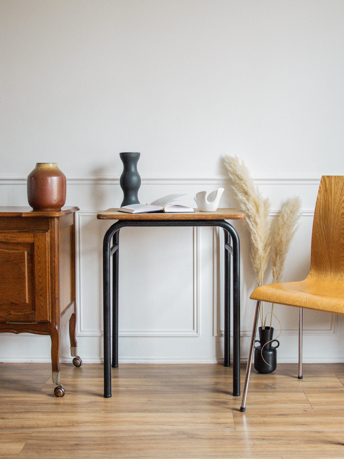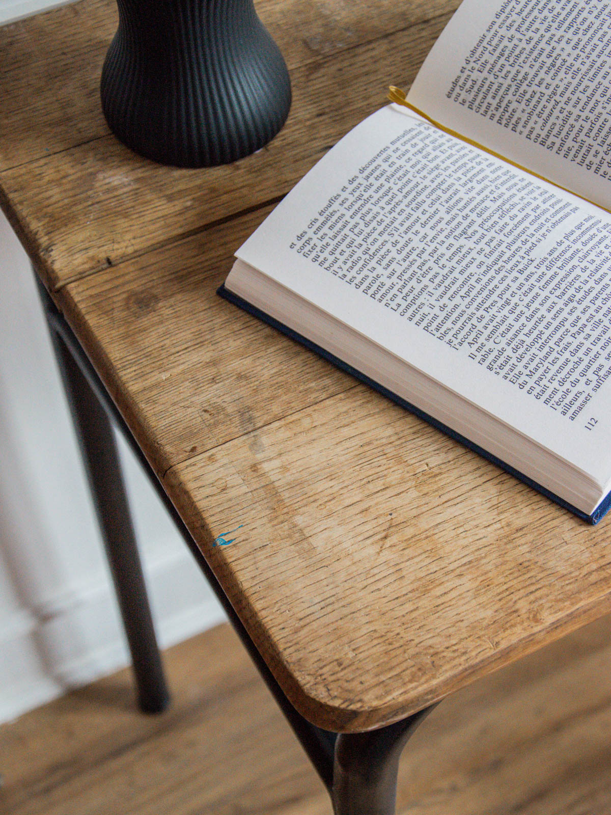 Bring a vintage touch to your workspace with this wood and metal school desk. Its distressed top, combining charm and authenticity, provides an ideal surface for your studies or creative activities. Its timeless design will blend perfectly into any interior style, while its sturdy construction guarantees long-lasting durability. A perfect choice for combining aesthetics and practicality!