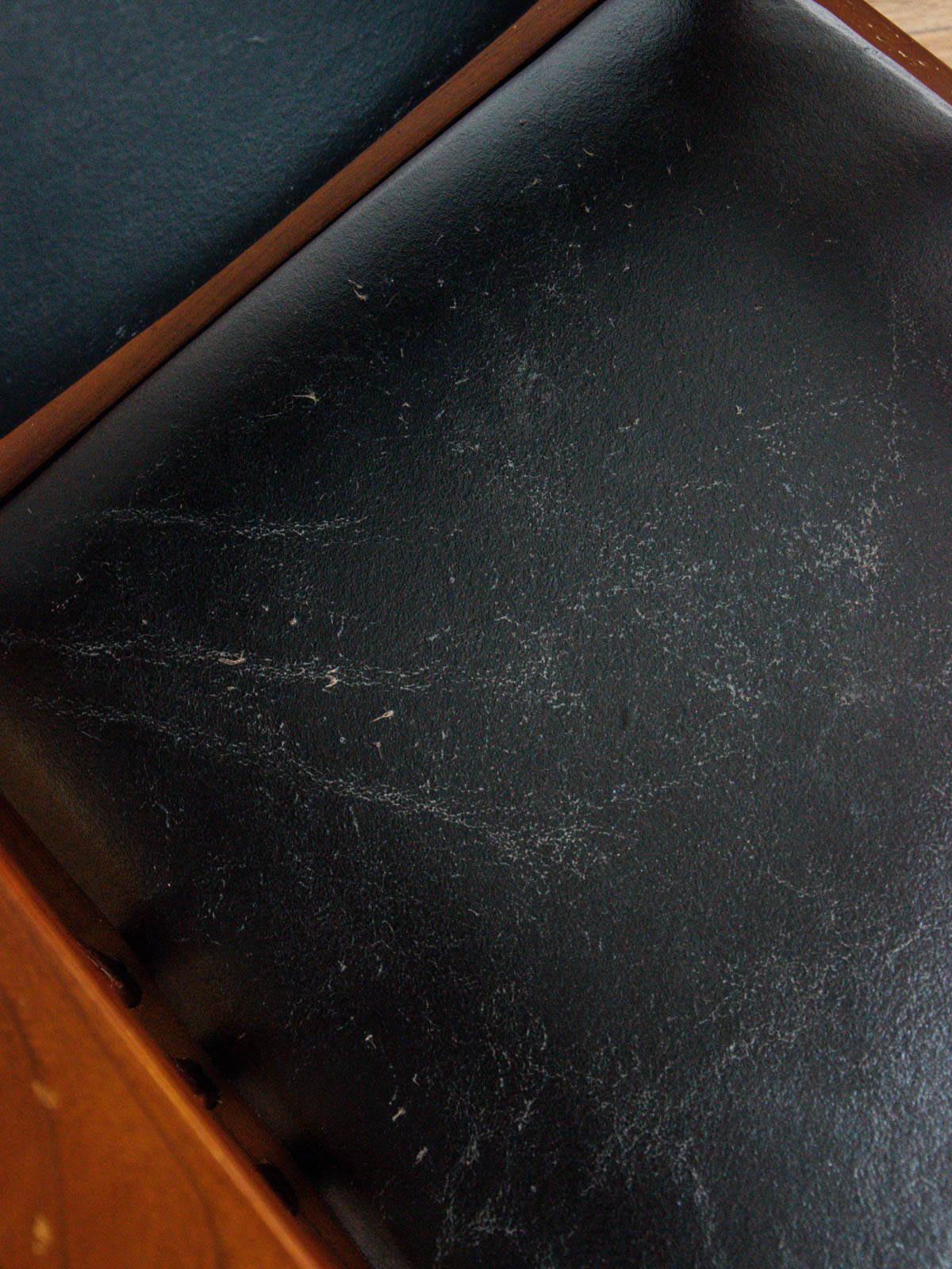 Discover our elegant colonial armchair in dark wood, skillfully paired with black leather that bears the marks of time. Its rounded armrests add a touch of sophistication and comfort. Although some signs of wear are visible on the seat and wood, this is a testament to its timeless charm and authenticity. This elegant armchair will bring a touch of character to your home while providing a pleasant relaxation space. Sold individually, 2 copies available.